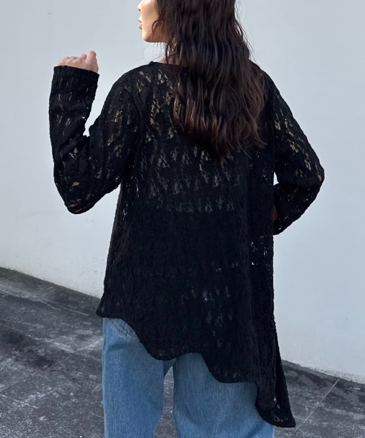 レースの透け感を活かし、インナー次第で印象を変えられるのも魅力。
