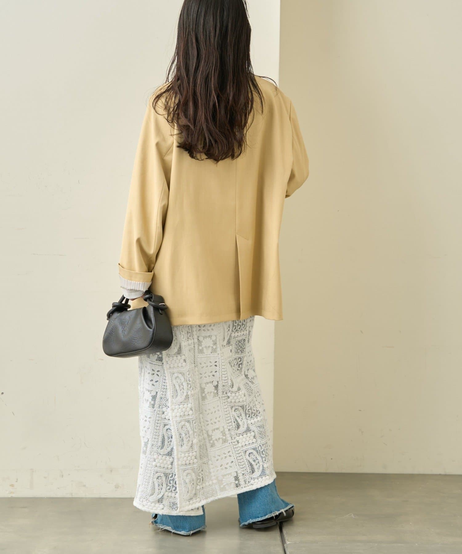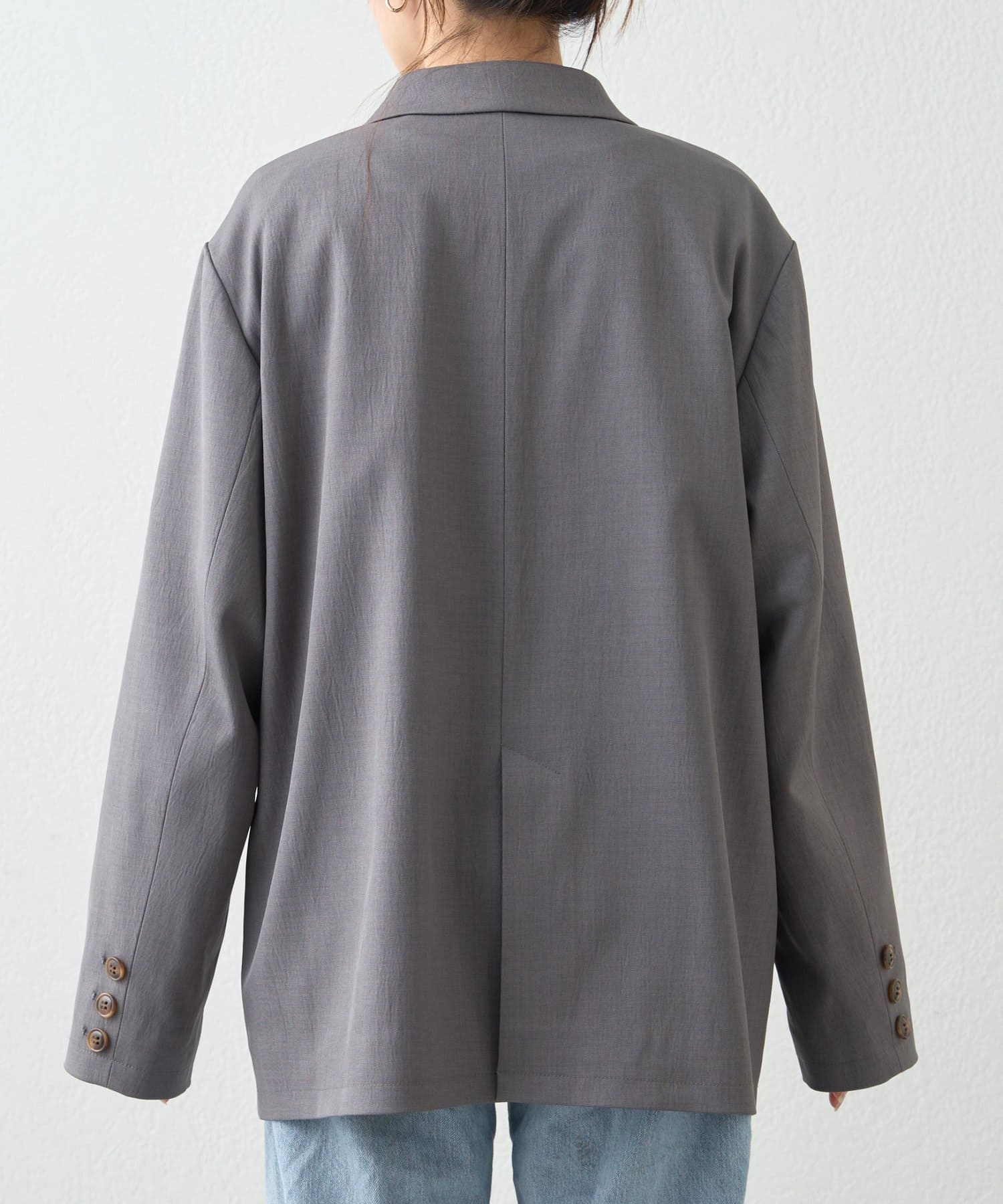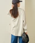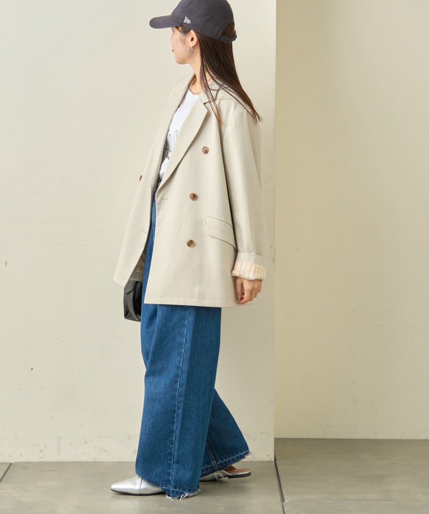 袖は折り返して着られる仕様になっており、手元に抜け感をプラスできるのもポイント。あえてラフに袖をまくることで、かっちりしすぎず、デイリーに取り入れやすい雰囲気になります。オーバーサイズながらも縦のラインがきれいに出るため、着ぶくれしにくく、パンツにもスカートにも合わせやすい一着。通勤から休日のお出かけまで幅広く活躍する、ワードローブにあると心強いレディースジャケットです。