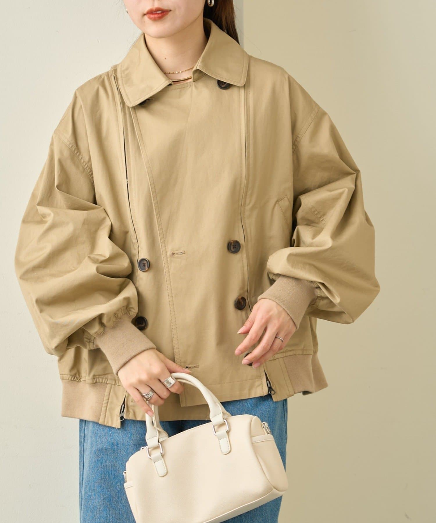 ワイドパンツ・スカート問わず好相性なショート丈で、季節の変わり目に頼れる主役アウターです。