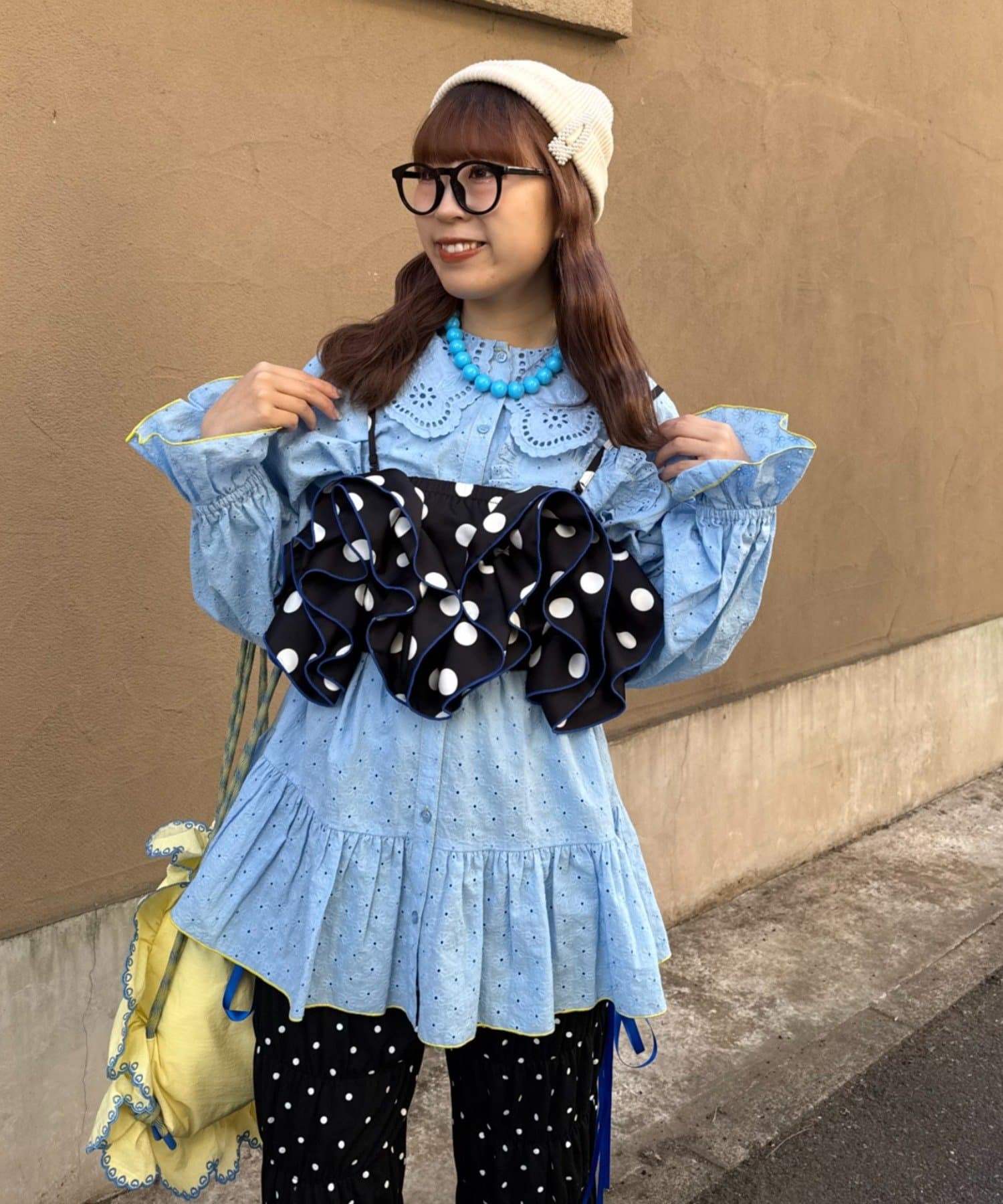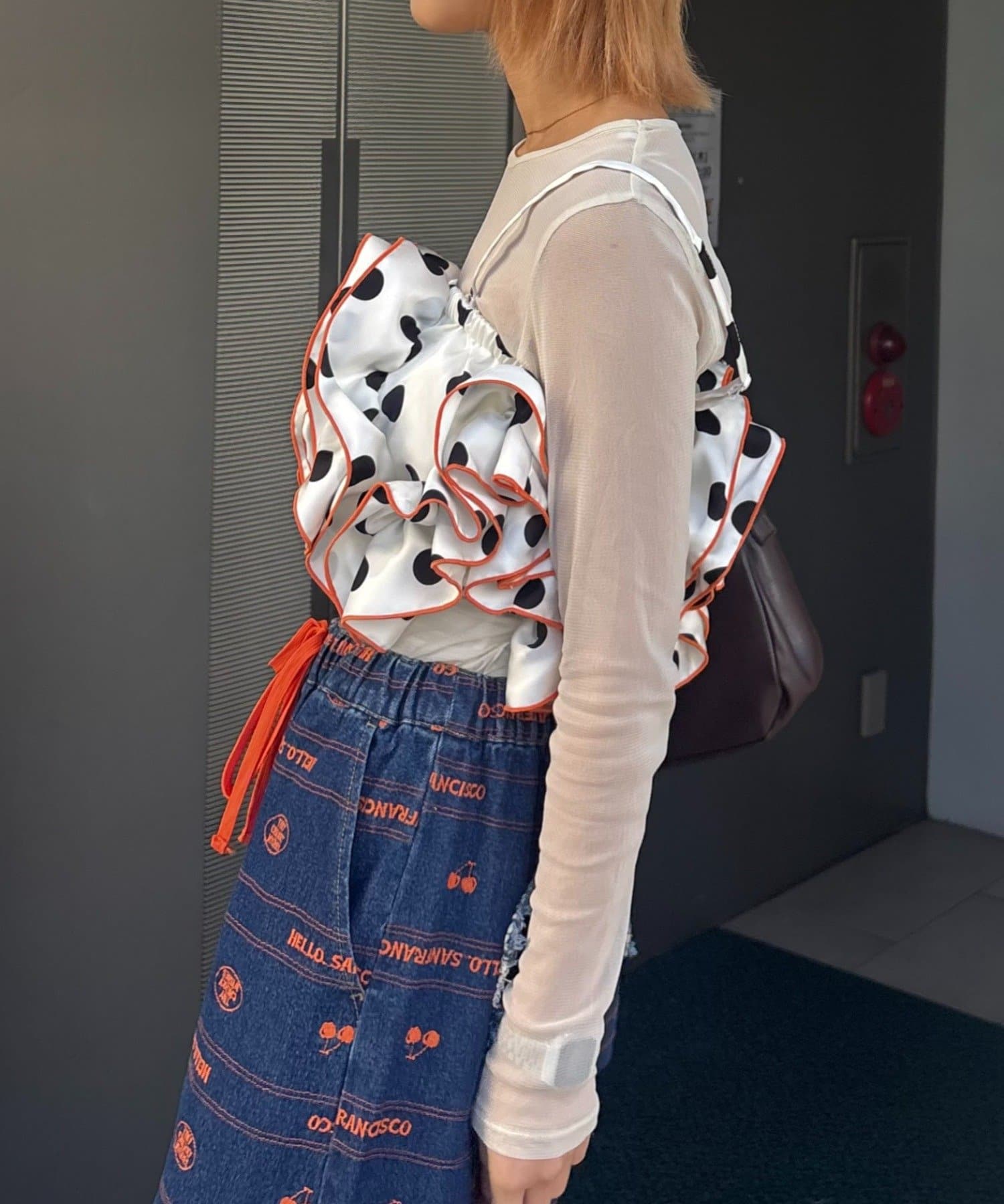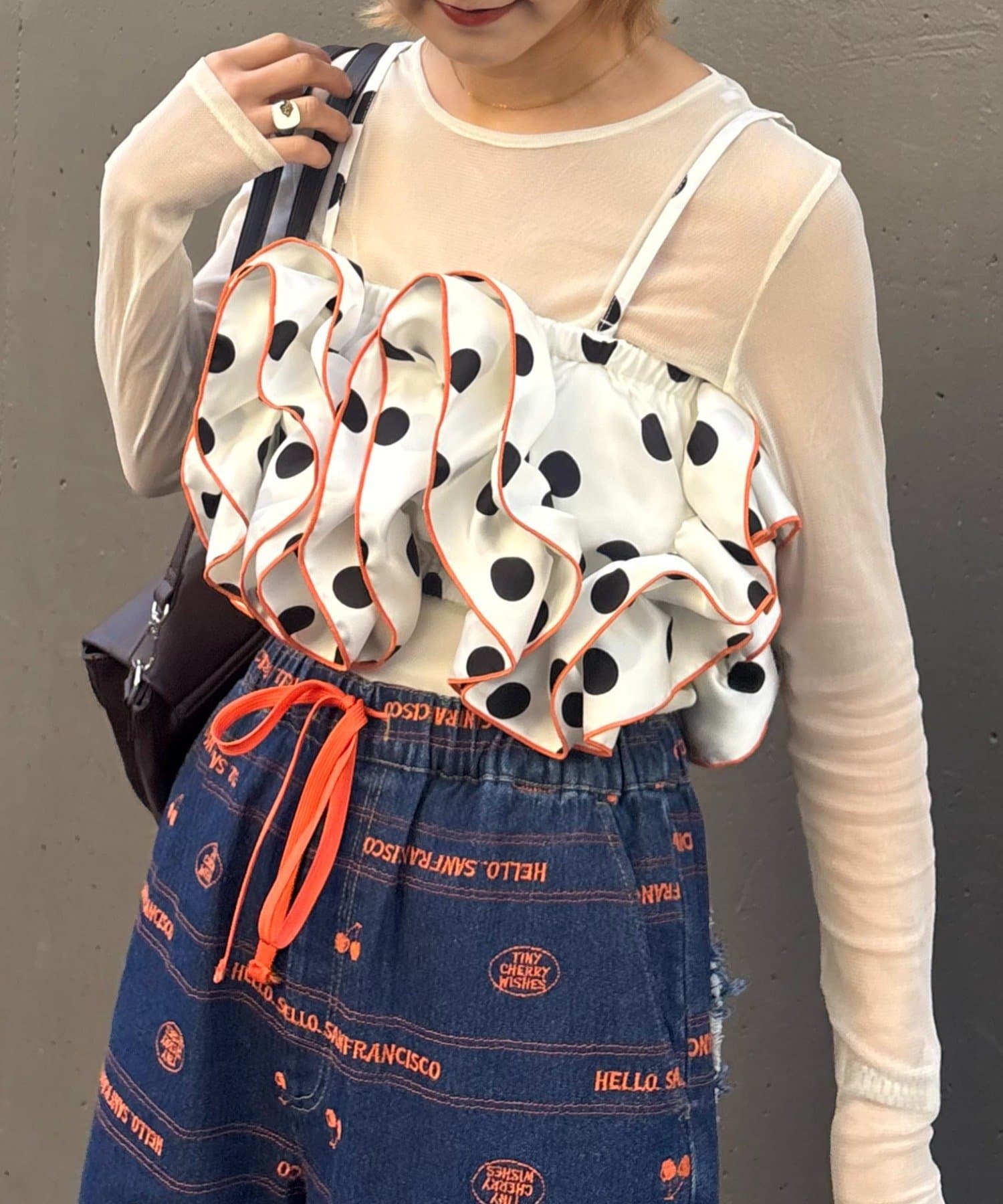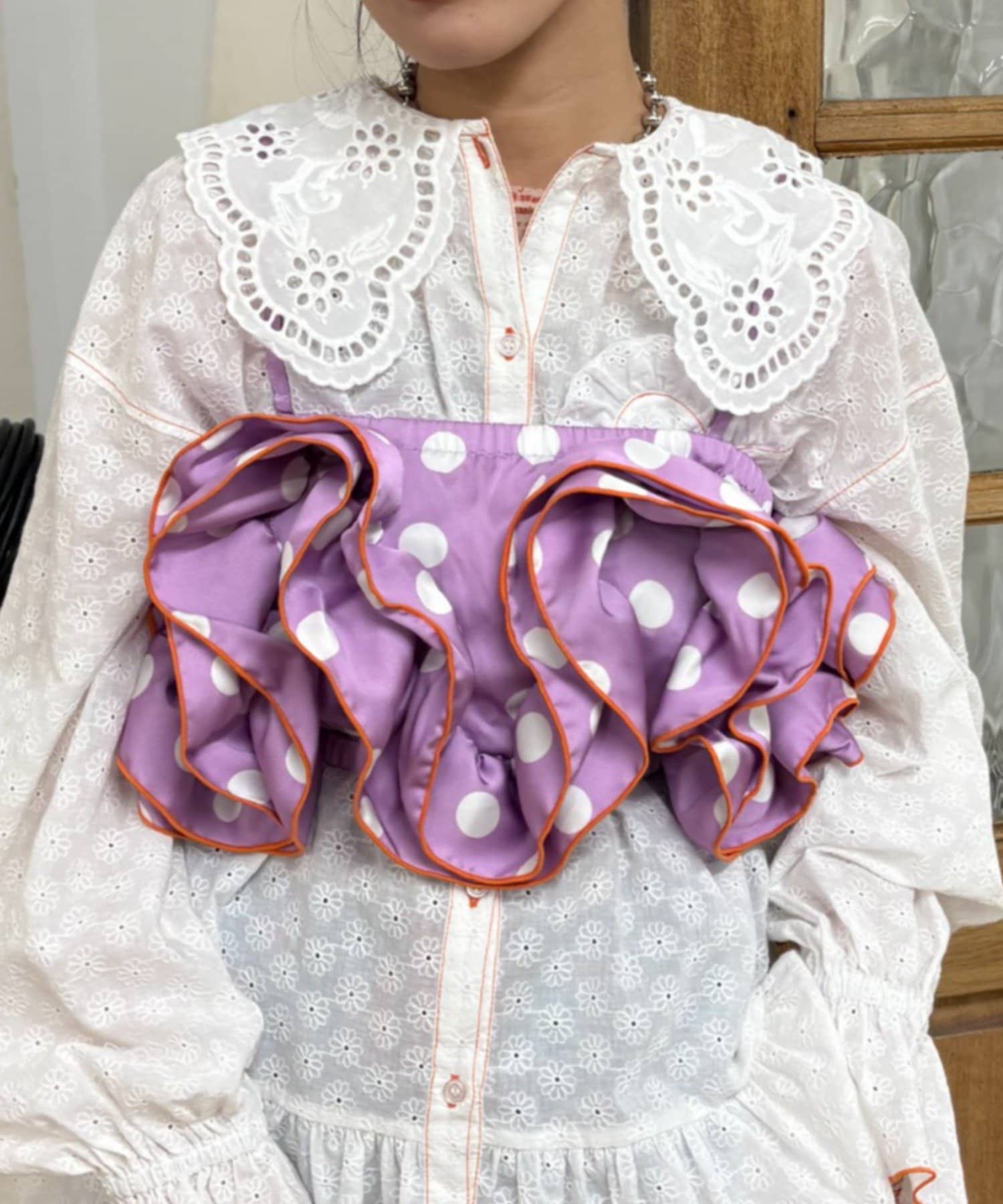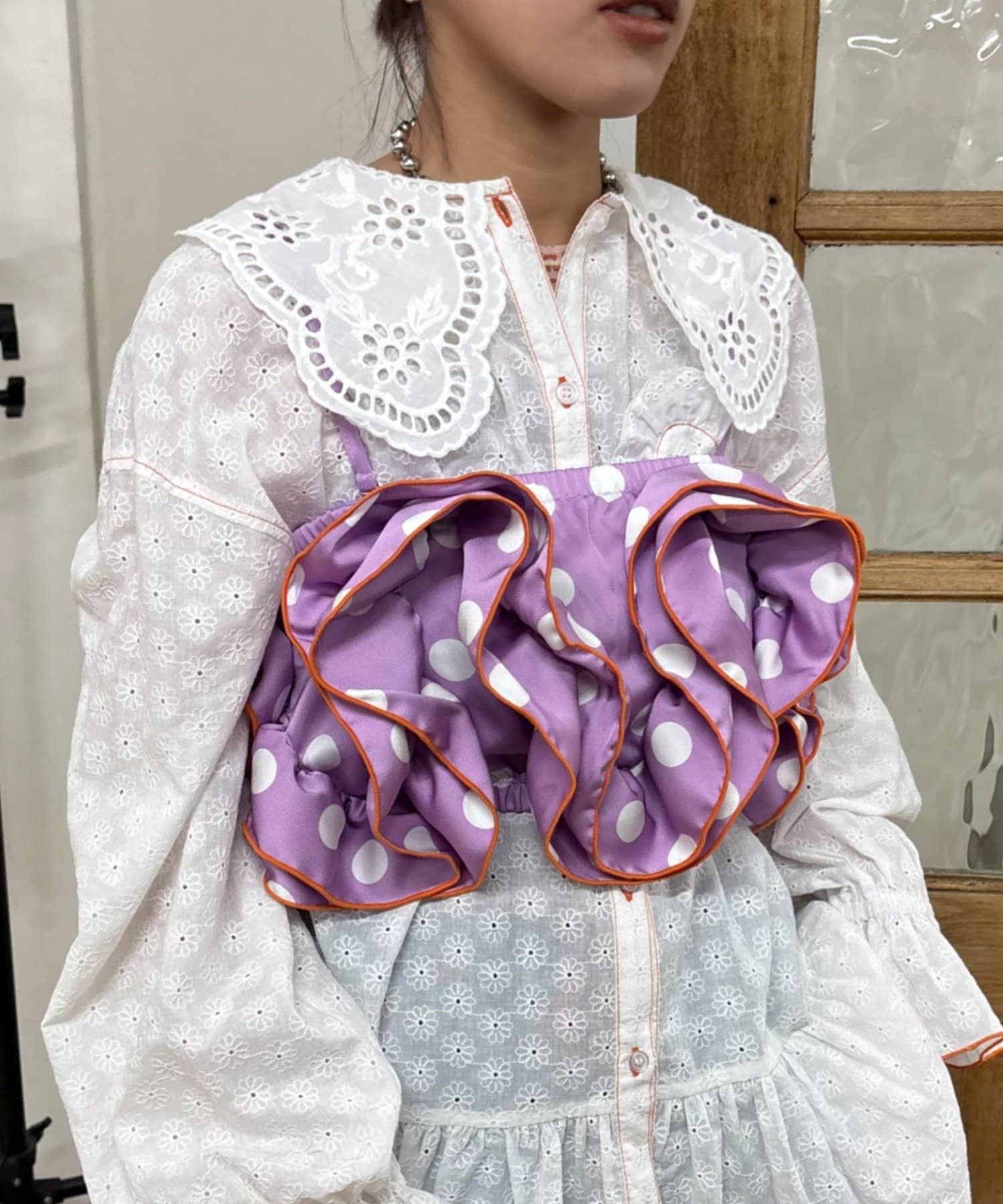 トレンドのドットサテン×大ぶりフリルをかけ合わせたら