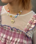 チェーンは2連になっており、細めのゴールドチェーンとミックスチェーンを使用することで、首元を華やかに演出。