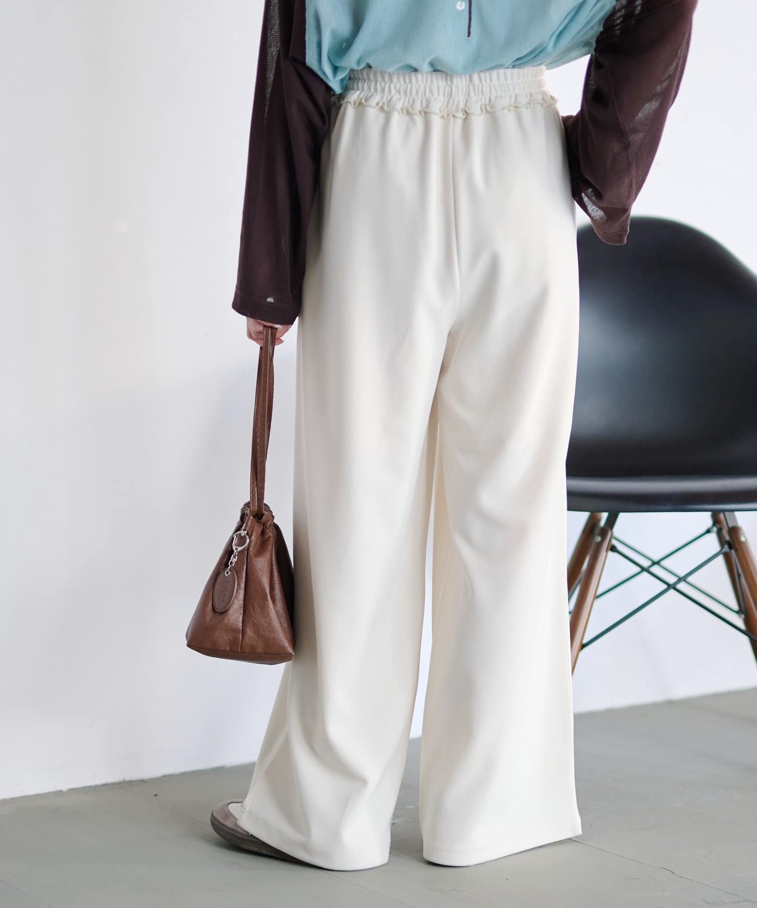 ウエストのフリルが、ショート丈のトップスをインした着こなしも映える仕様◎