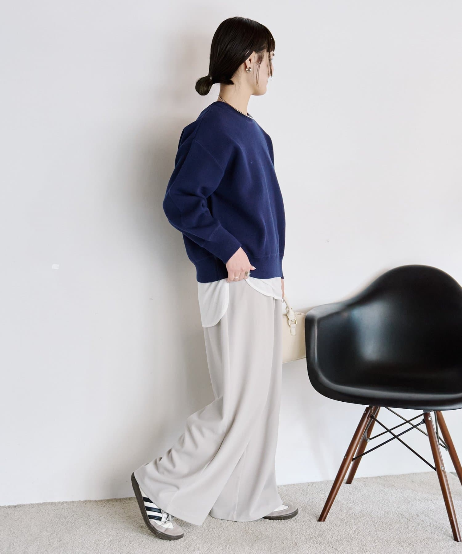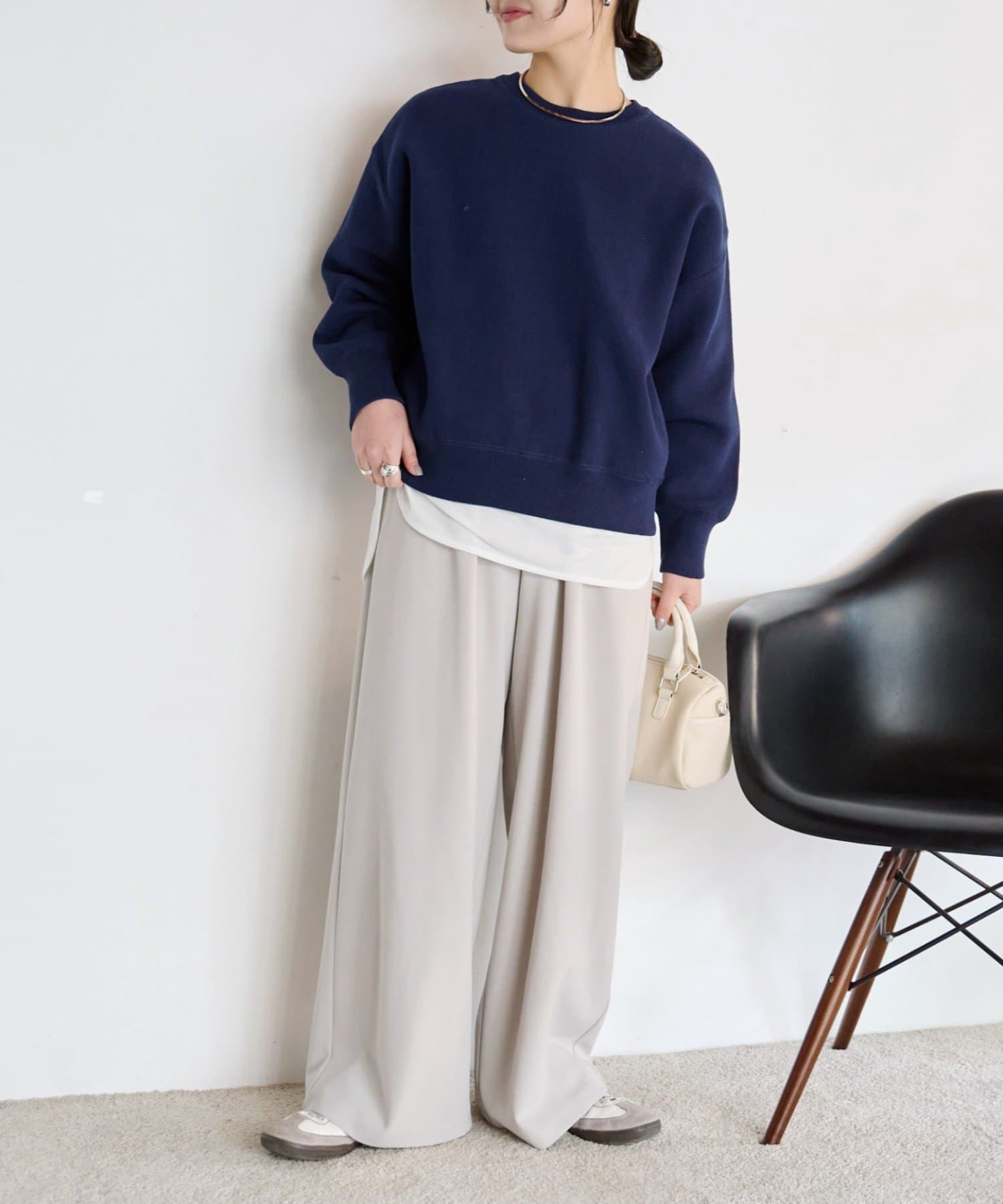 Tシャツやロゴトップスと合わせるだけで、リラックス感のある大人カジュアルスタイルの完成。