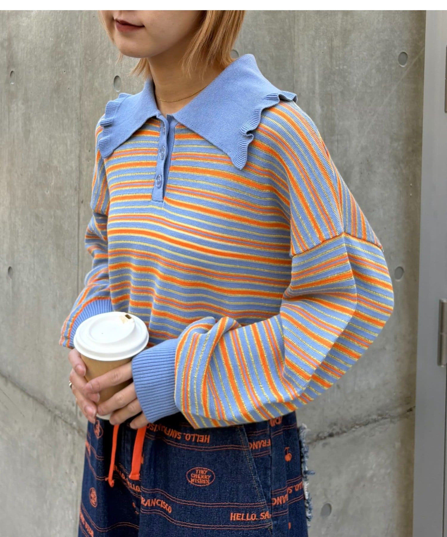 【HELLO.SANFRANCISCO/ハローサンフランシスコ】ビッグカラーボーダーポロニット
