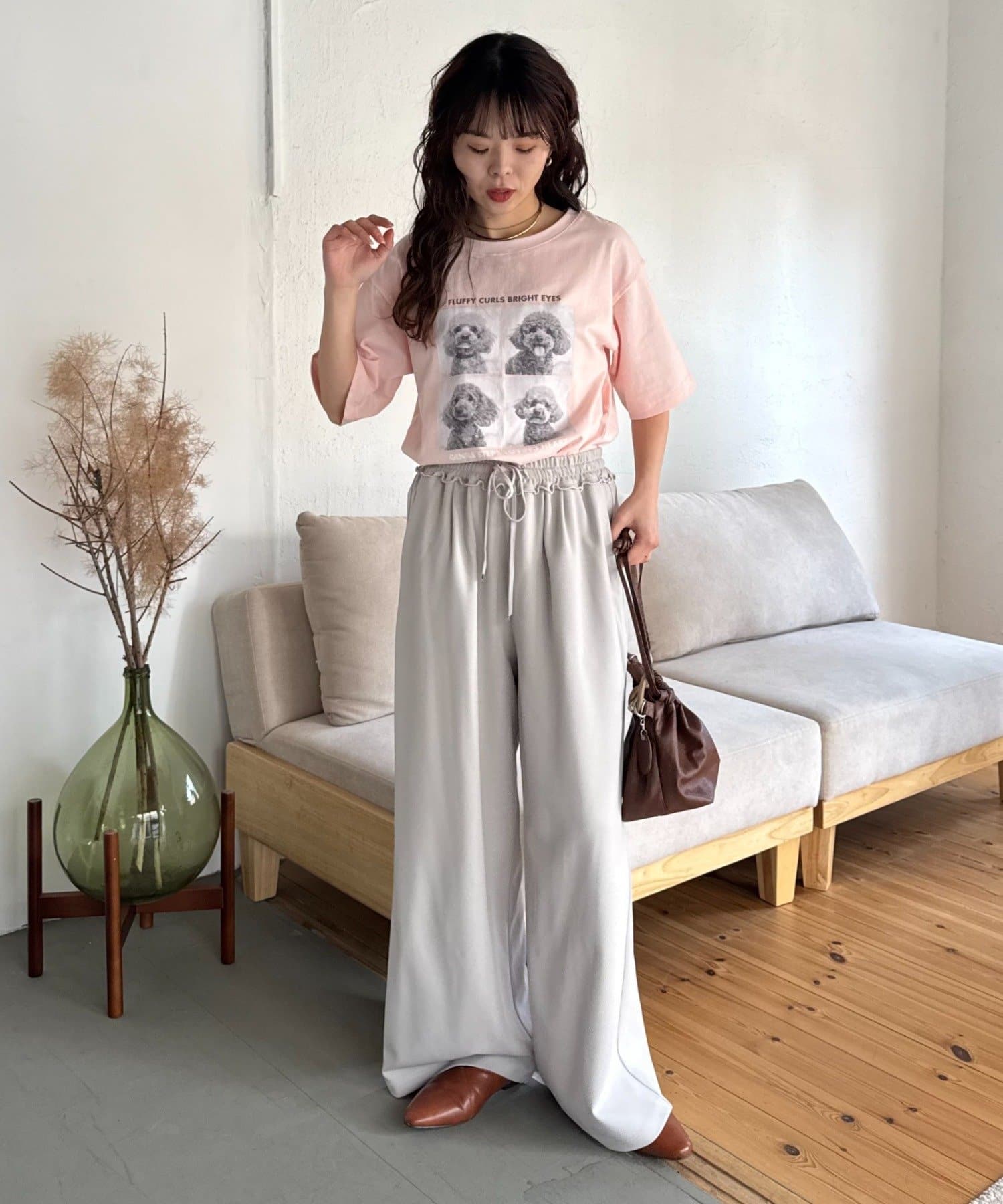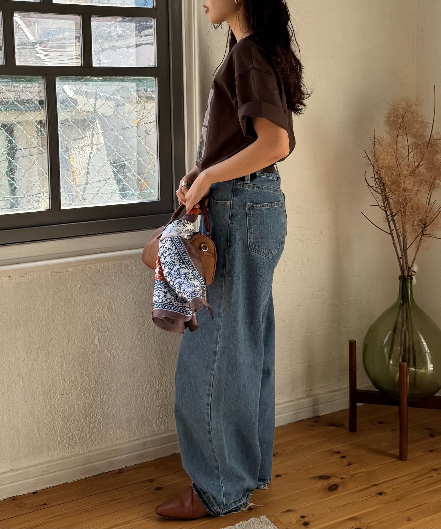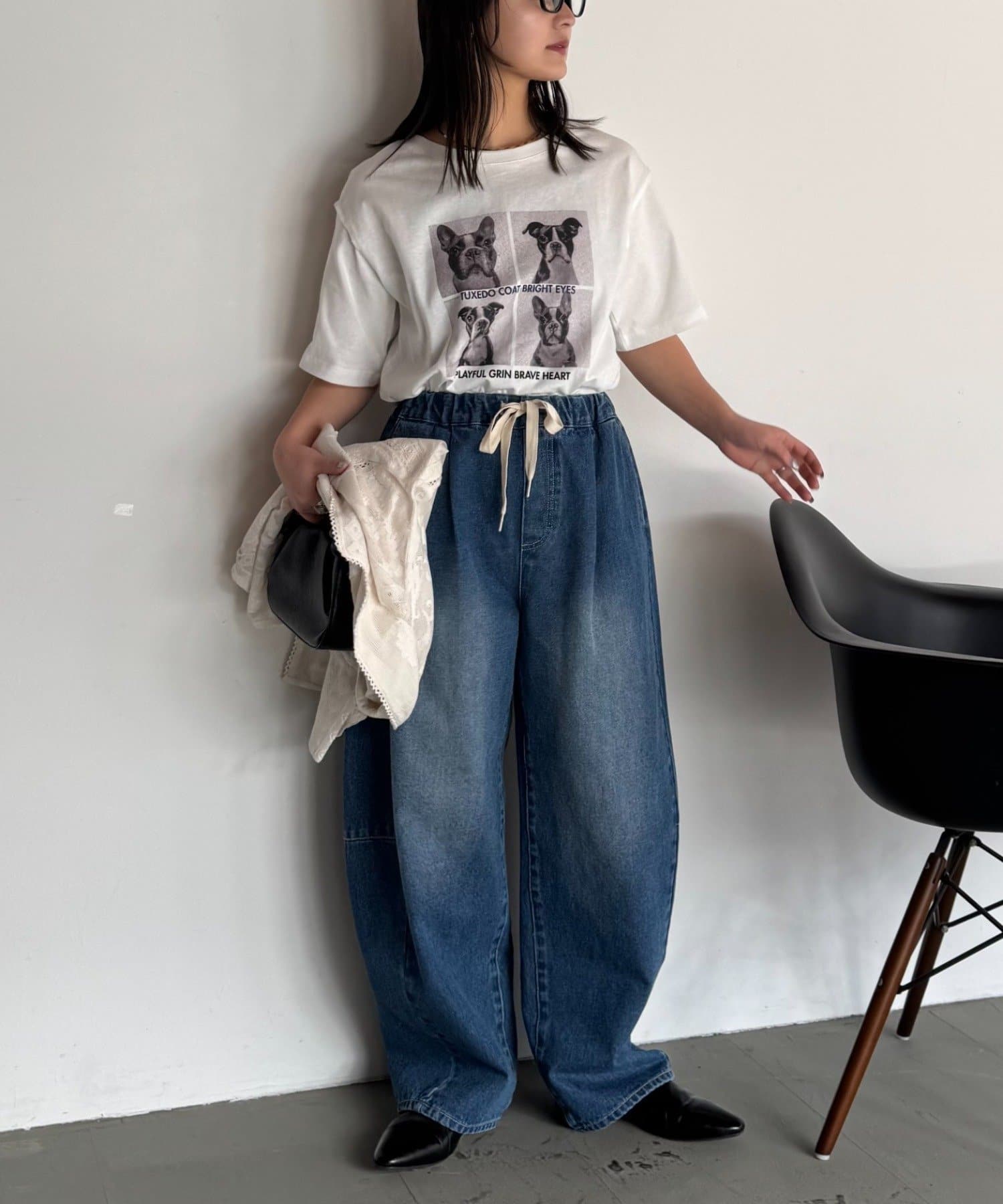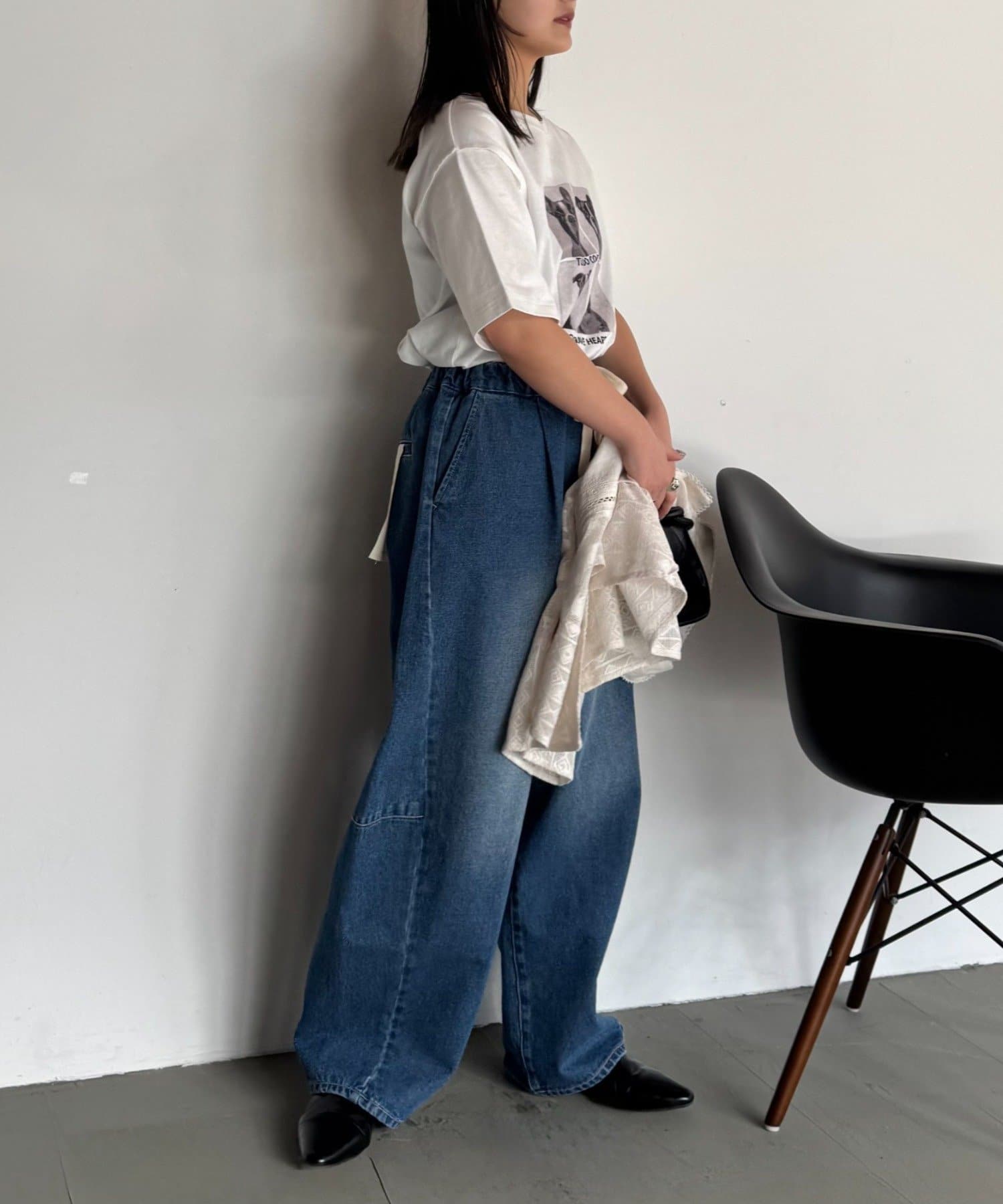 落ち感があり華奢見えするシルエットなのでワイドパンツなどのゆるっとした着こなしも◎