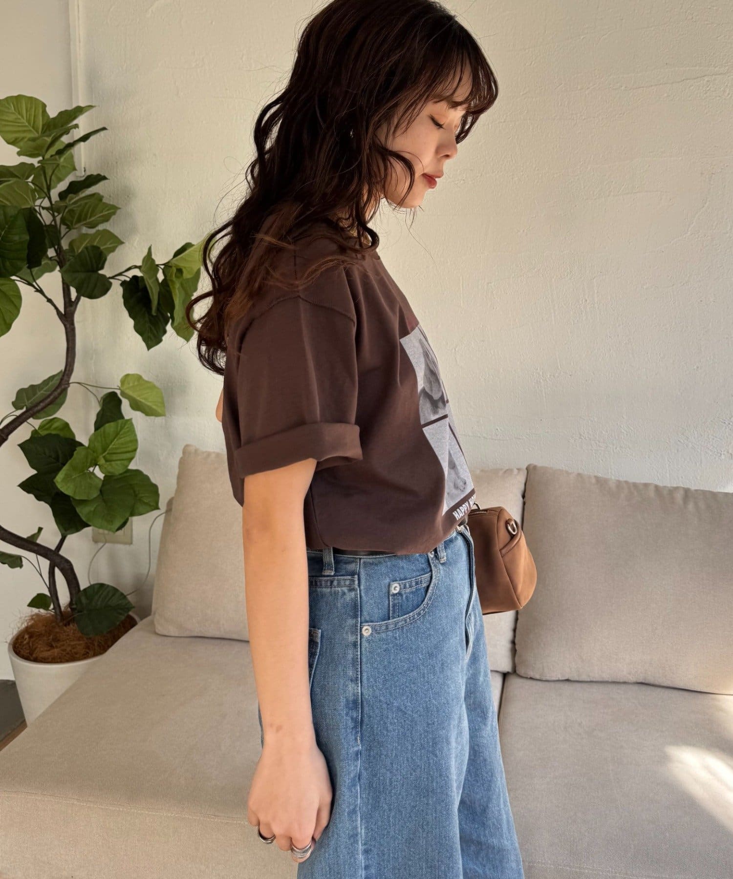 シャツやジャケットのインナーに着れば、プリントがアクセントになるレイヤードコーデも完成します!