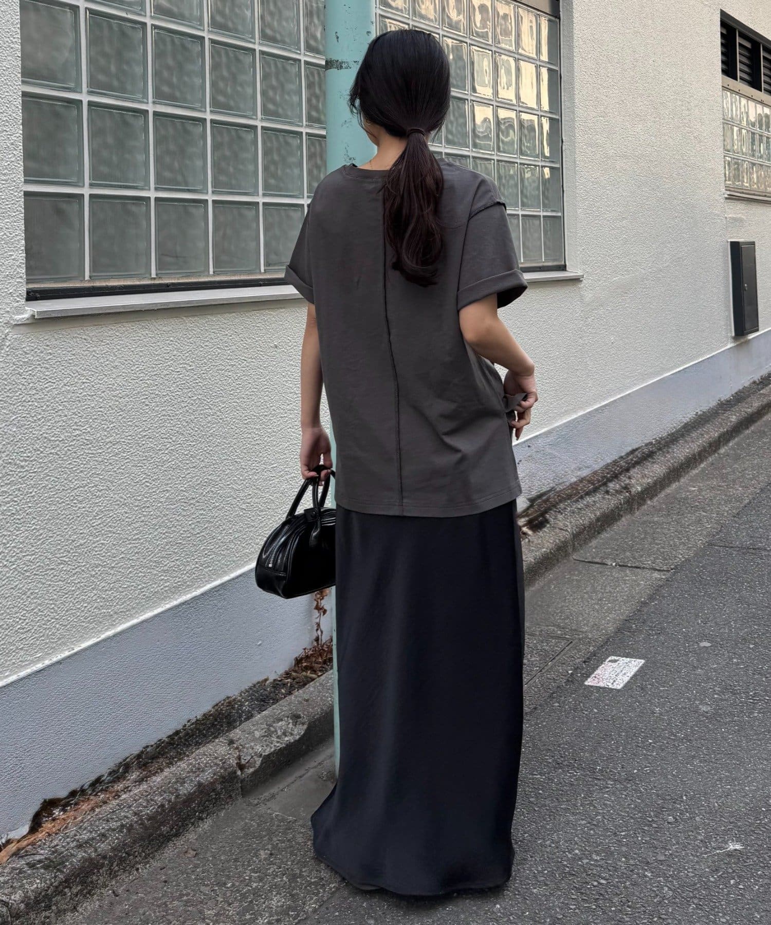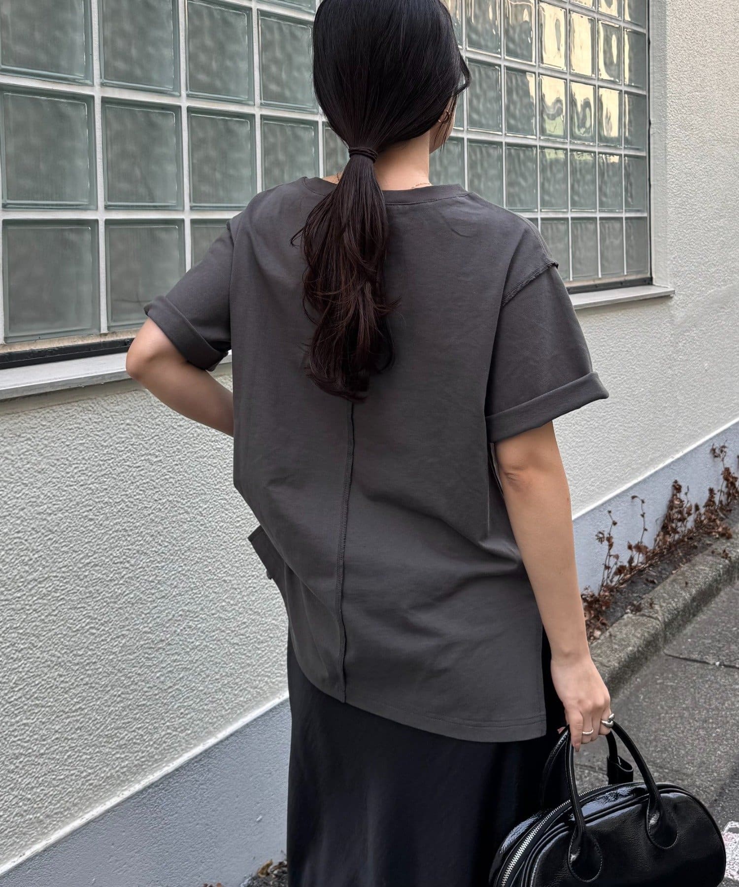 あえて目立たせた肩や背中の切り替えがアクセントになり、1枚で着てもお出掛けの装いに◎