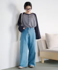 トレンドのワイドパンツやスラックスと合わせれば、程よく大人っぽさも演出できます。