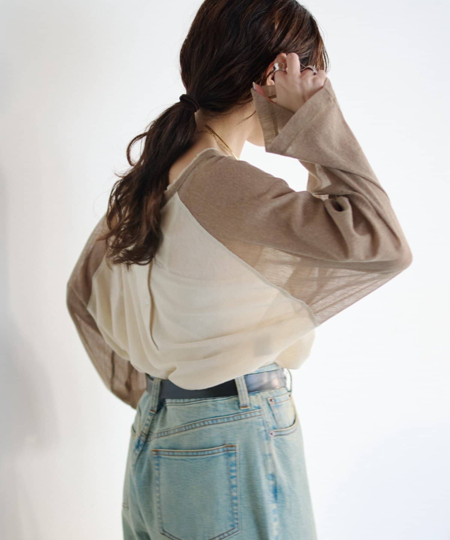 程良い透け感のシアー素材で、1枚でもレイヤードでも着れてロングシーズン活躍!