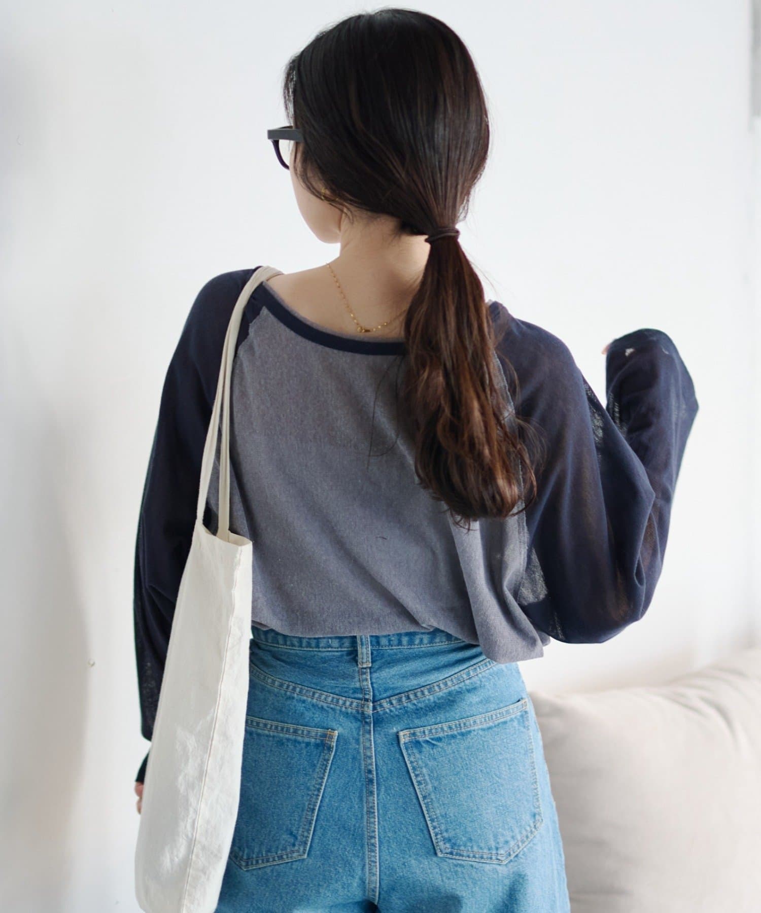 また、肩の切り替えがなく、肩まわりが華奢に見えるラグランスリーブも魅力の一つ。