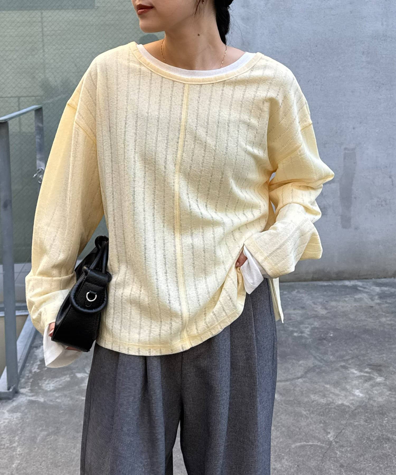 キャミワンピースやサロペットのインナーなど重ね着にも映える仕様。