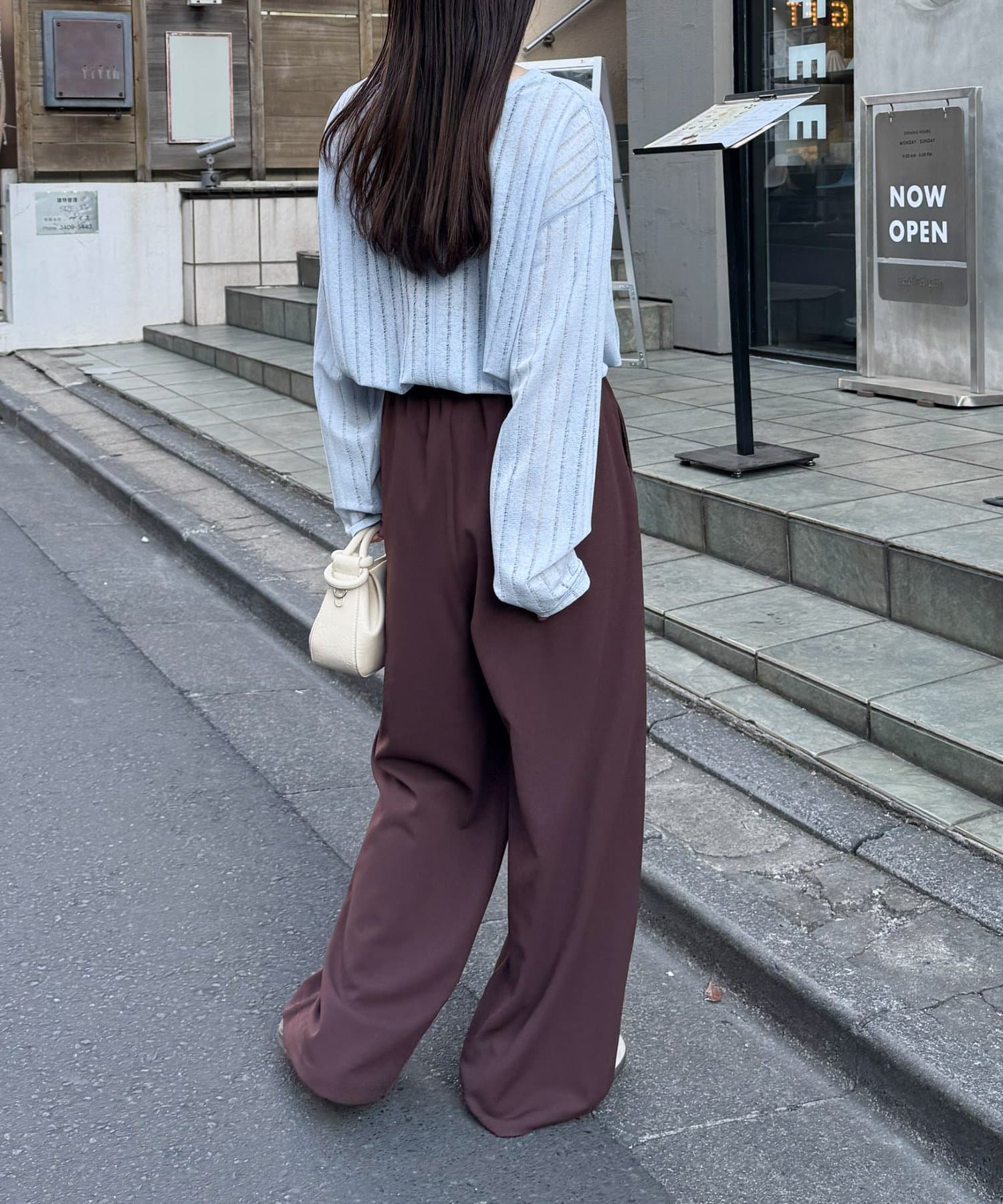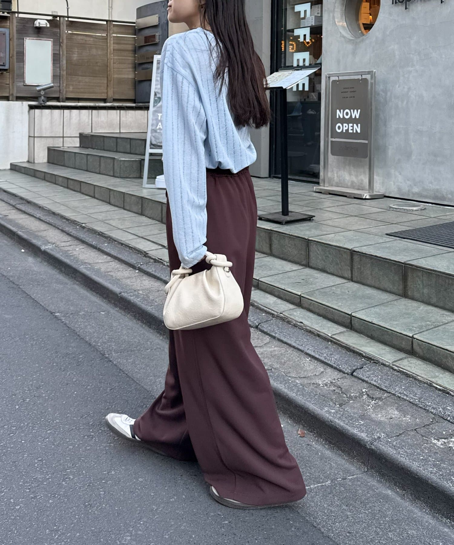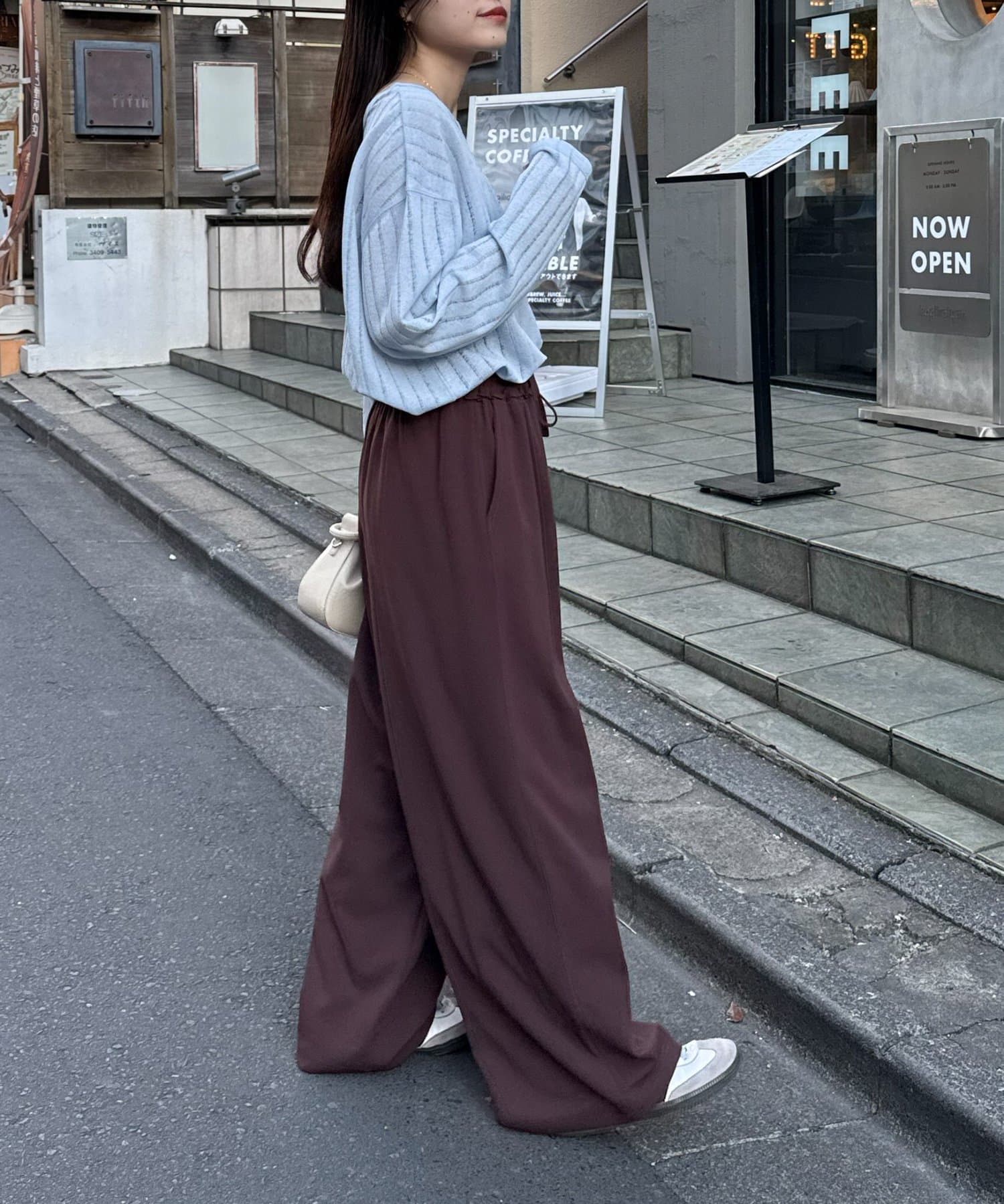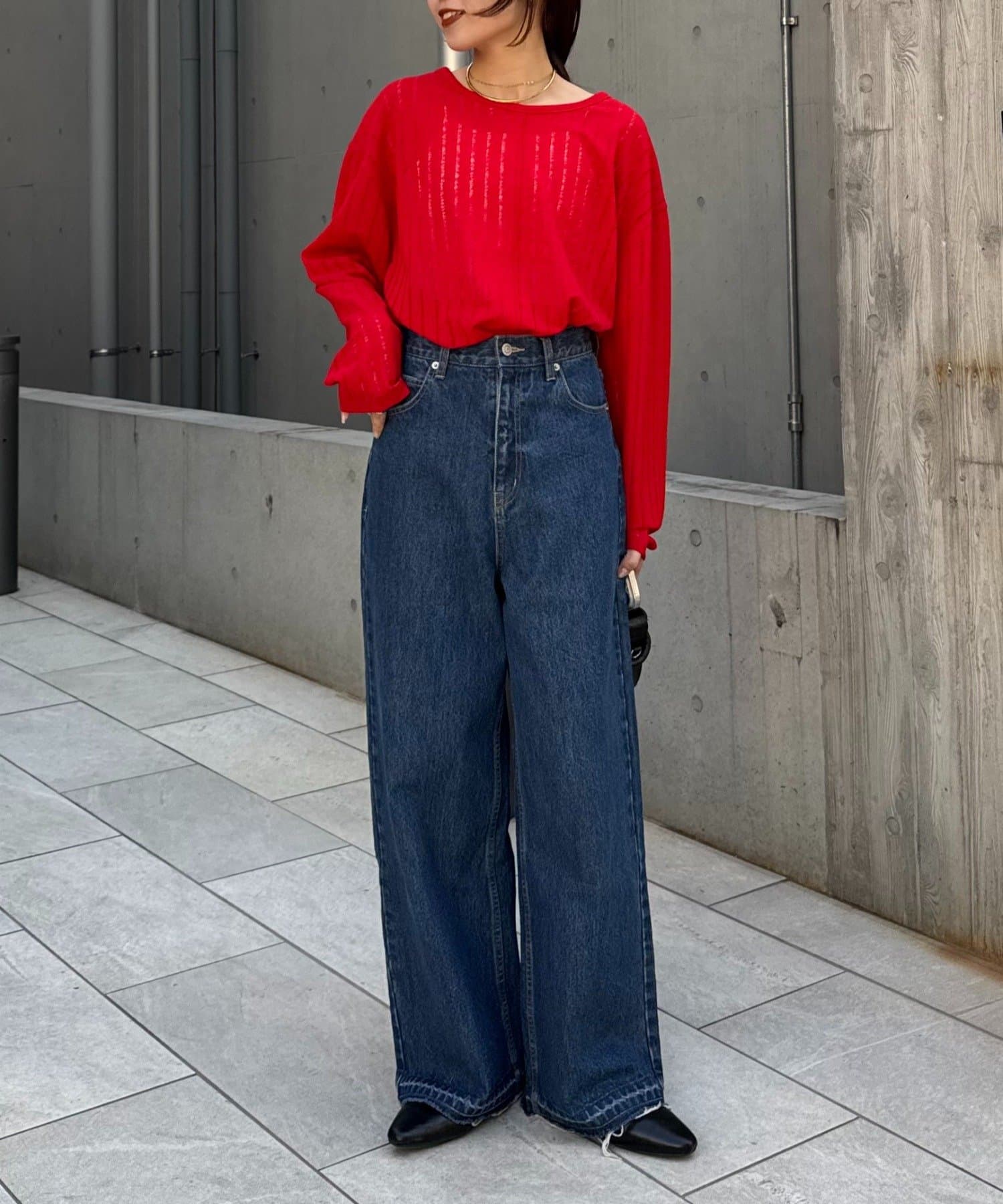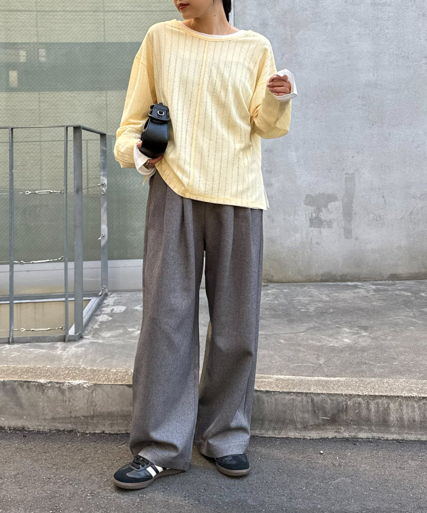 トレンドはワイドパンツやスラックスとの組み合わせ。