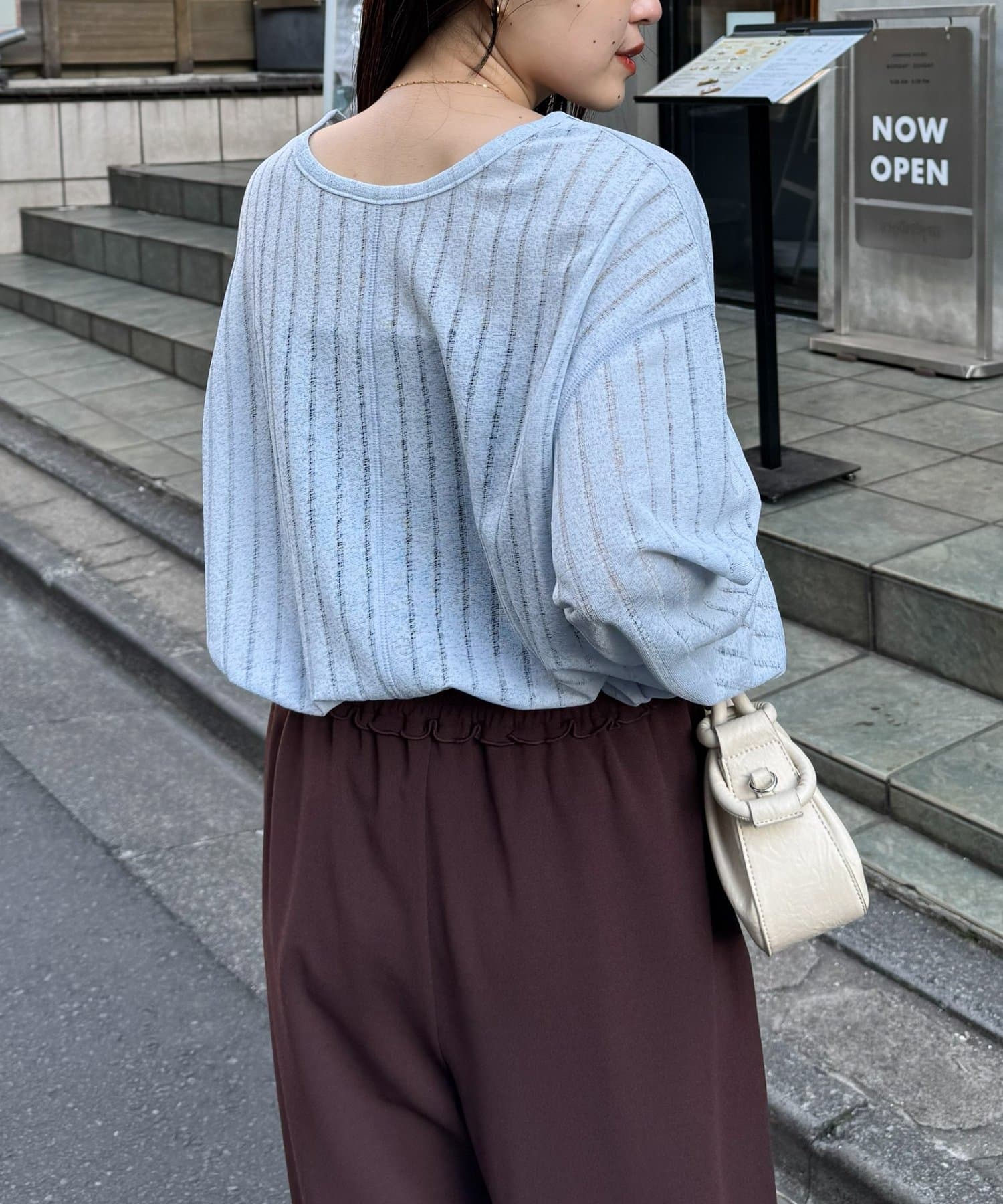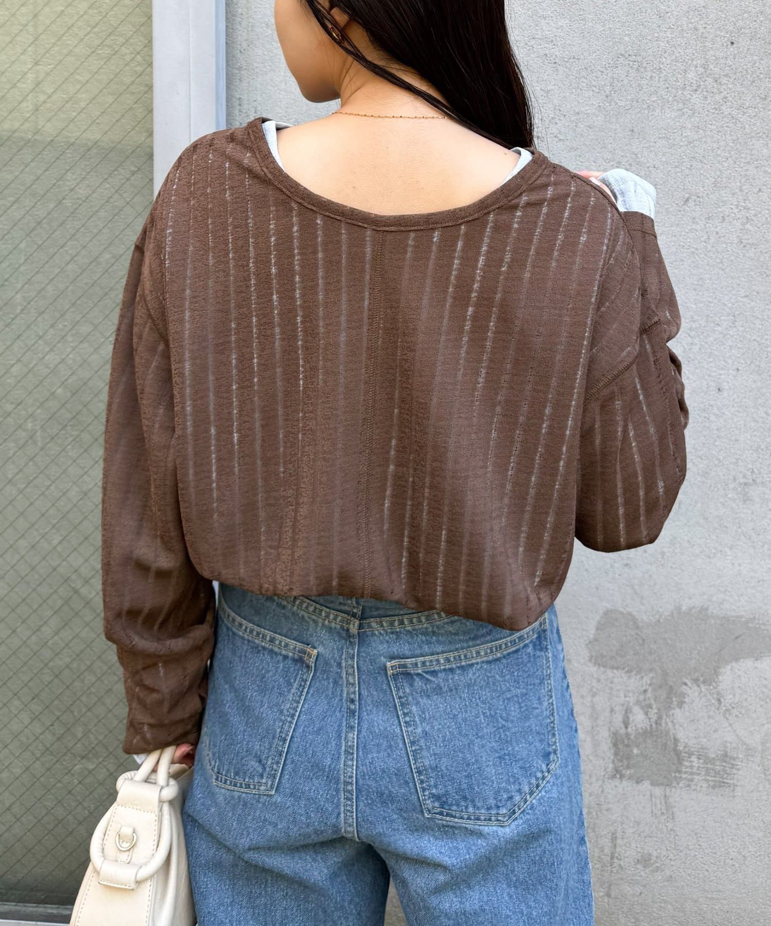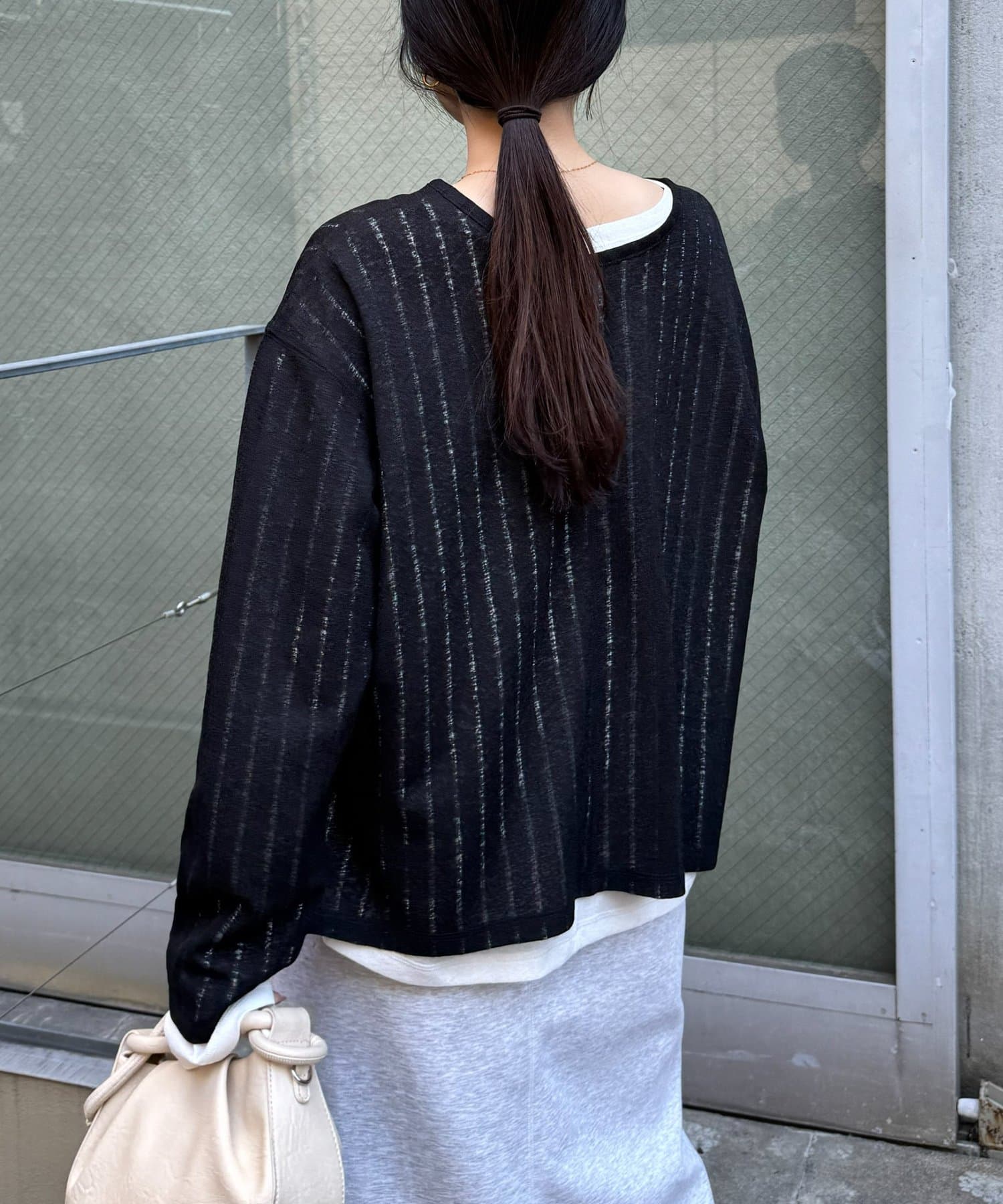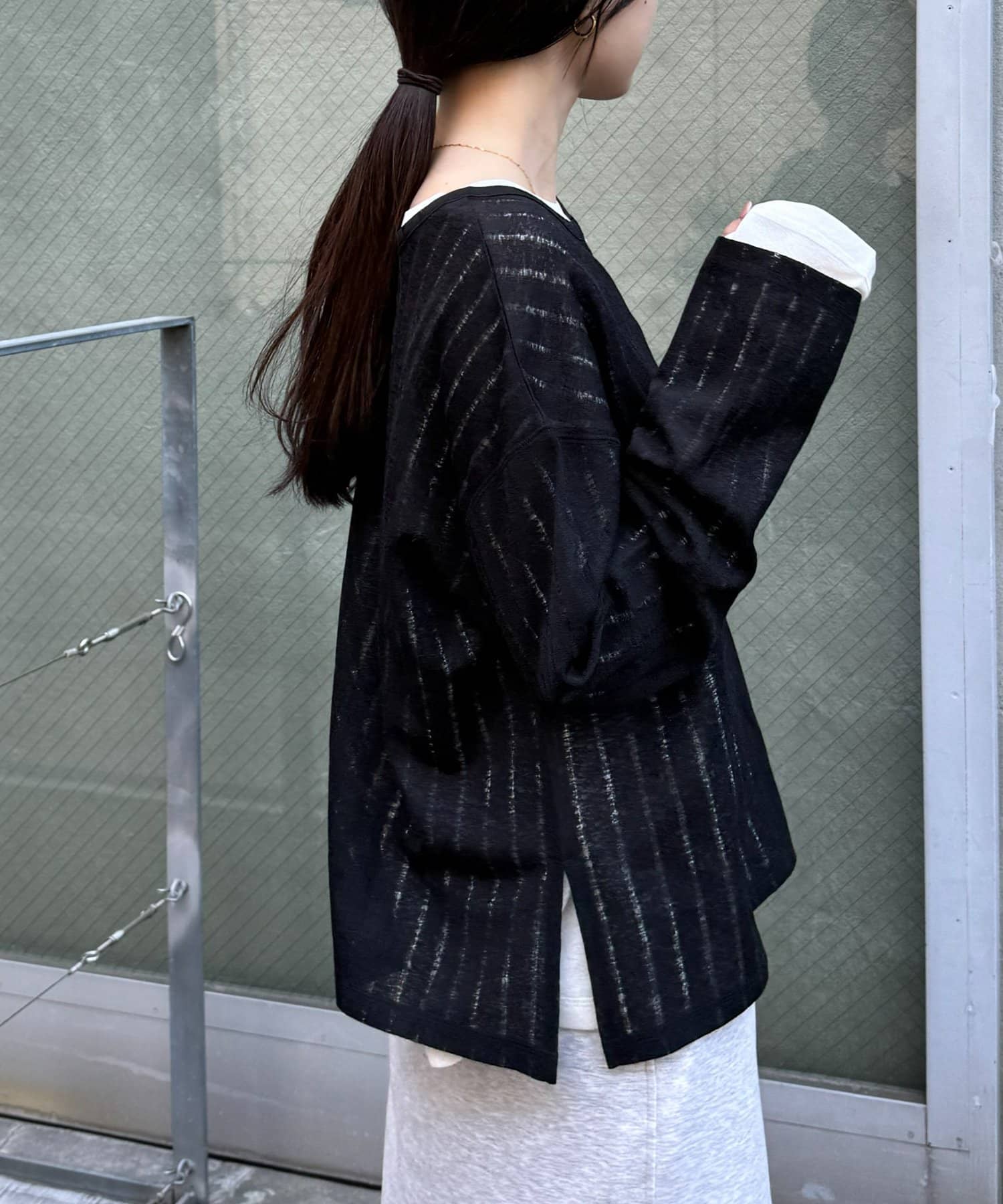 透けすぎないシアー感のため、大人カジュアルにも取り入れやすい一枚です。