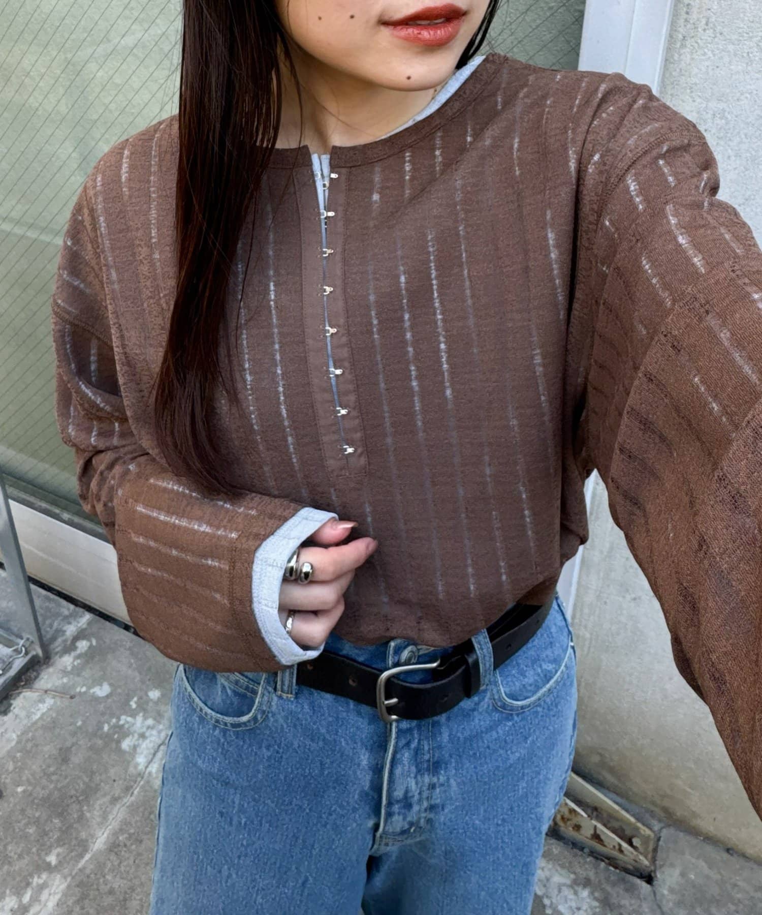 【2WAY】針抜きシアーホックヘンリートップス