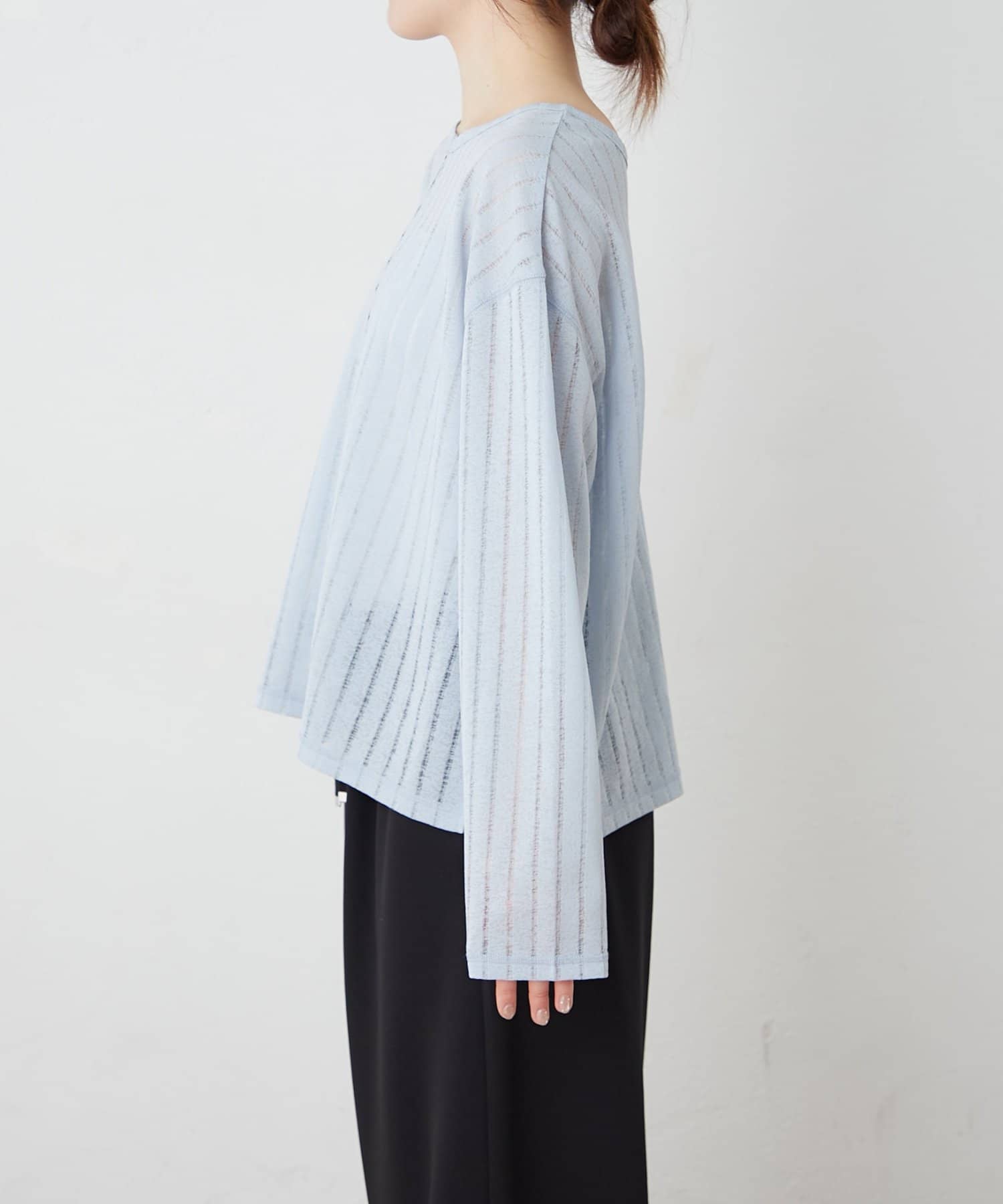 透けすぎないシアー感のため、大人カジュアルにも取り入れやすい一枚です。