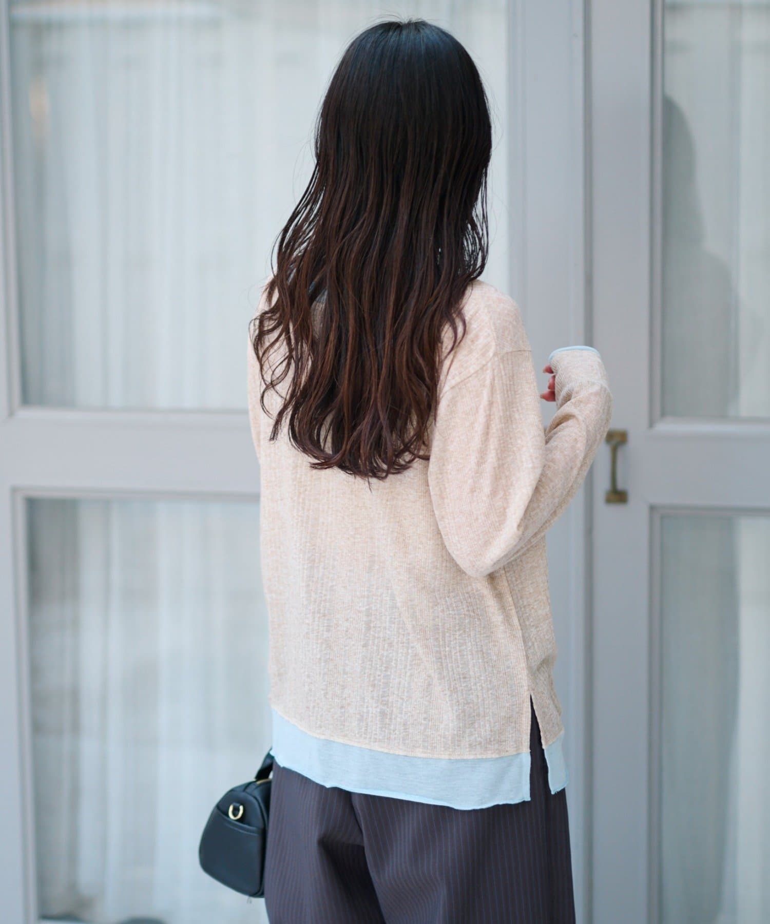 • CIAOPANIC TYPY(チャオパニックティピー) フロントタックレイヤードライクメランジリブカーデ