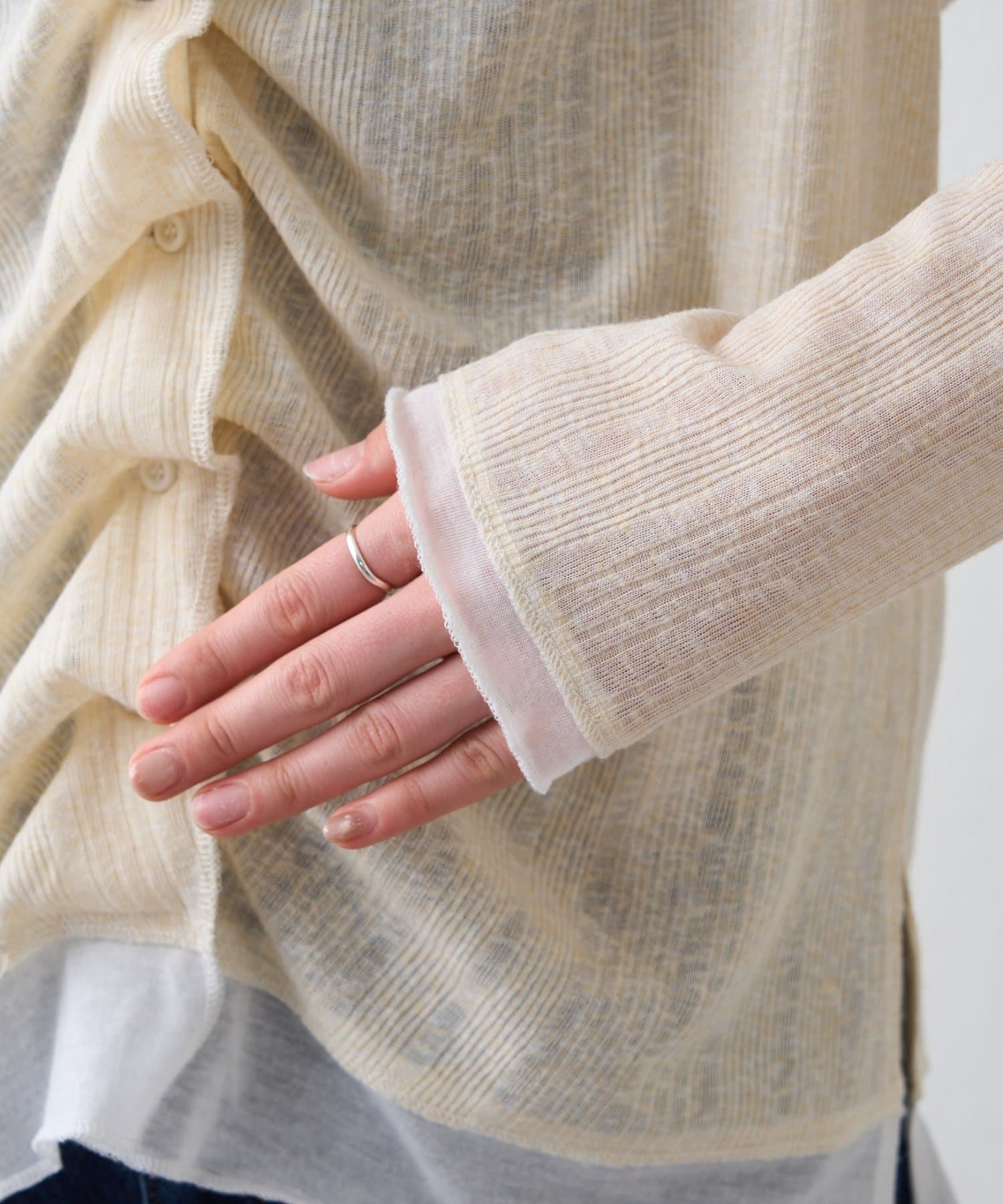 ボタンを開けさらっと羽織れば、季節の変わり目にも活躍します。