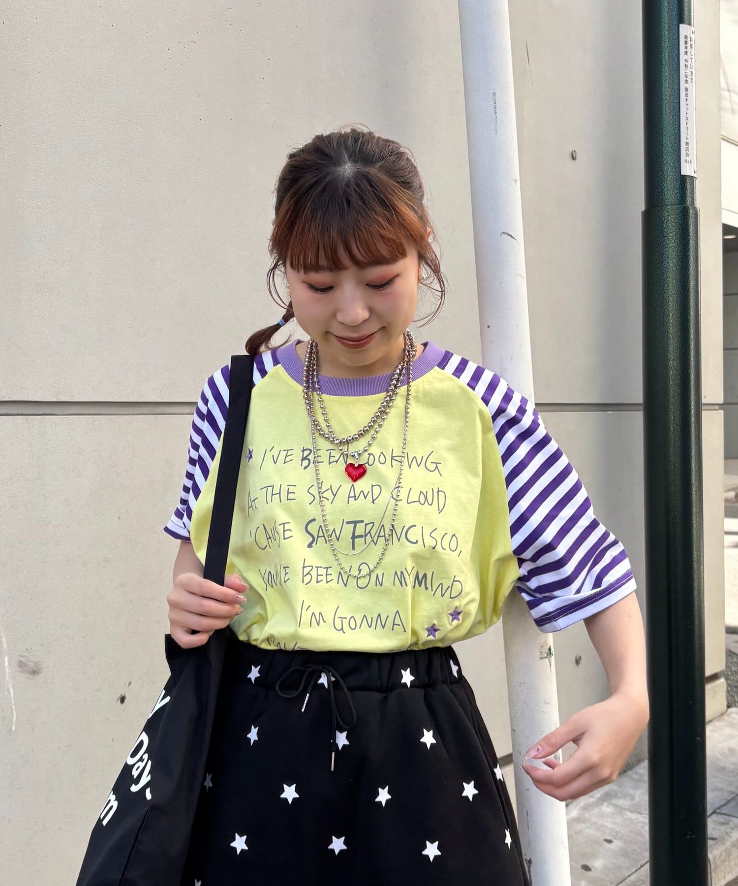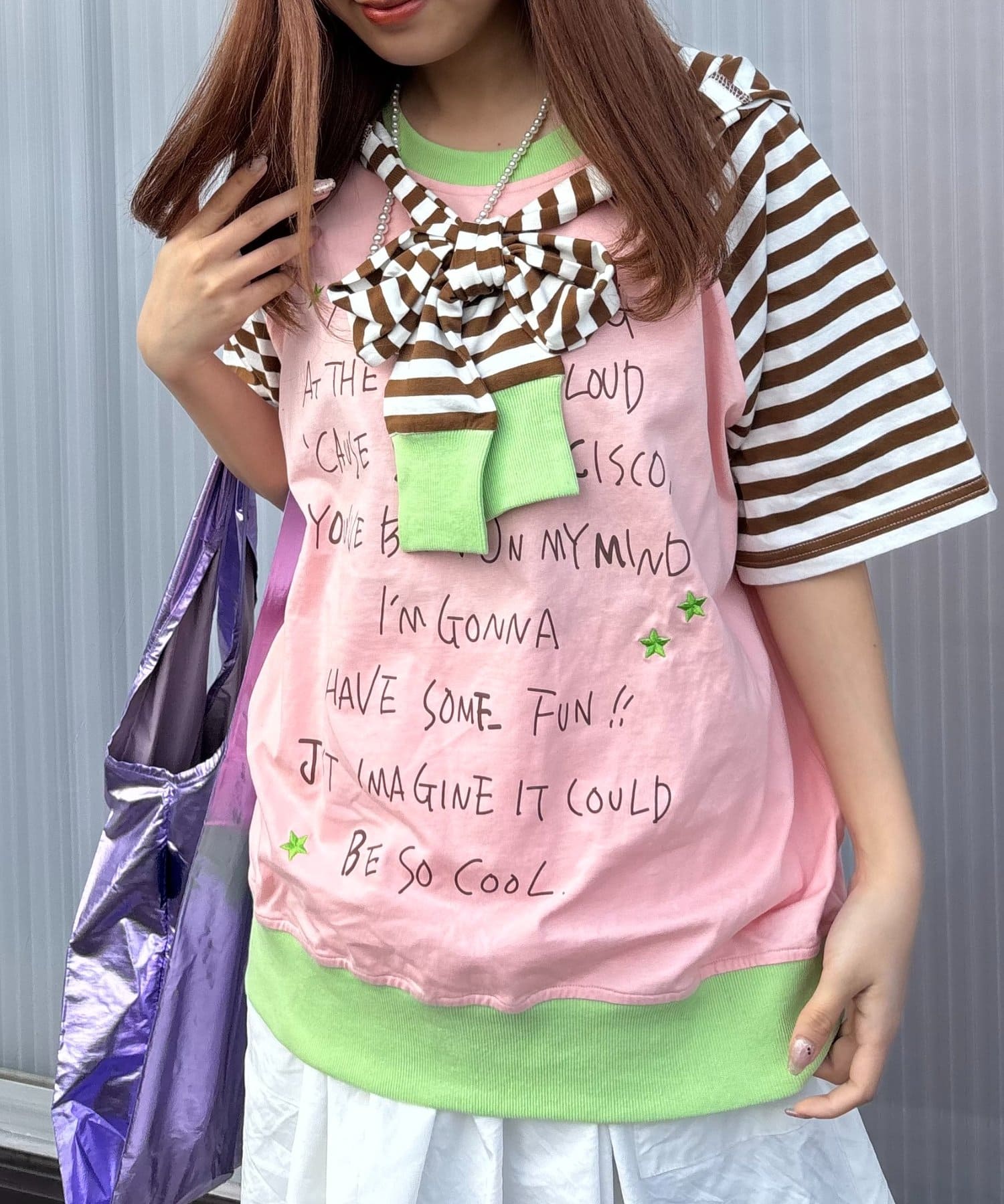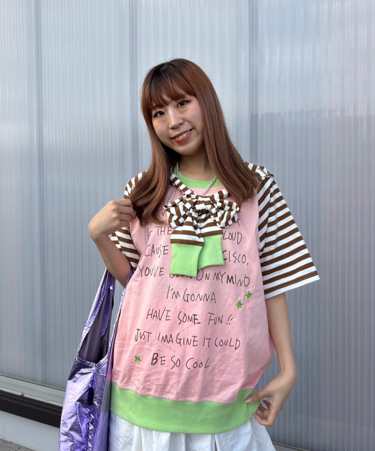 【momoコラボ】【HELLO.SANFRANCISCO/ハローサンフランシスコ】フードリボン付きラグランTee