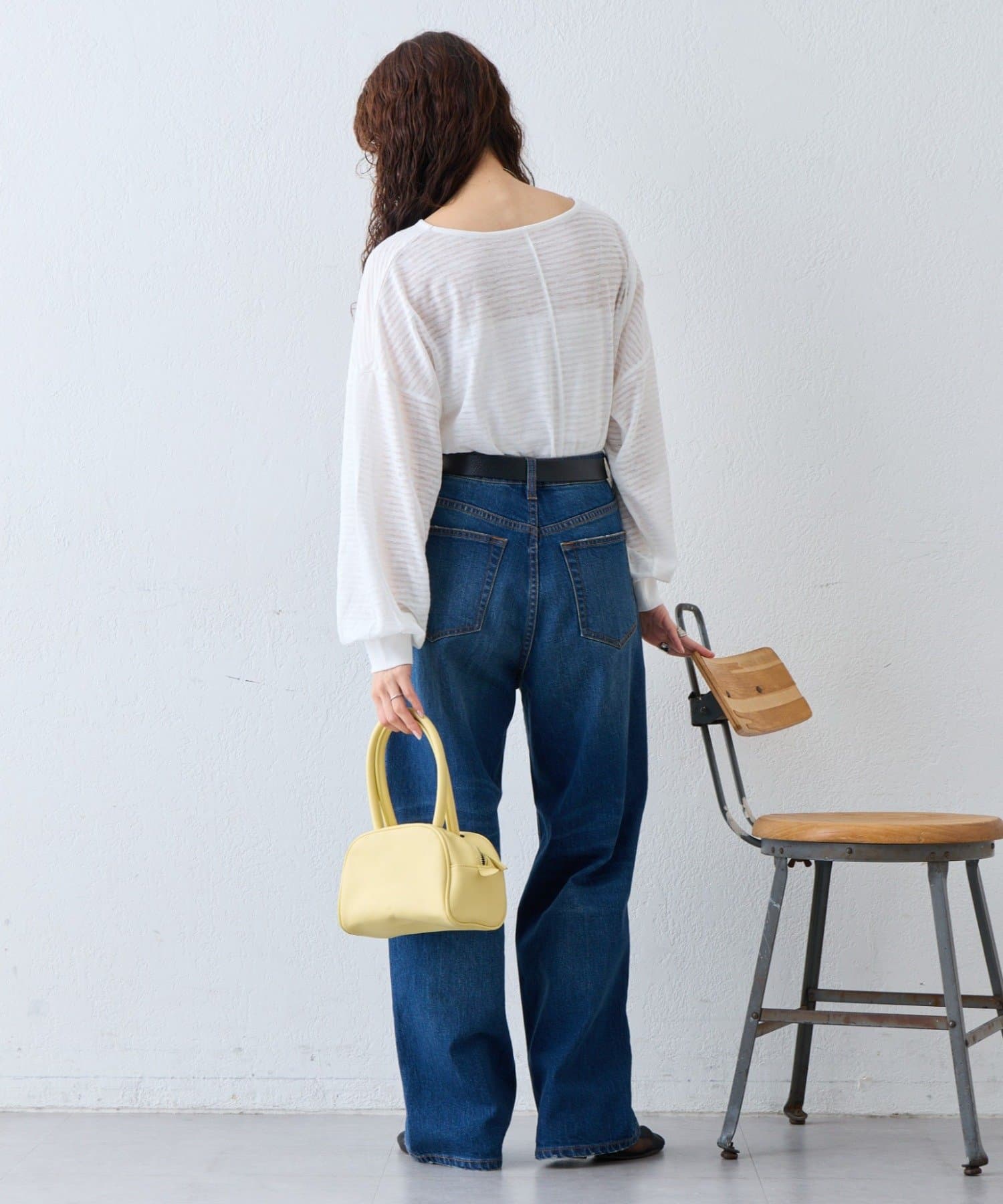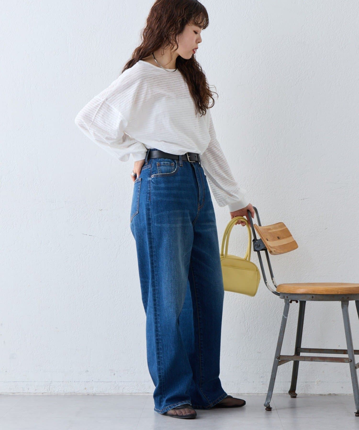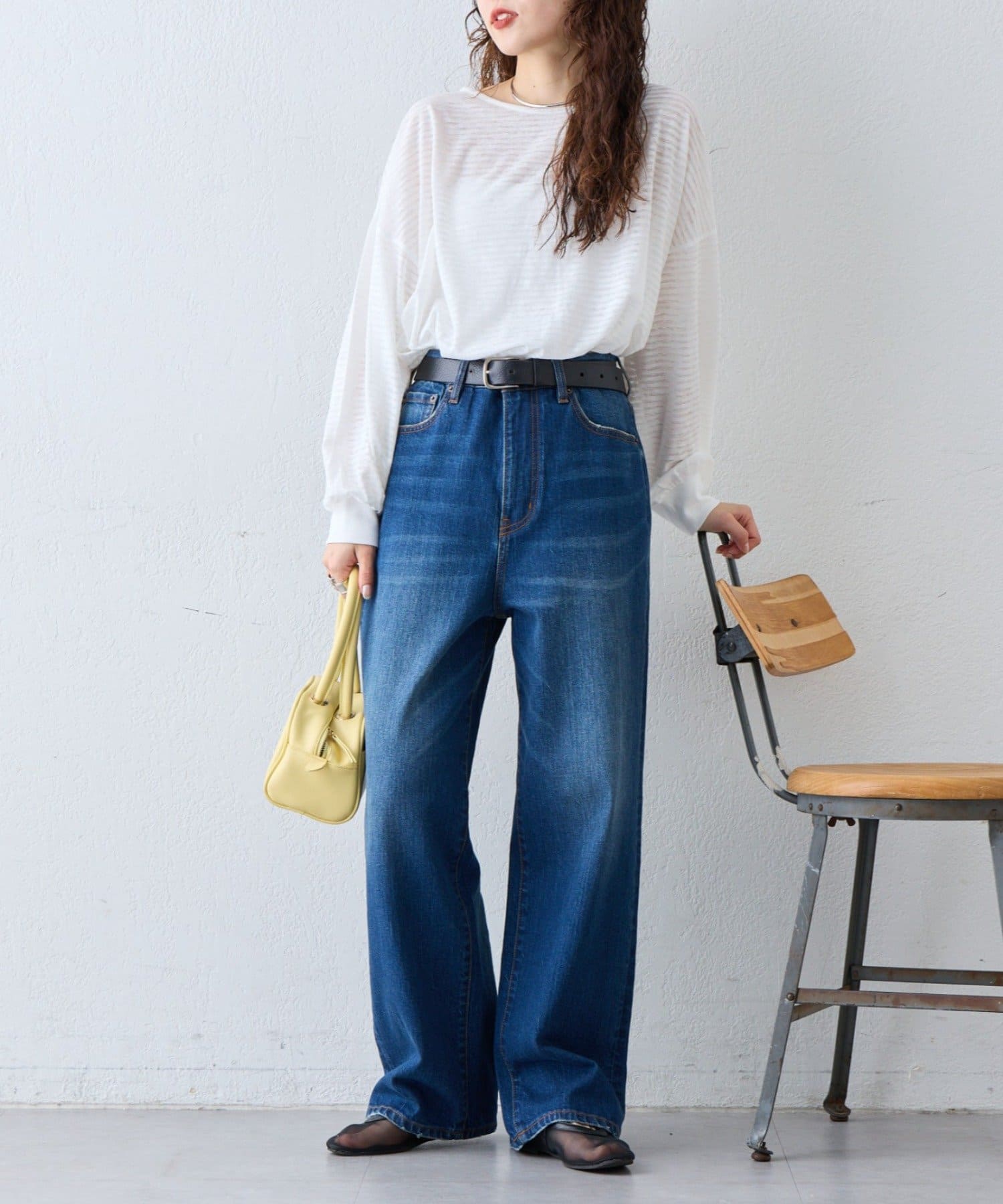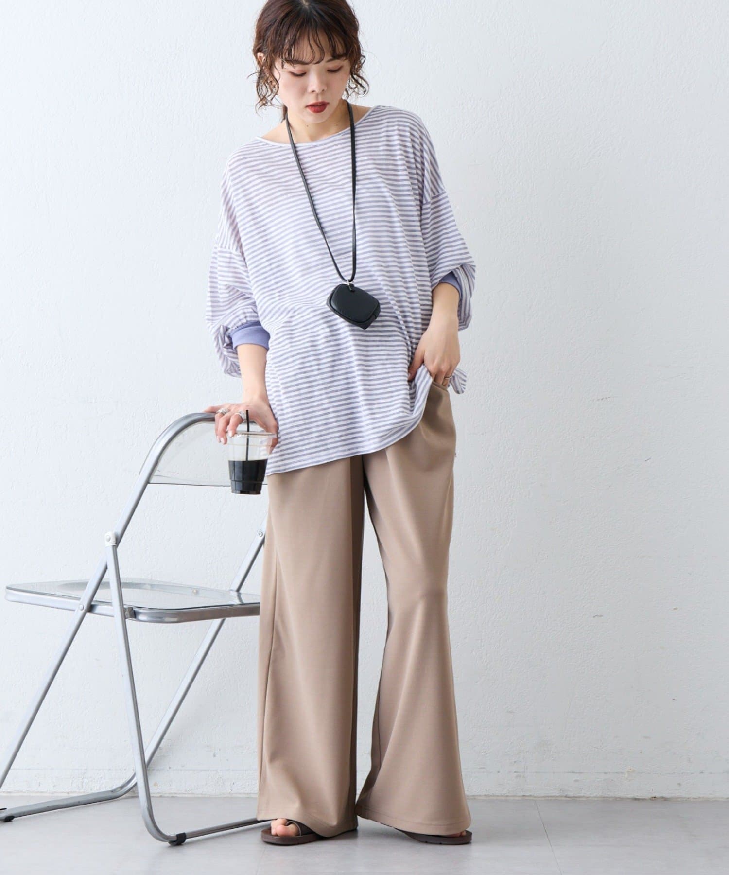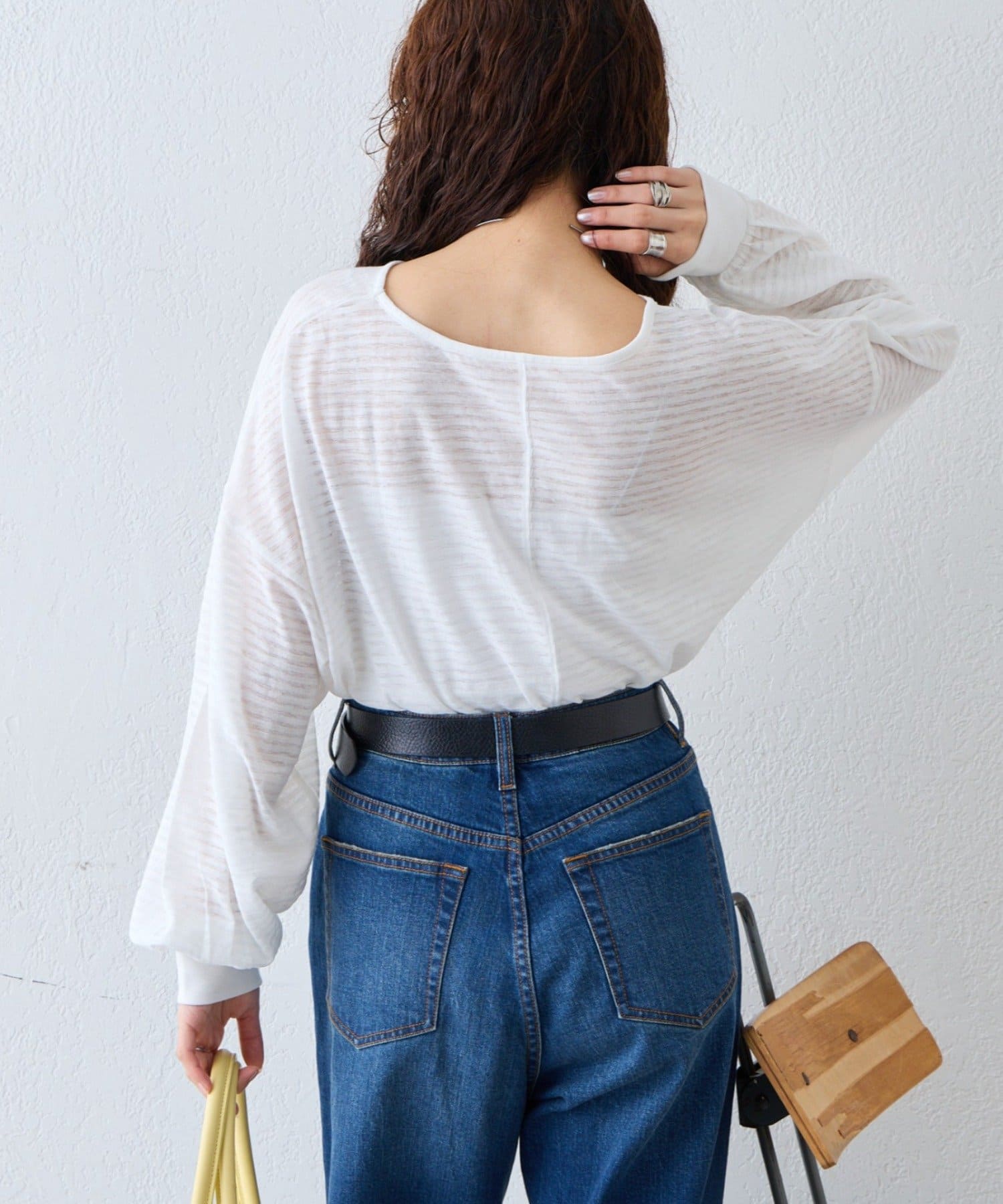 薄くシアーな生地が自然と肩に落ち感を演出し、ゆったりサイズながら華奢に演出。