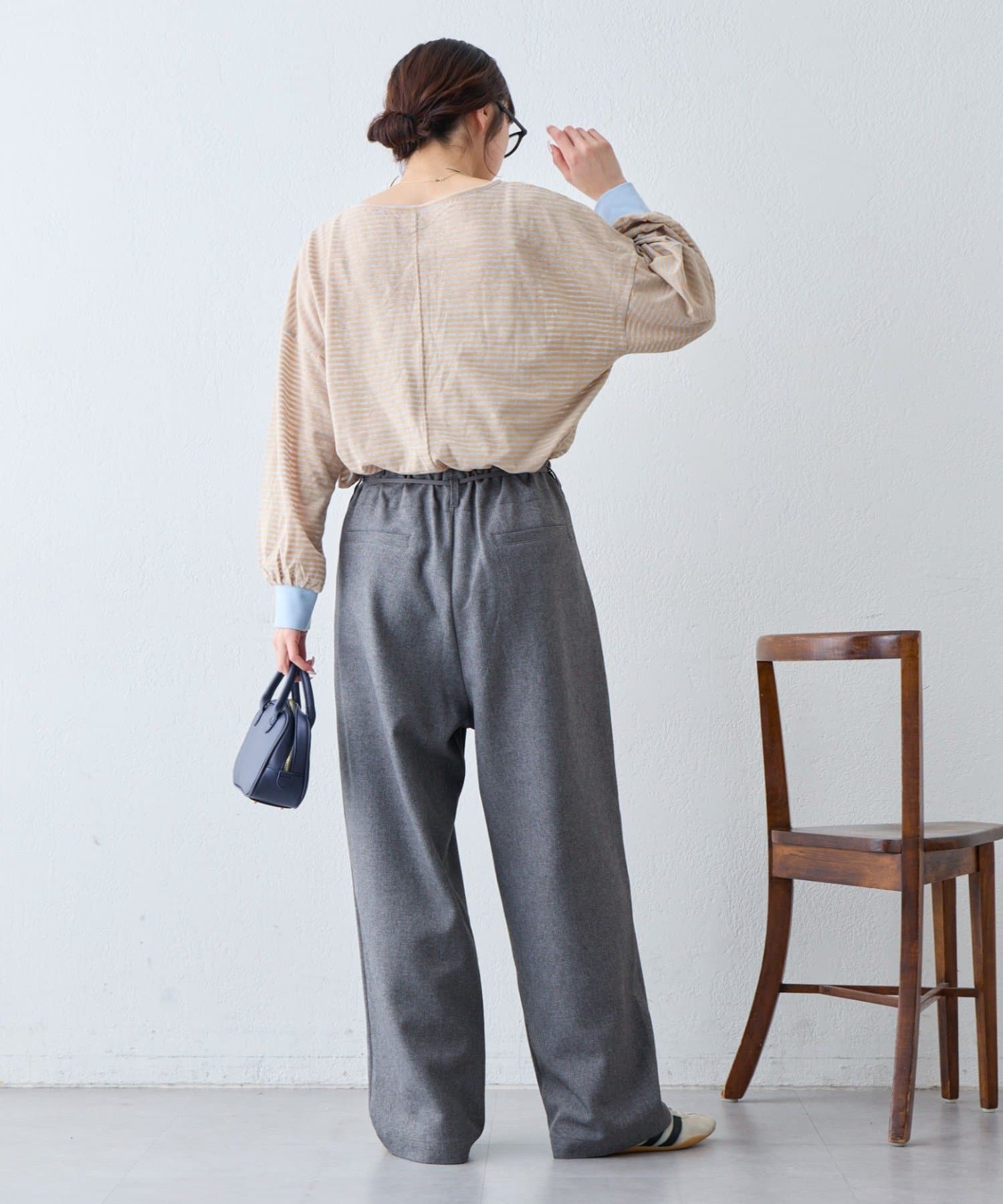 たっぷり幅をとった袖は、リブでキュッと締めることでバルーンっぽいシルエットに。