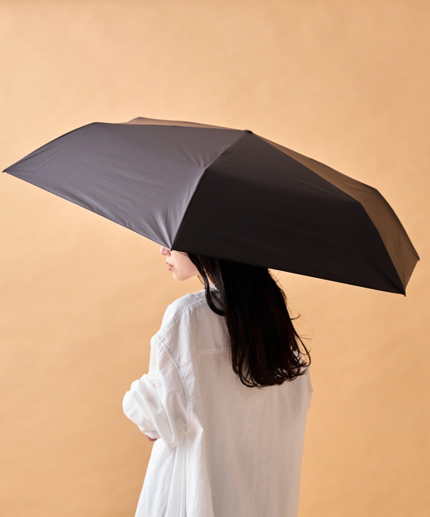 高密度軽量生地と軽くて丈夫なカーボン素材の傘骨を使用。天候が不安定なときにも持っておきたい1本です。