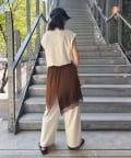 ゴムに加え紐を通したウエストは、体型や合わせるボトムに応じて調節しやすい仕様です。