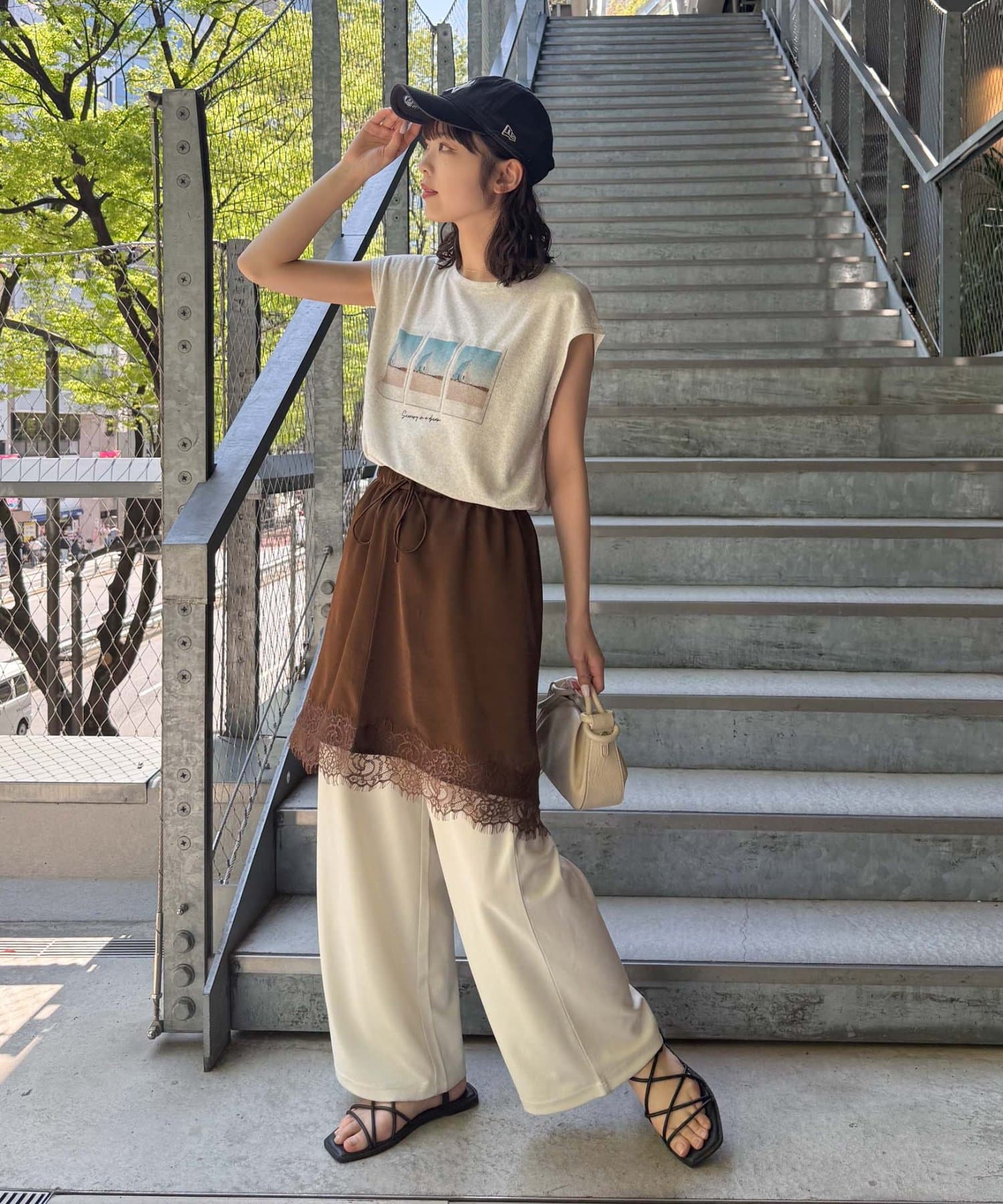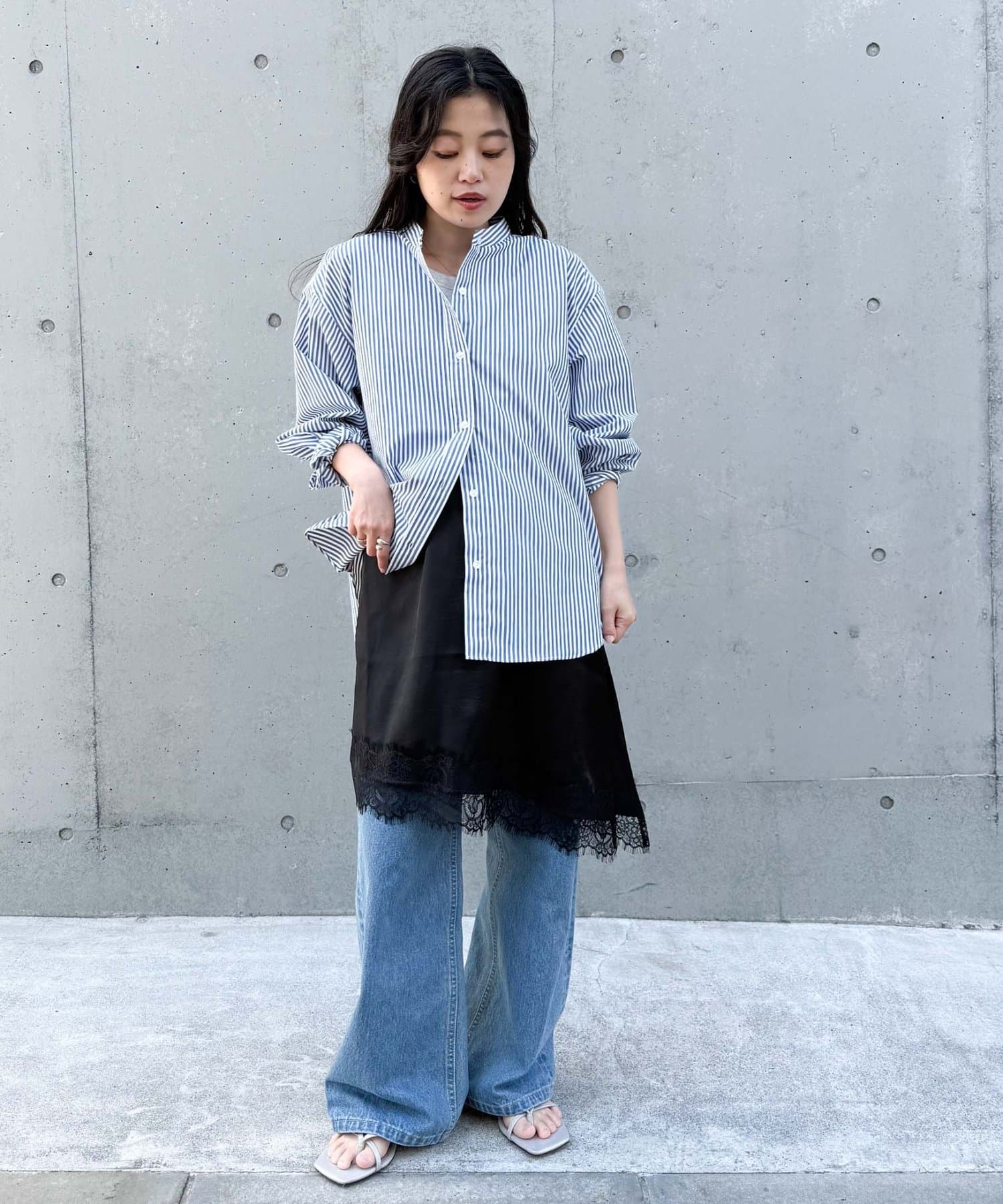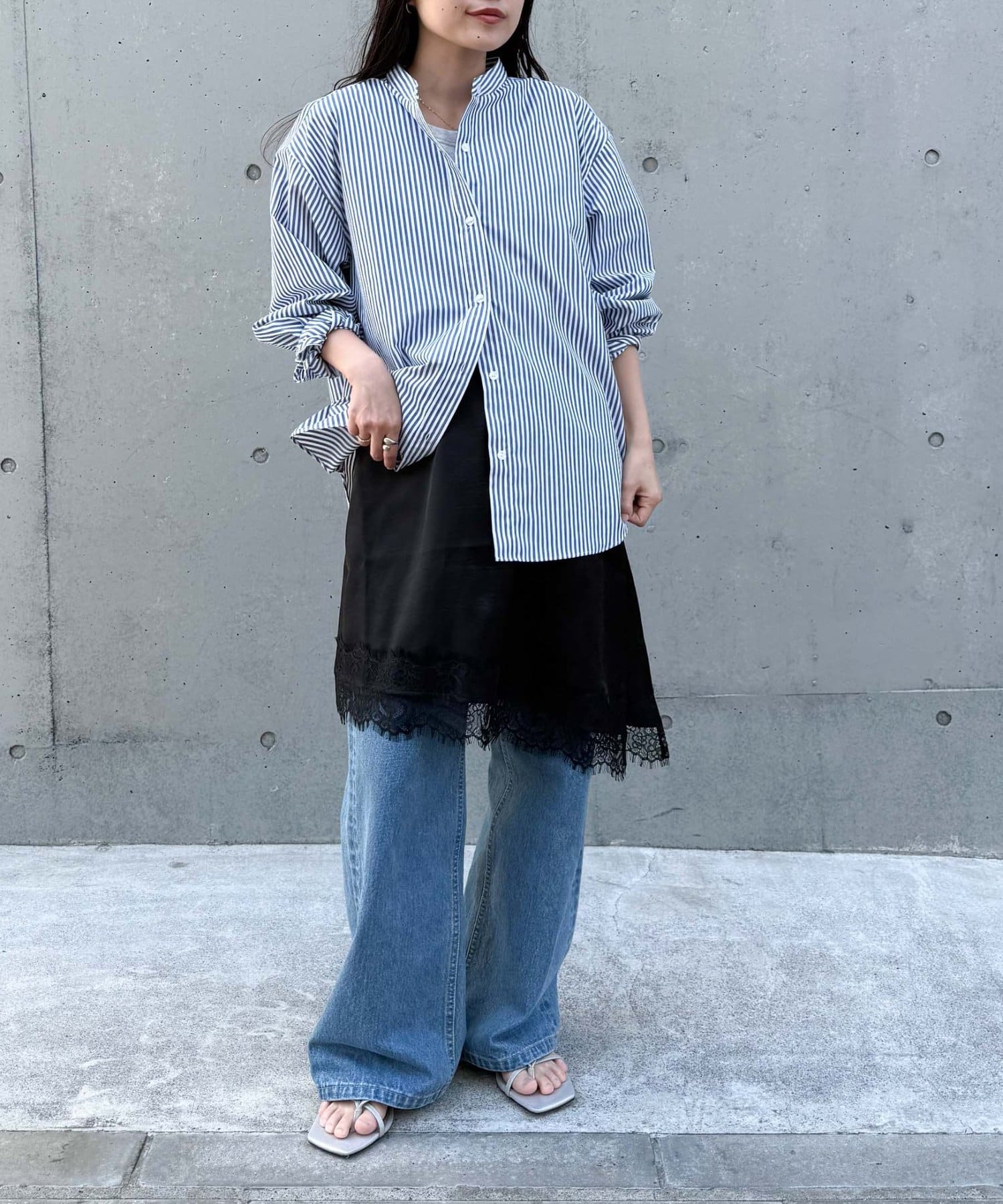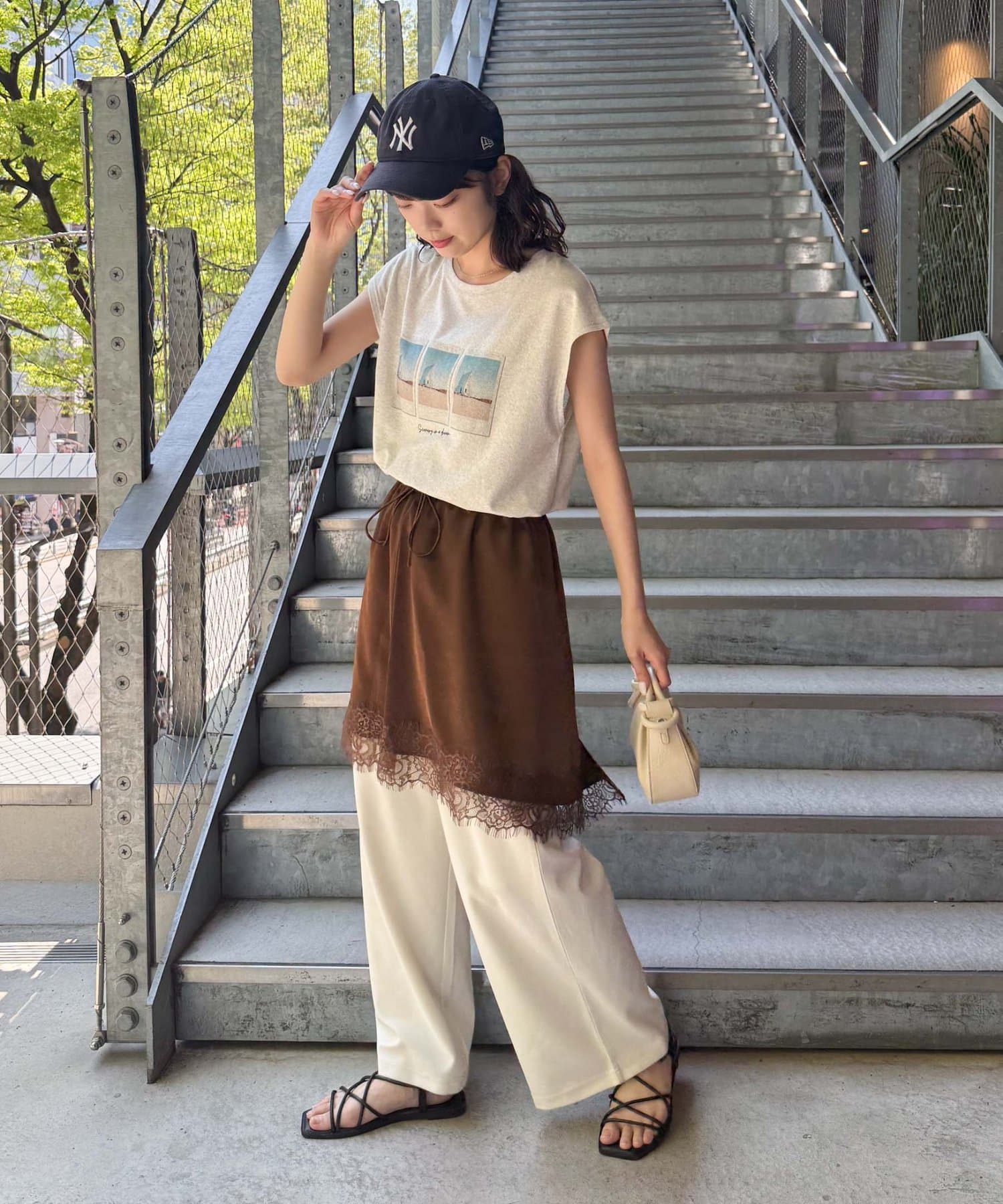 トレンドのレースは、裾のみにすることで甘くなりすぎず