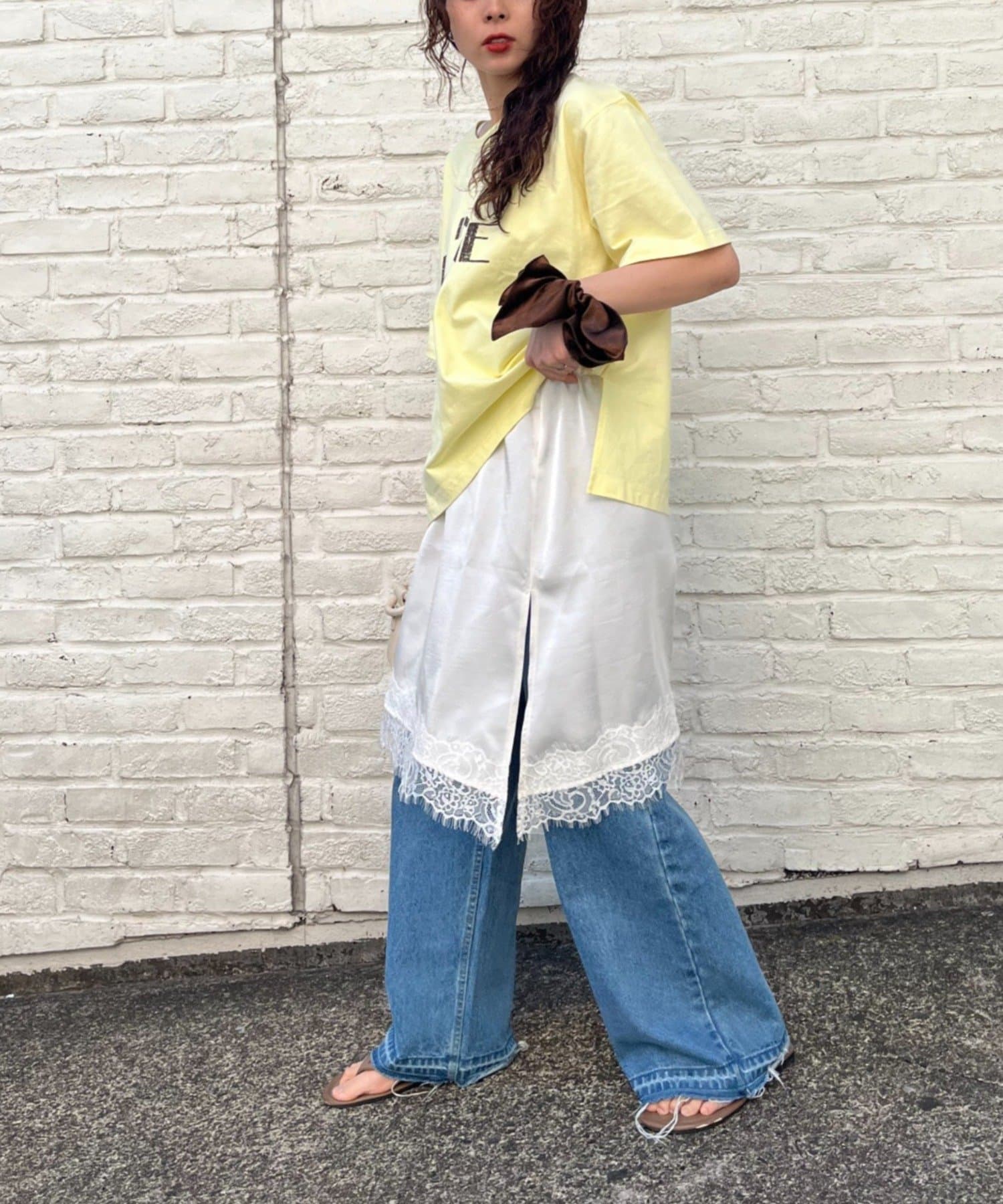 デイリーなデニム×Tシャツに足すだけで一気にお出掛け気分のスタイリングに。