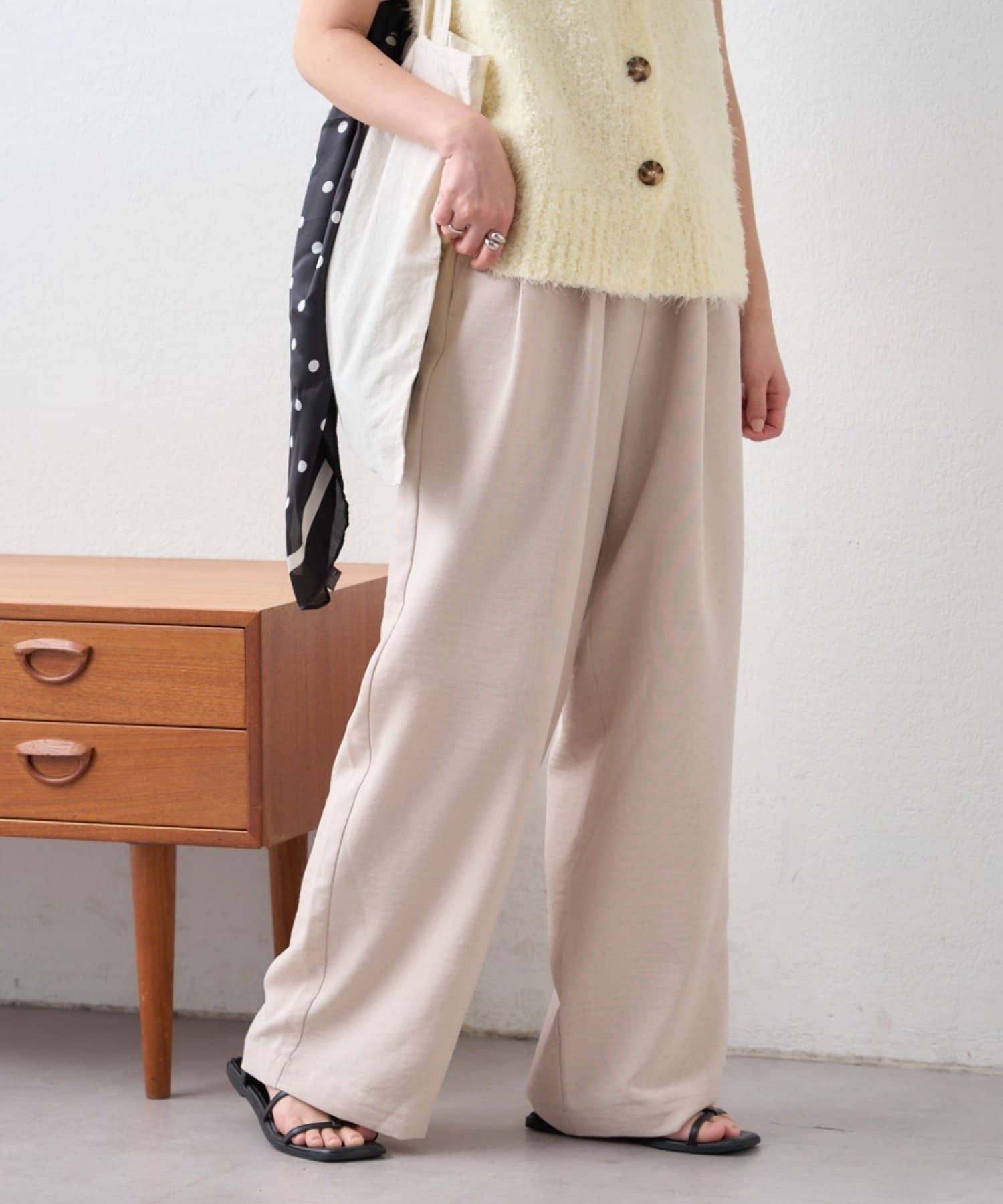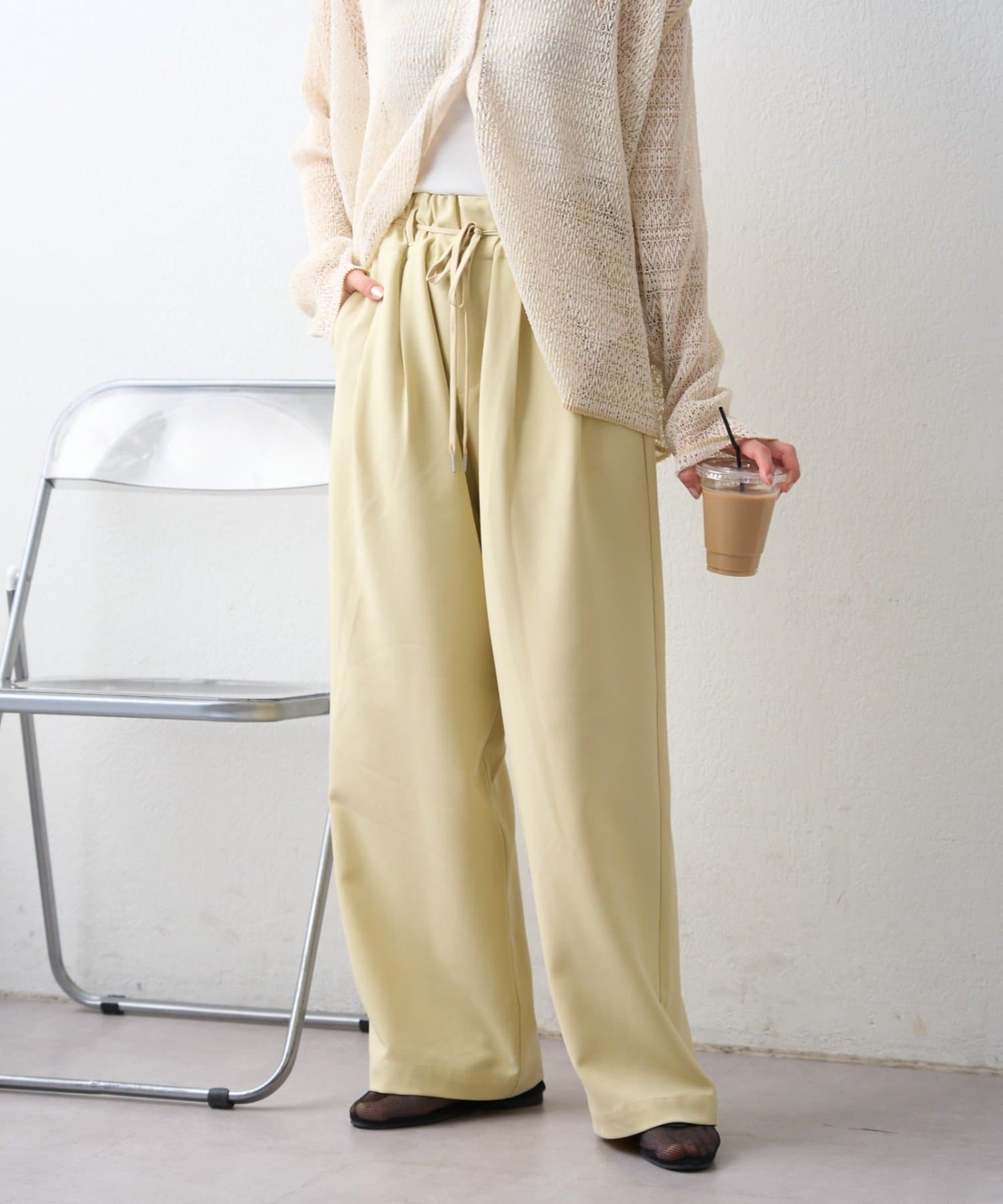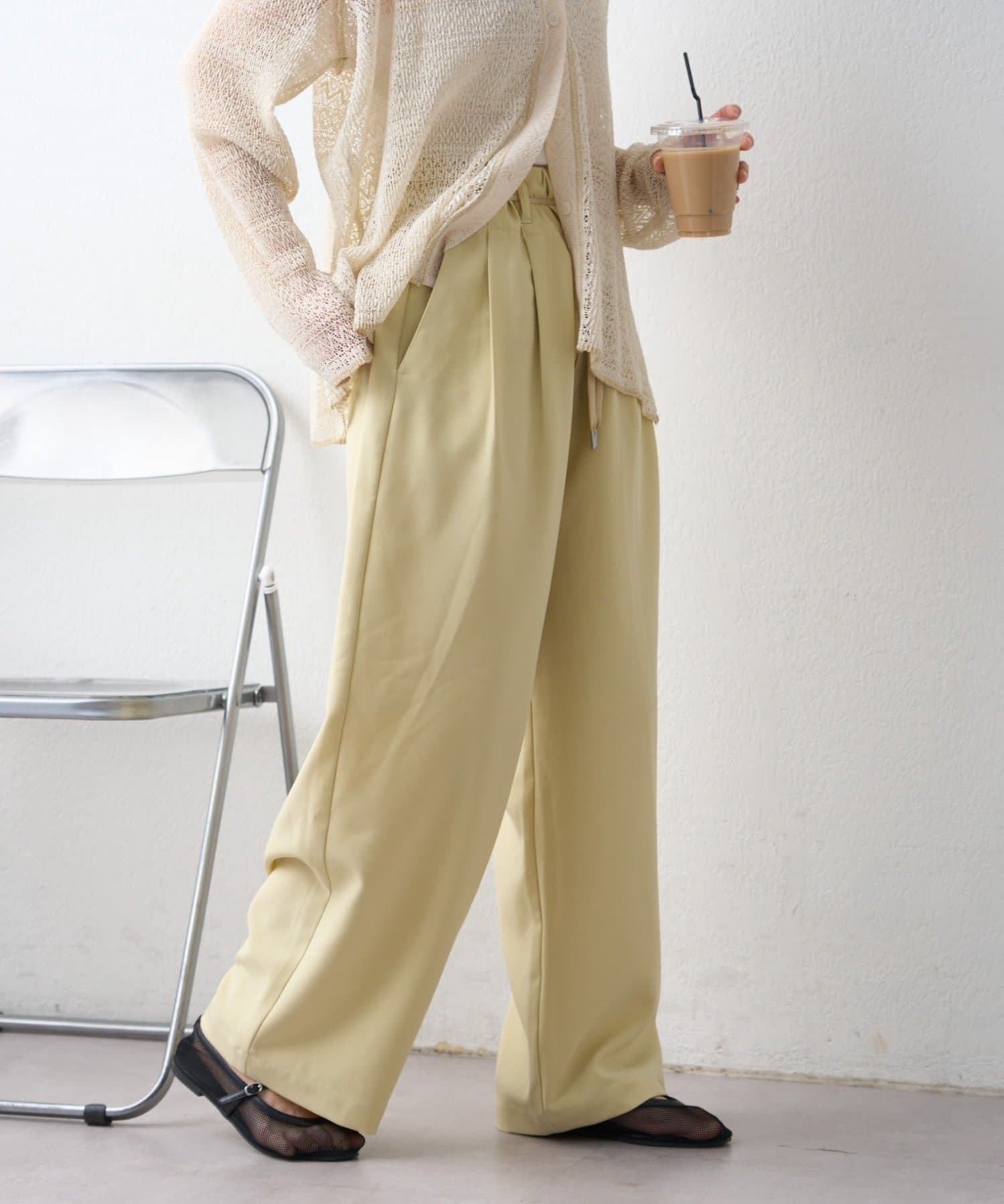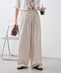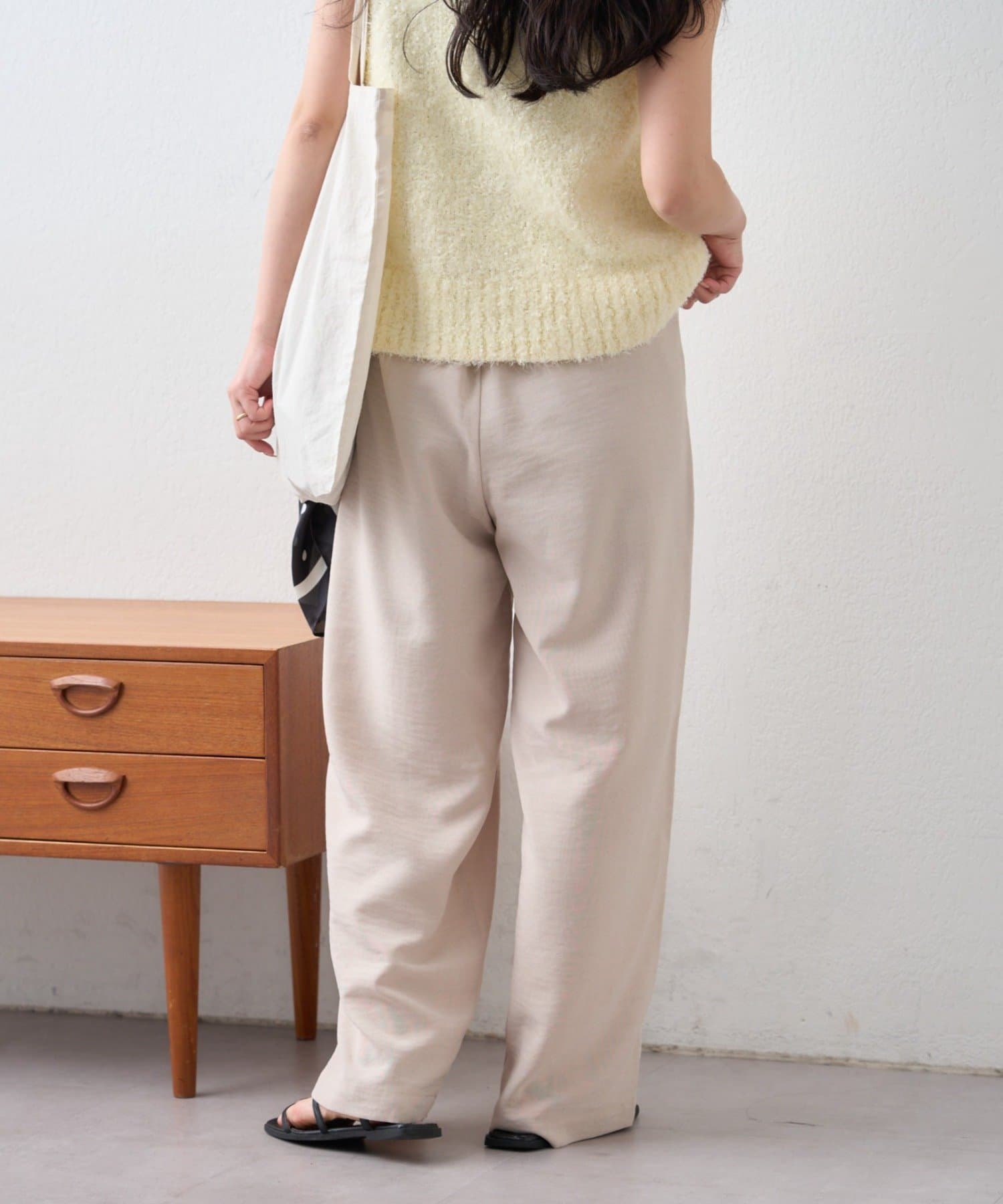 TOP > CIAOPANIC TYPY > レディース > パンツ > スラックス > 【接触冷感/5サイズ展開】テックリネンウエスト紐ベルトワイドイージースラックス