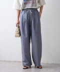 【接触冷感/5サイズ展開】テックリネンウエスト紐ベルトワイドイージースラックス