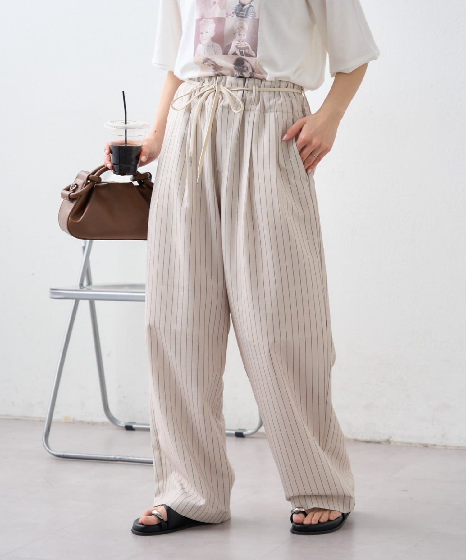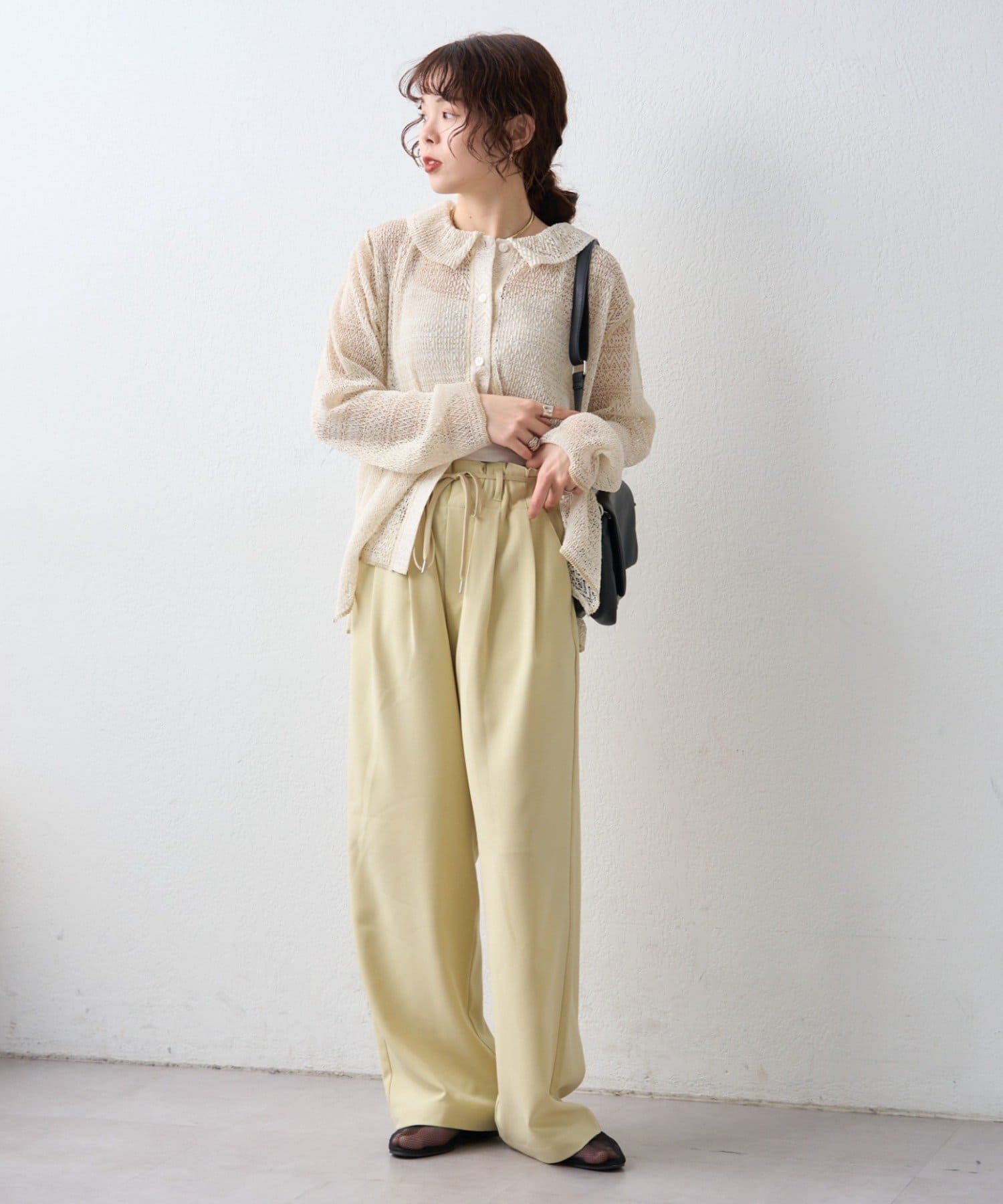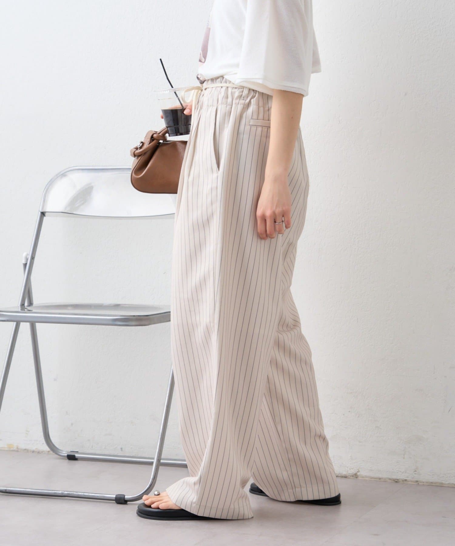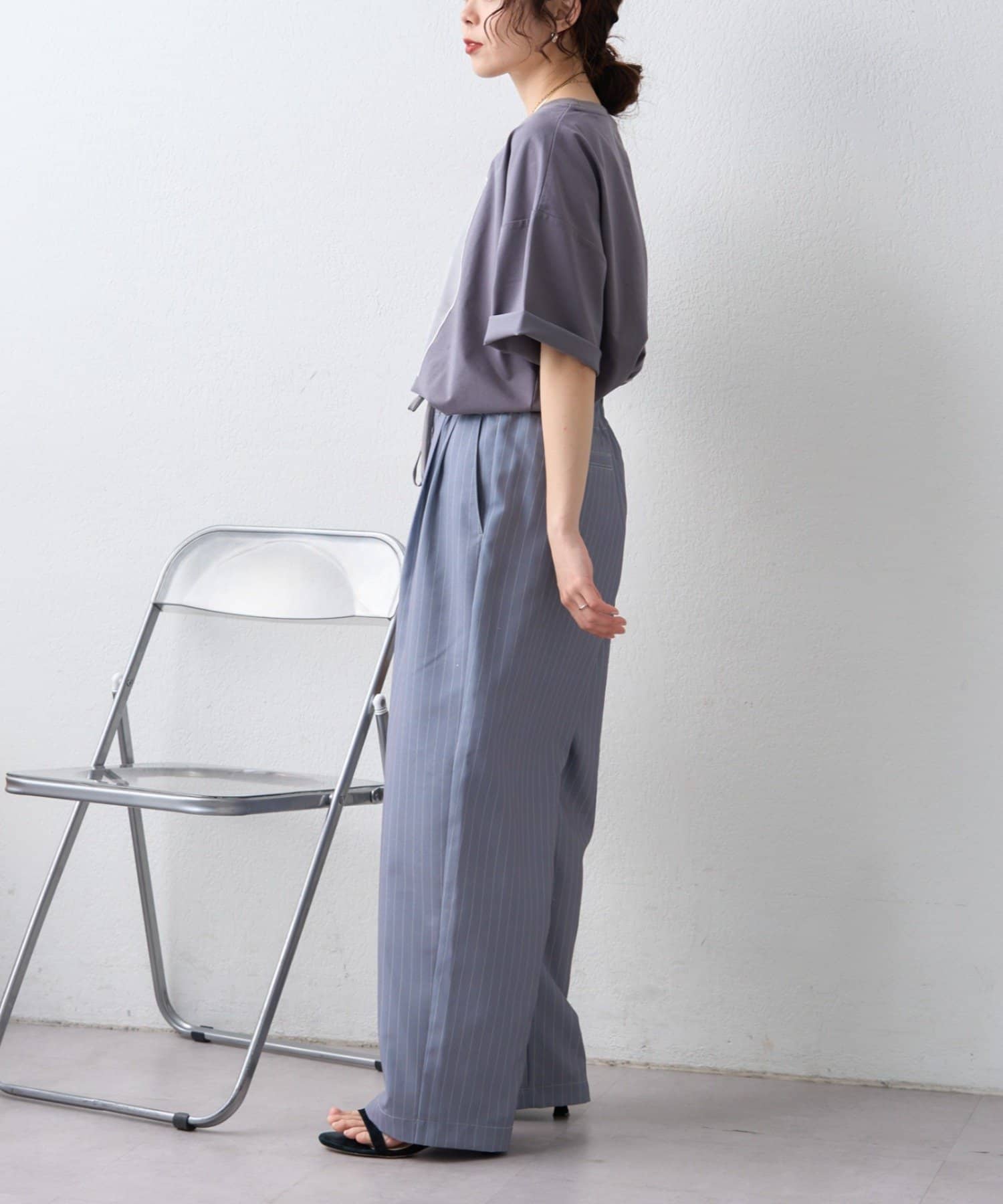 足元をサンダルにすれば軽やかに、スニーカーならデイリーに使いやすいスタイリングになります。