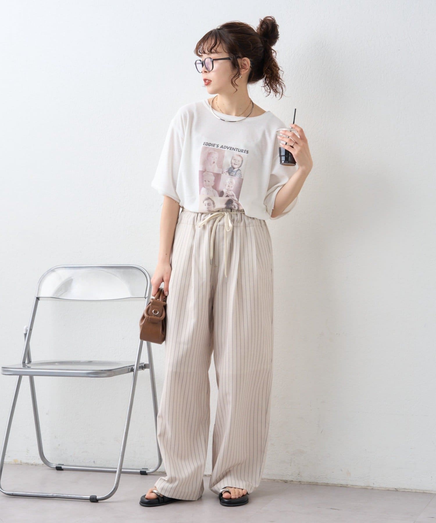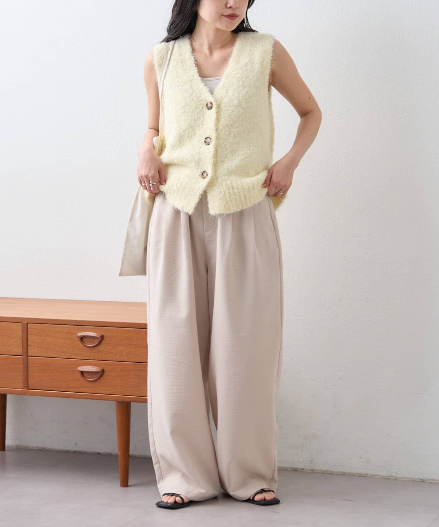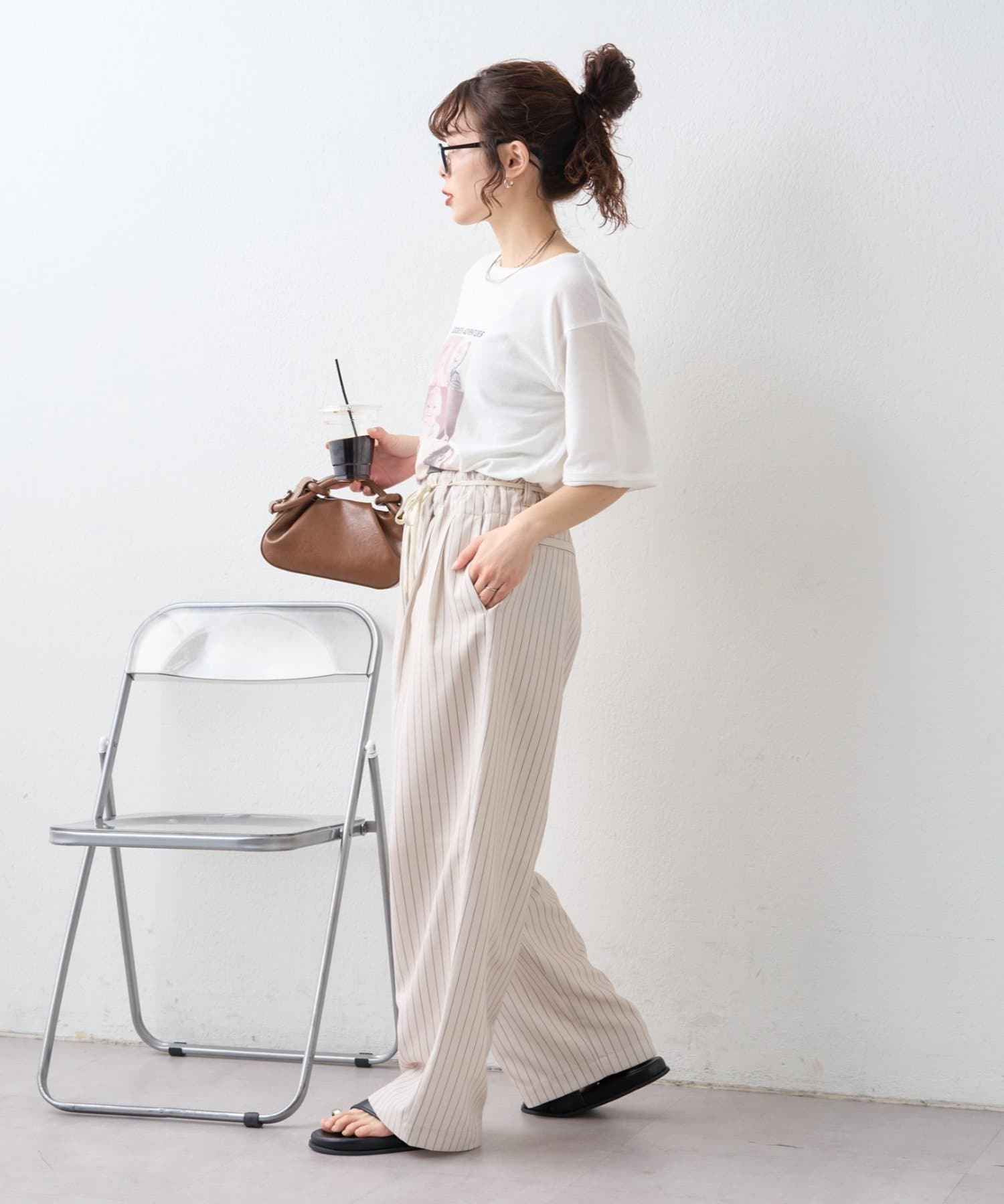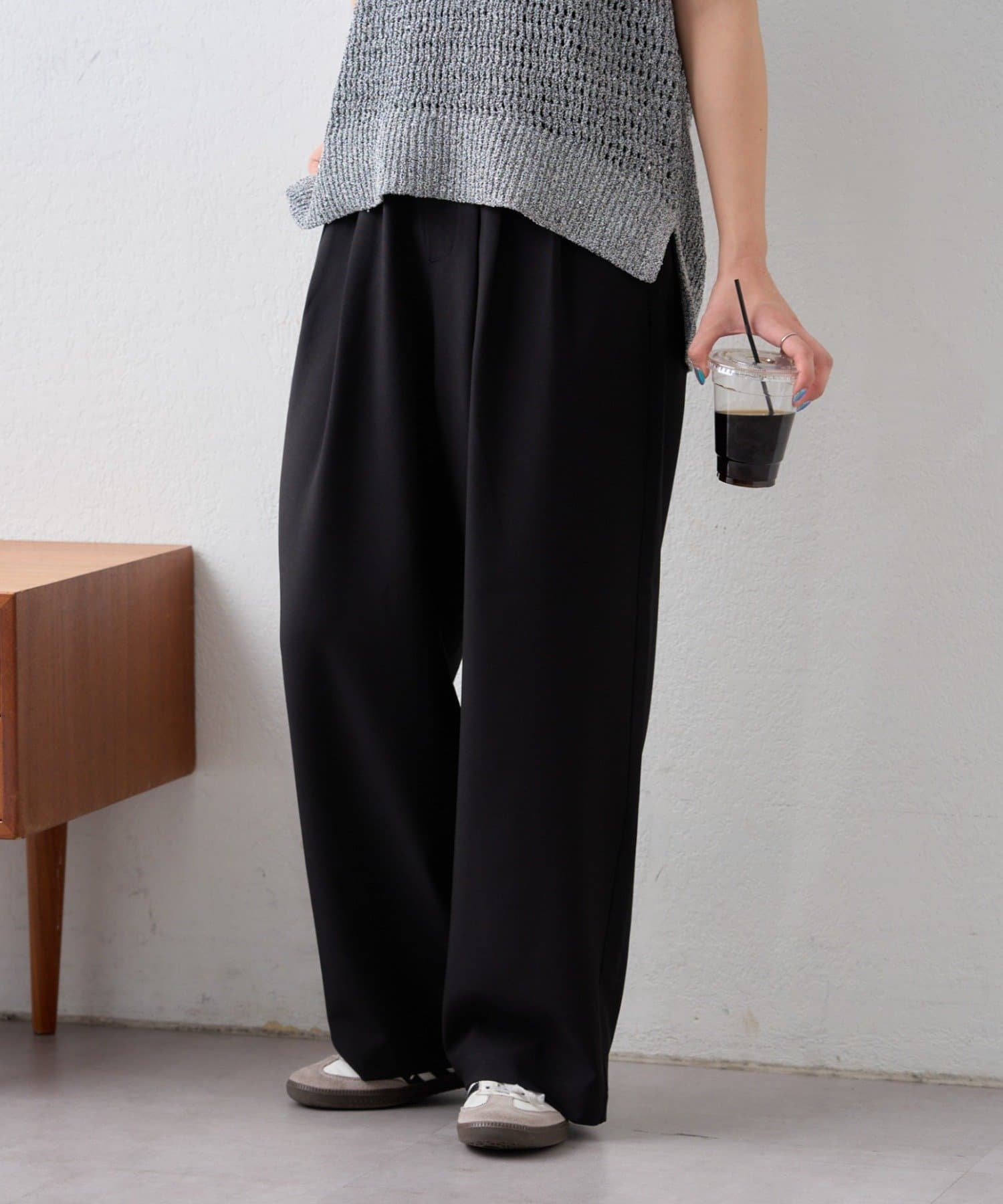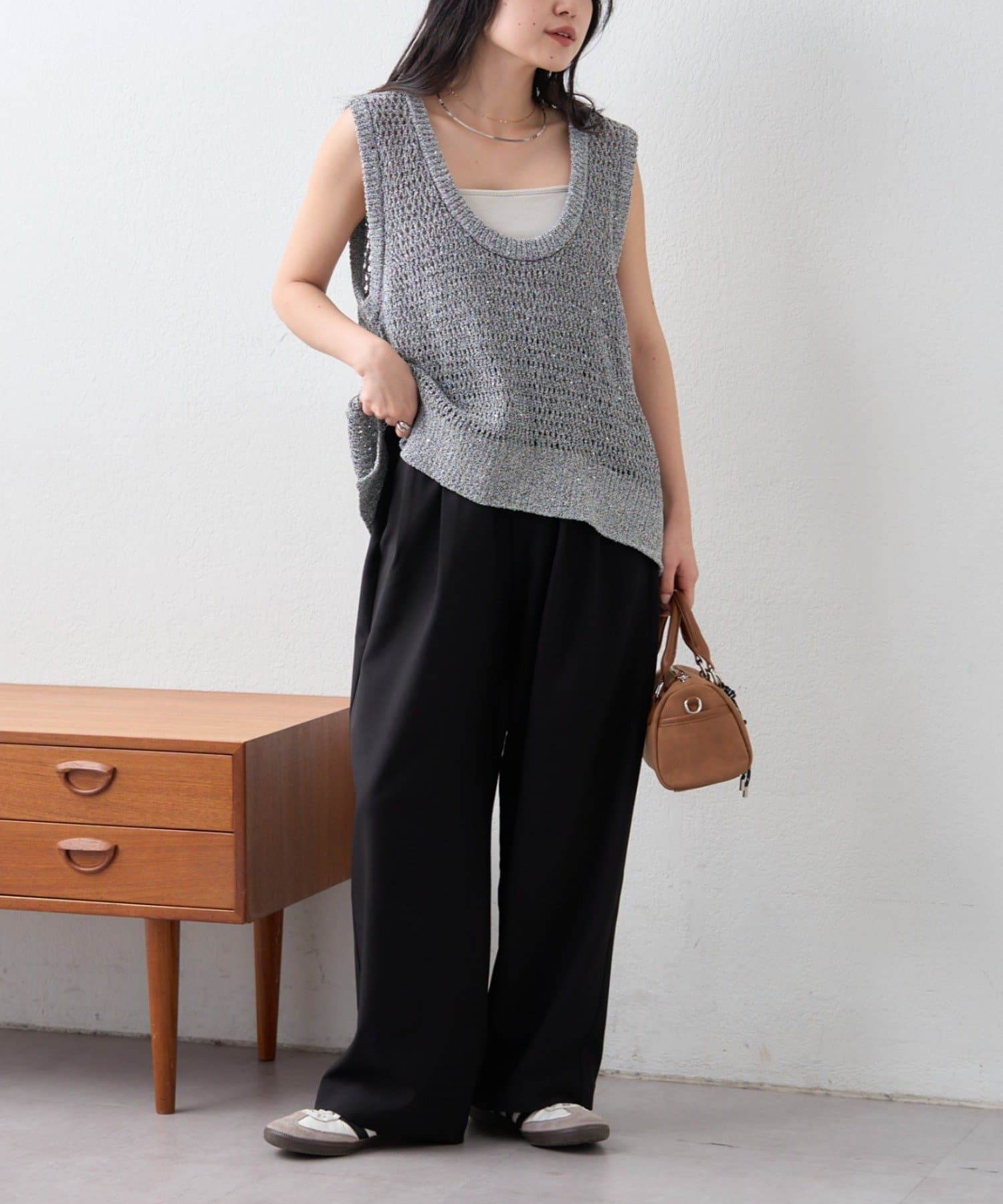 足元をサンダルにすれば軽やかに、スニーカーならデイリーに使いやすいスタイリングになります。