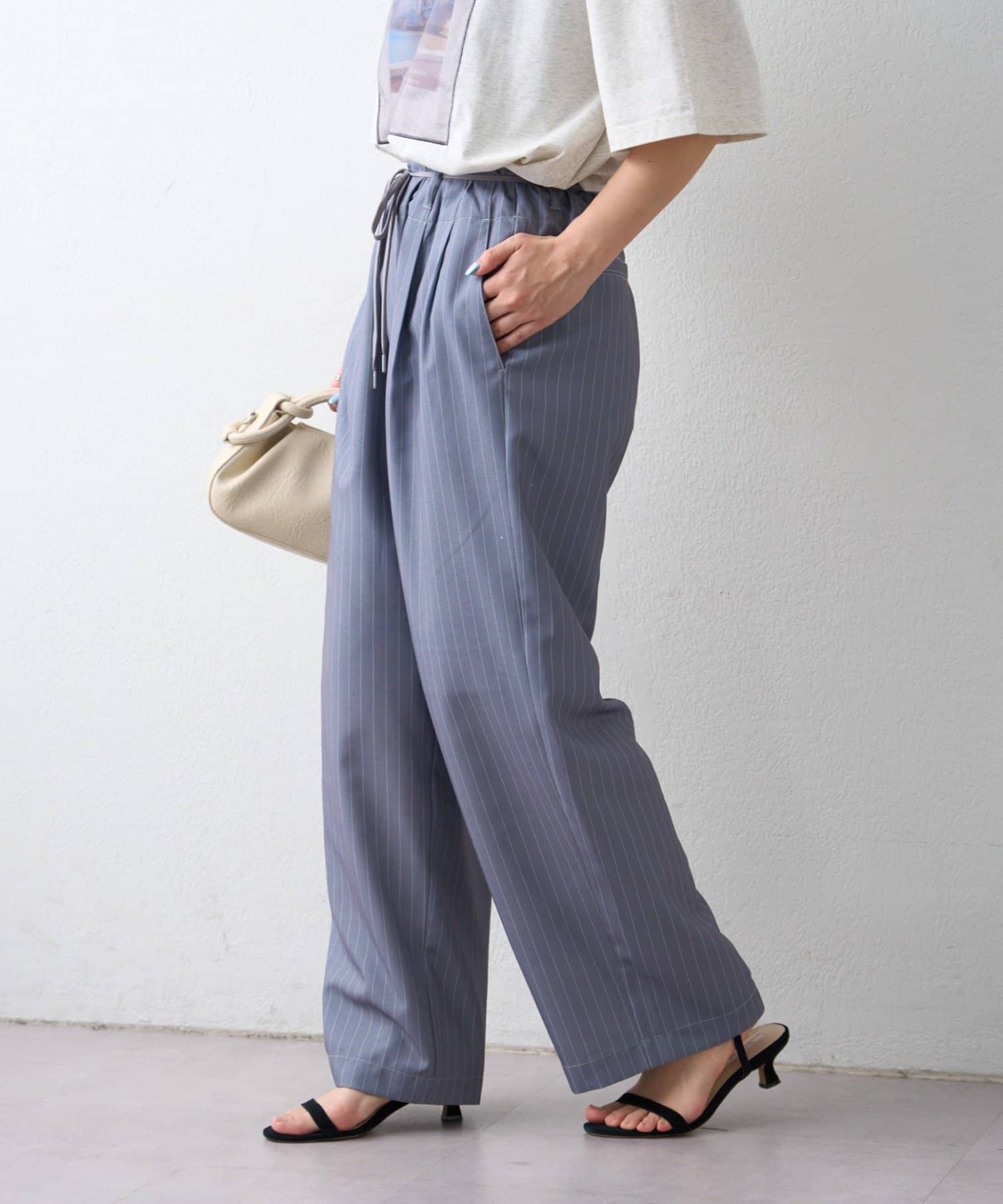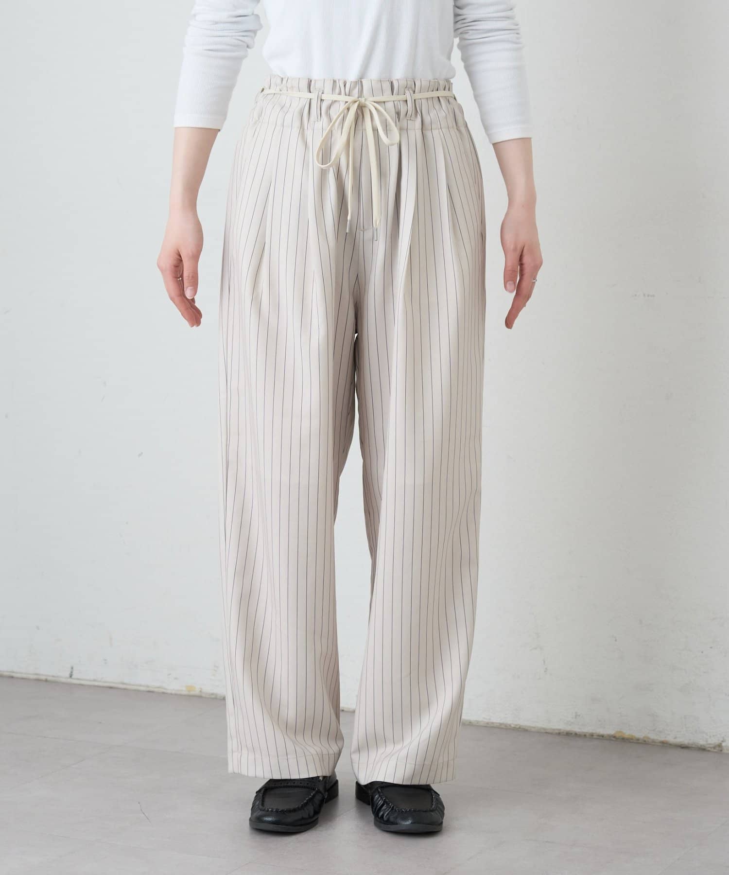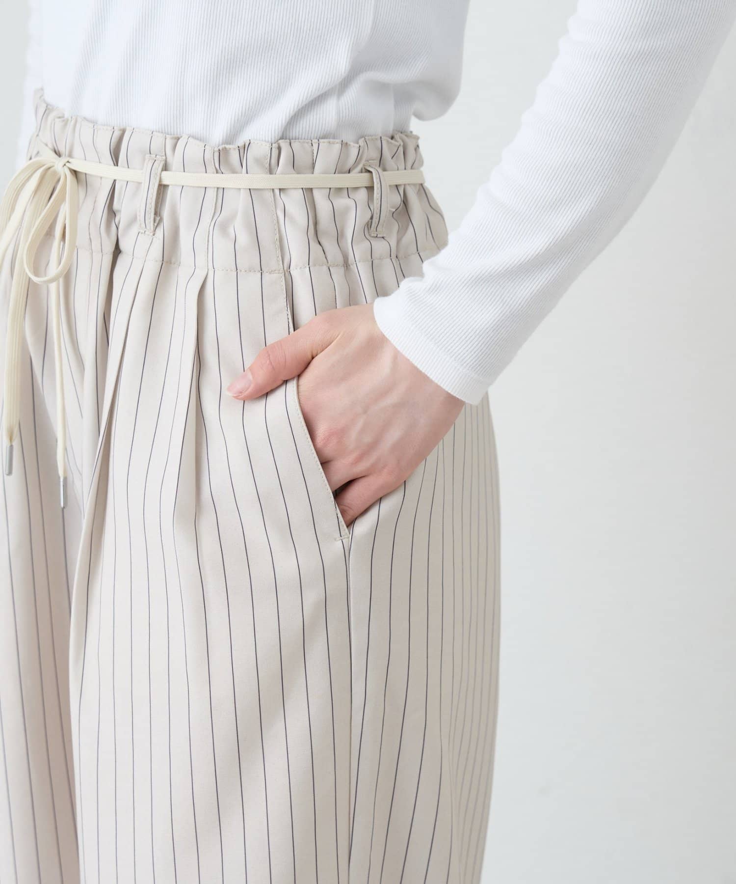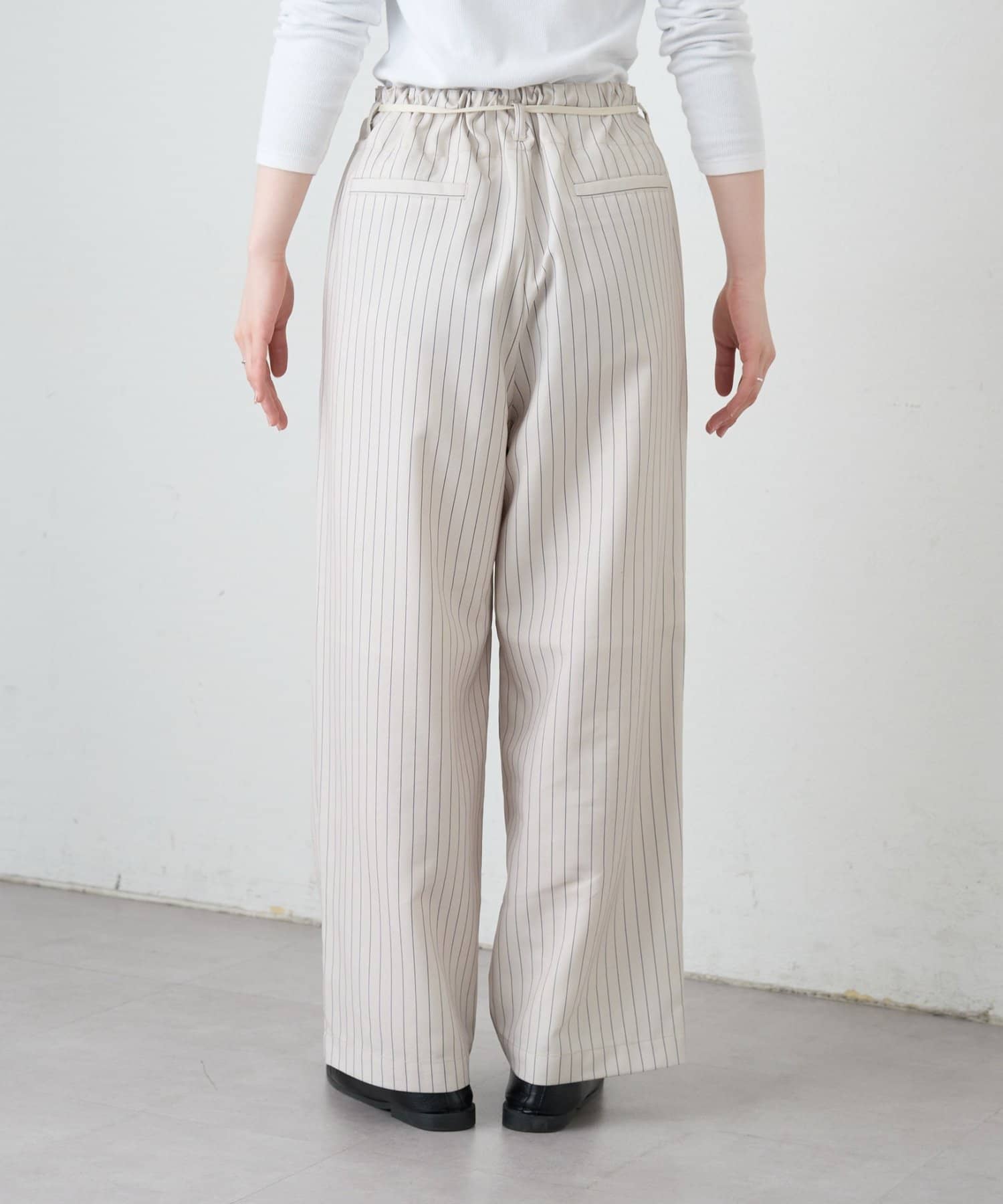 ゴム仕様のウエストで、リラックス感がありながら、ベルトループ付きなので綺麗めな気分にもマッチ。