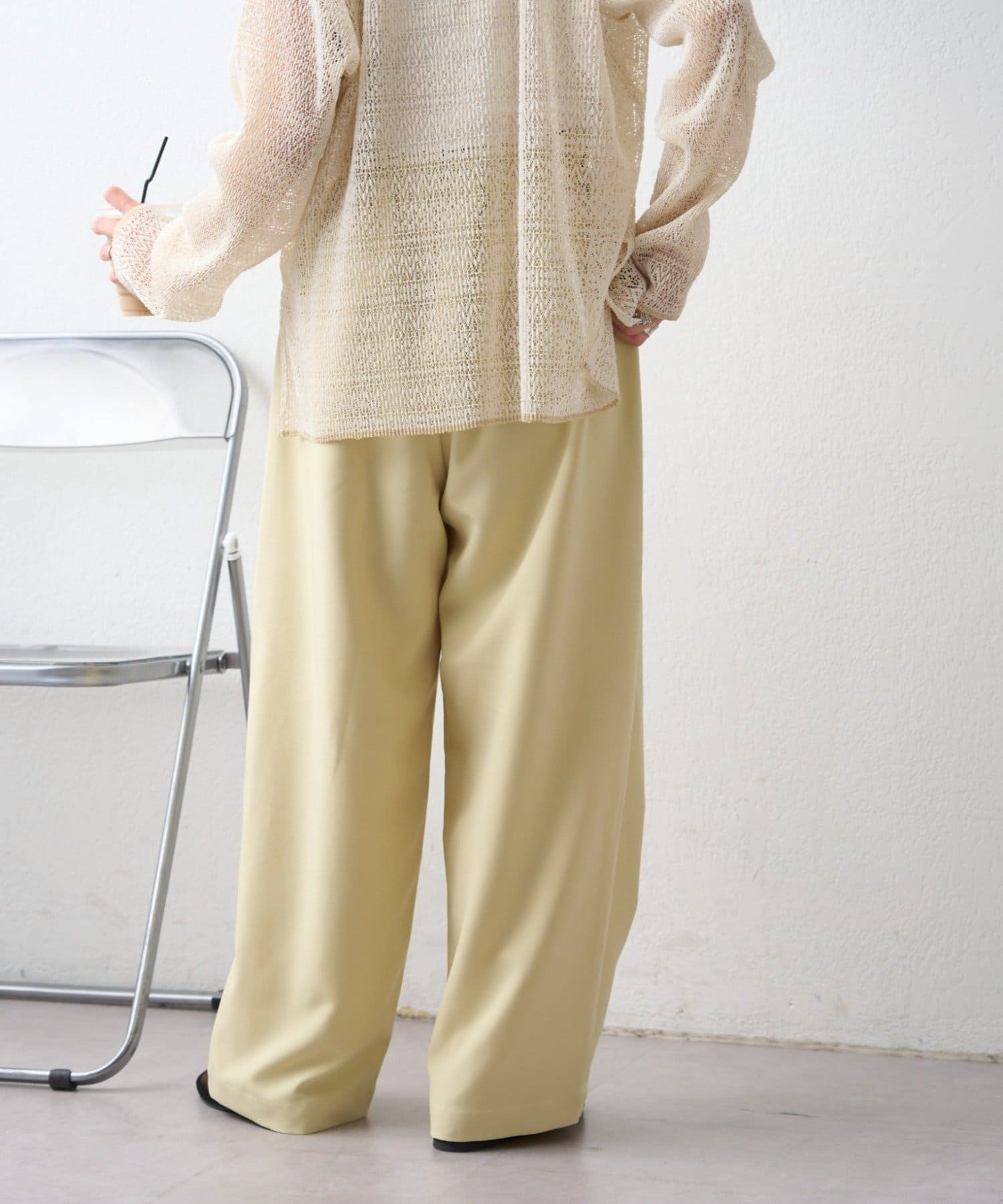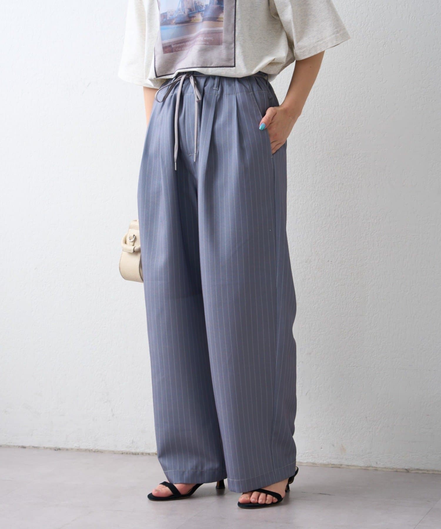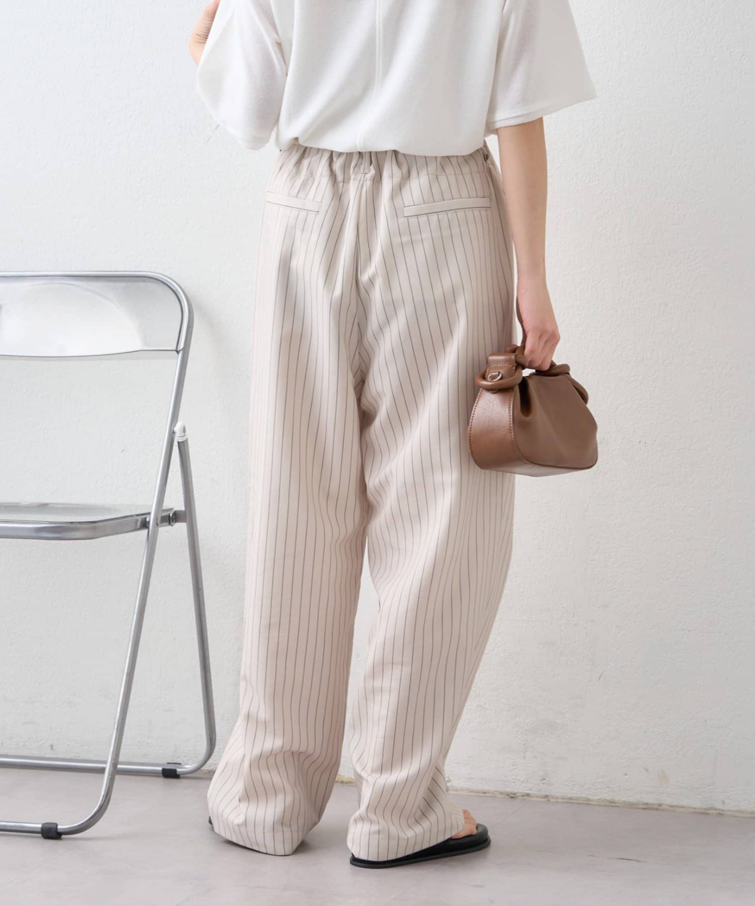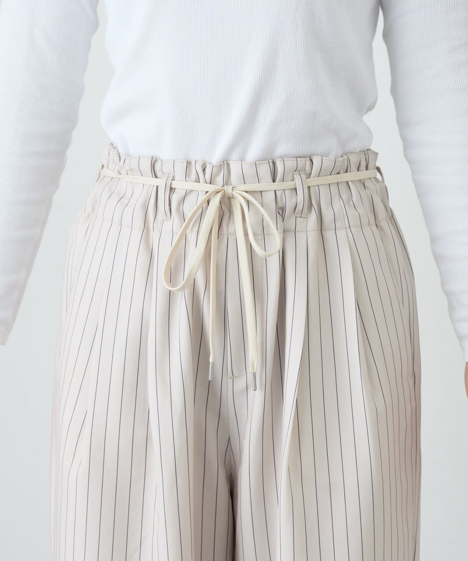 ゴム仕様のウエストで、リラックス感がありながら、ベルトループ付きなので綺麗めな気分にもマッチ。