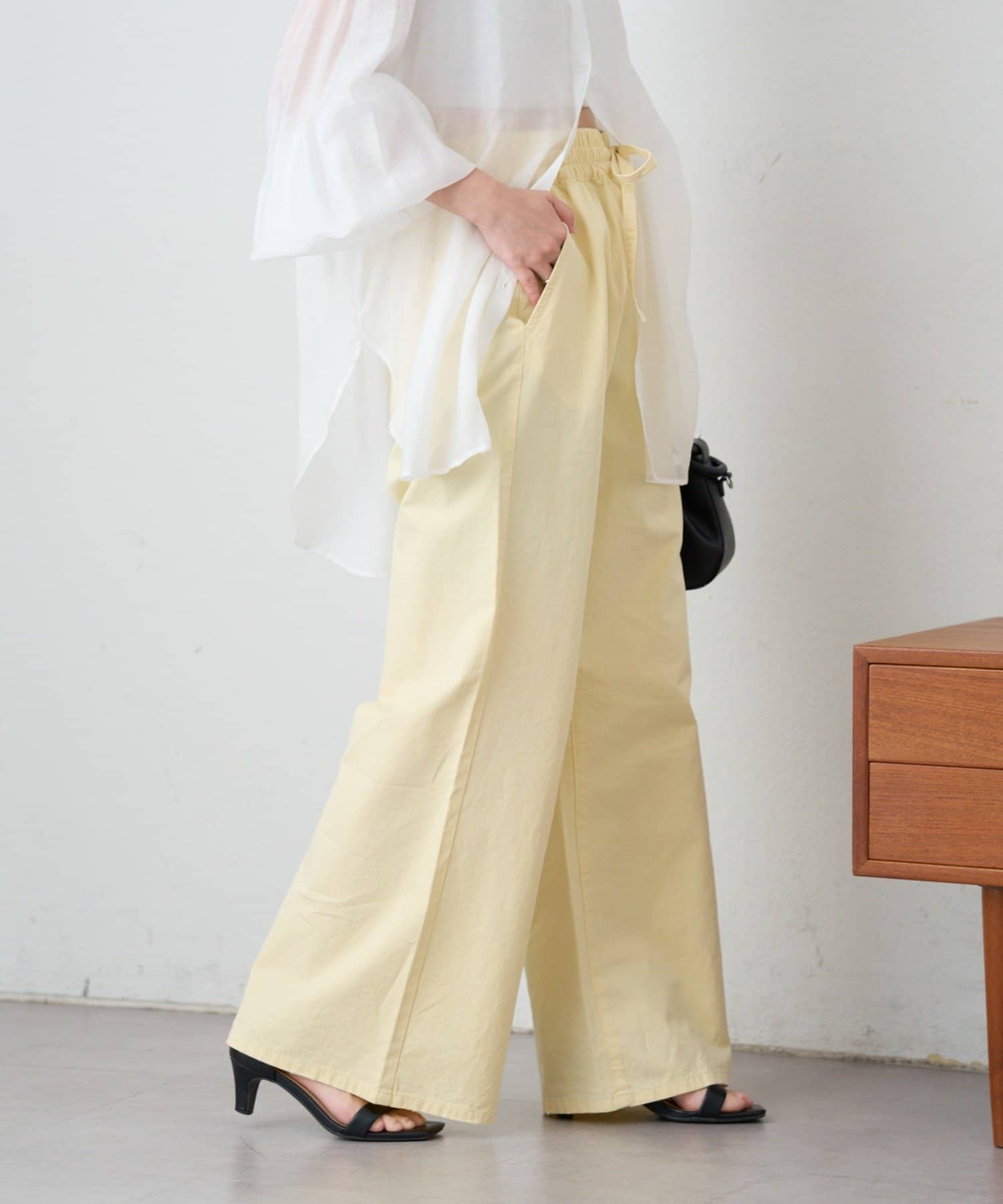 足元をスニーカーやサンダルにすればデイリーに、ミュールで女性らしさを足すのもオススメです。