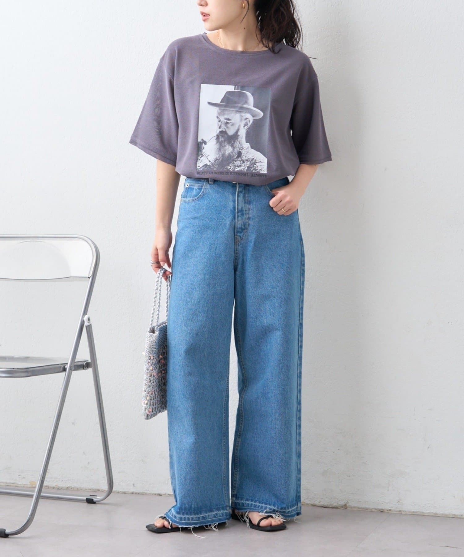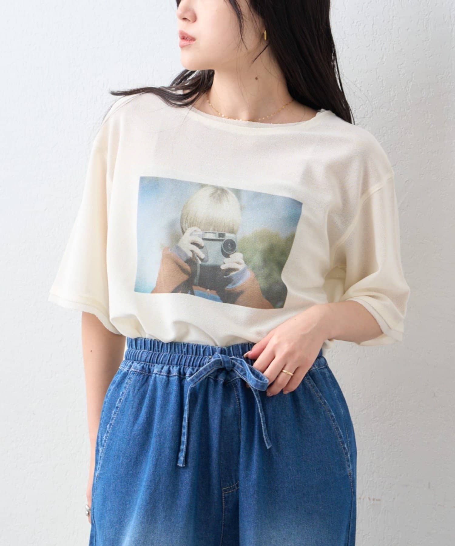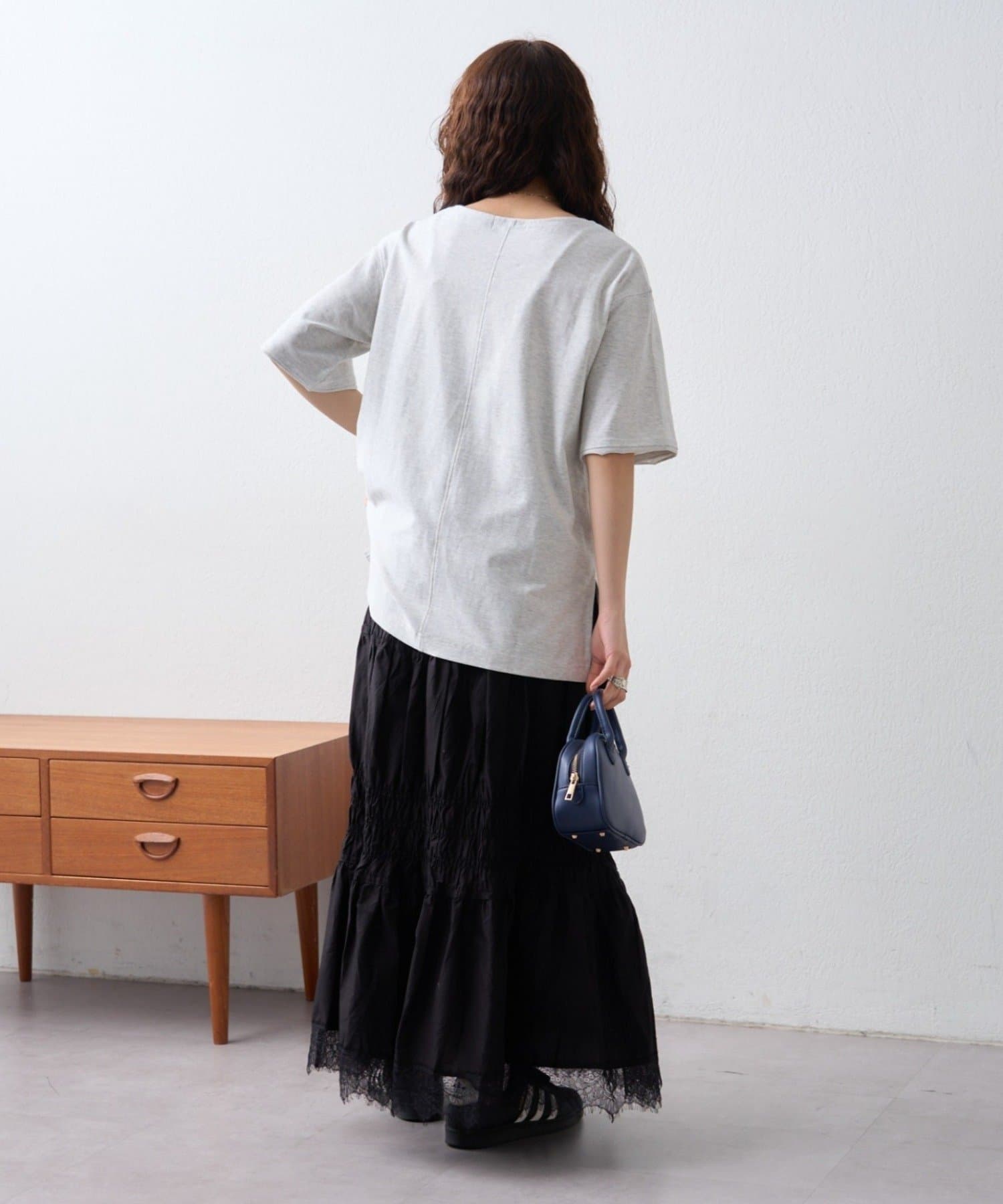 前だけタックインや袖を軽くロールアップするなどのアレンジで着回しを楽しんで欲しいTシャツ