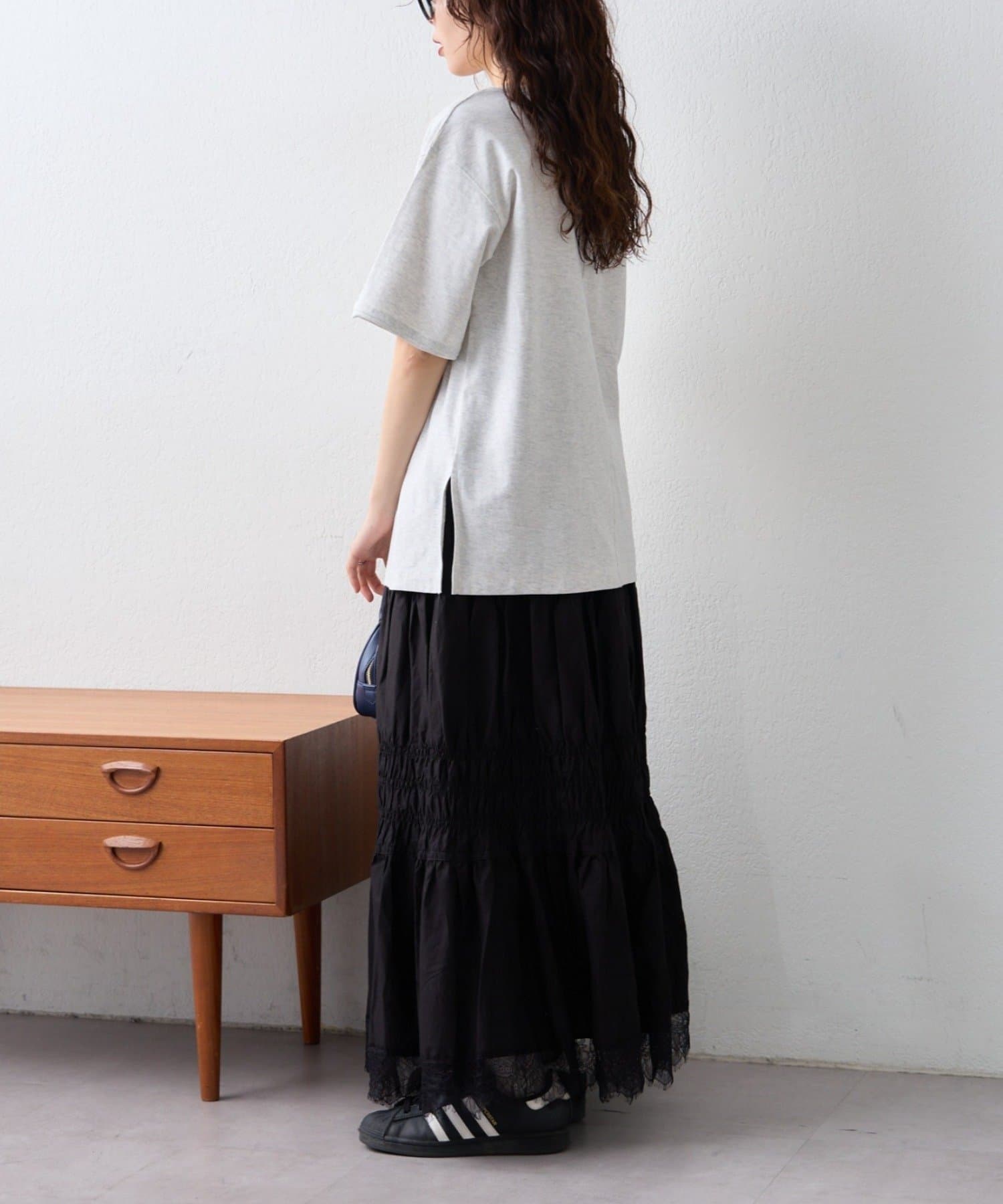 さらにサイドスリットなどディテールも加え、シンプルな中にもこなれた雰囲気をプラスしました!