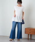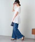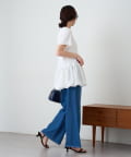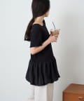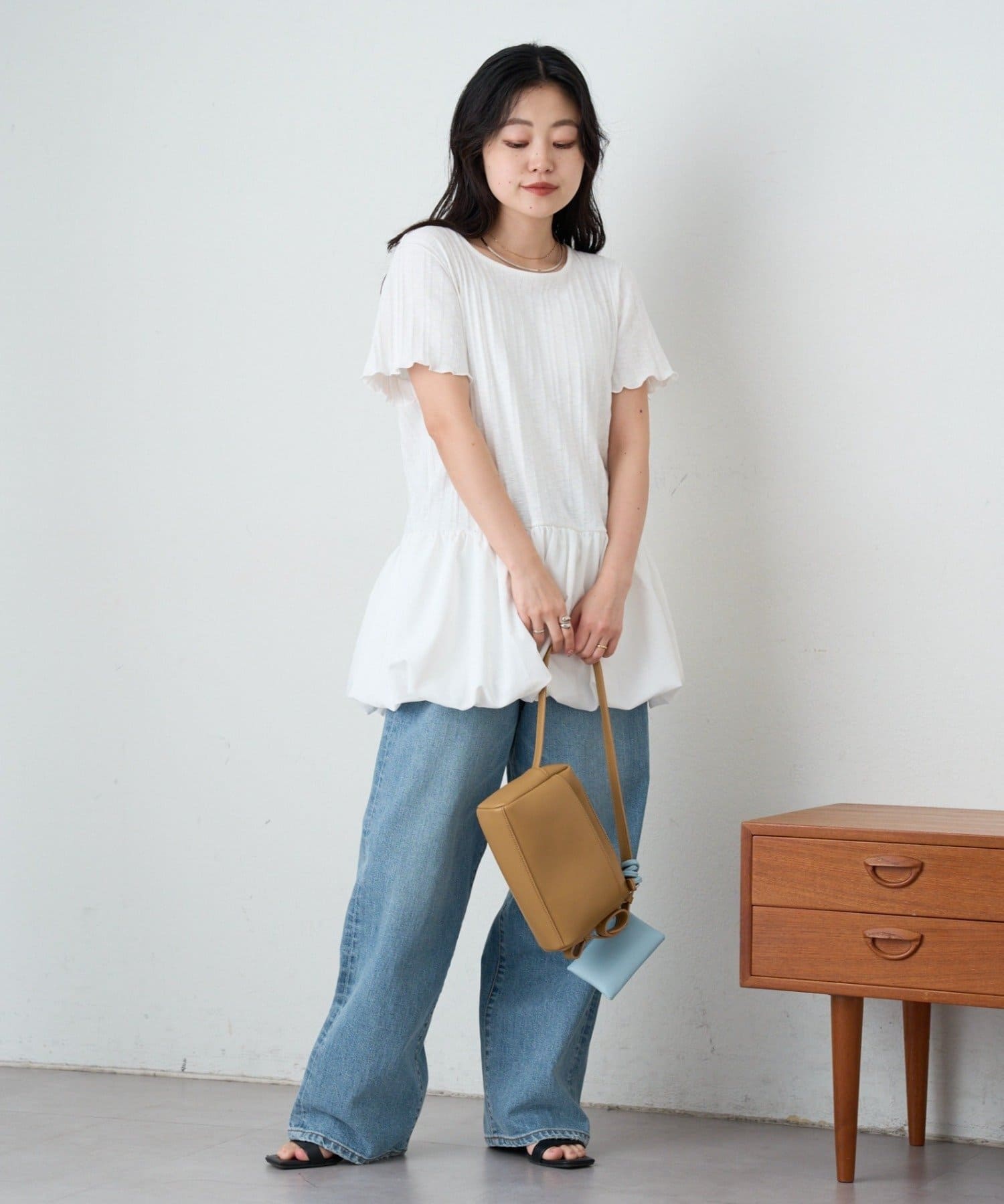 すっきりした肩周りに腰はバルーンデザインがくる為、春夏の体型カバーにも最適。