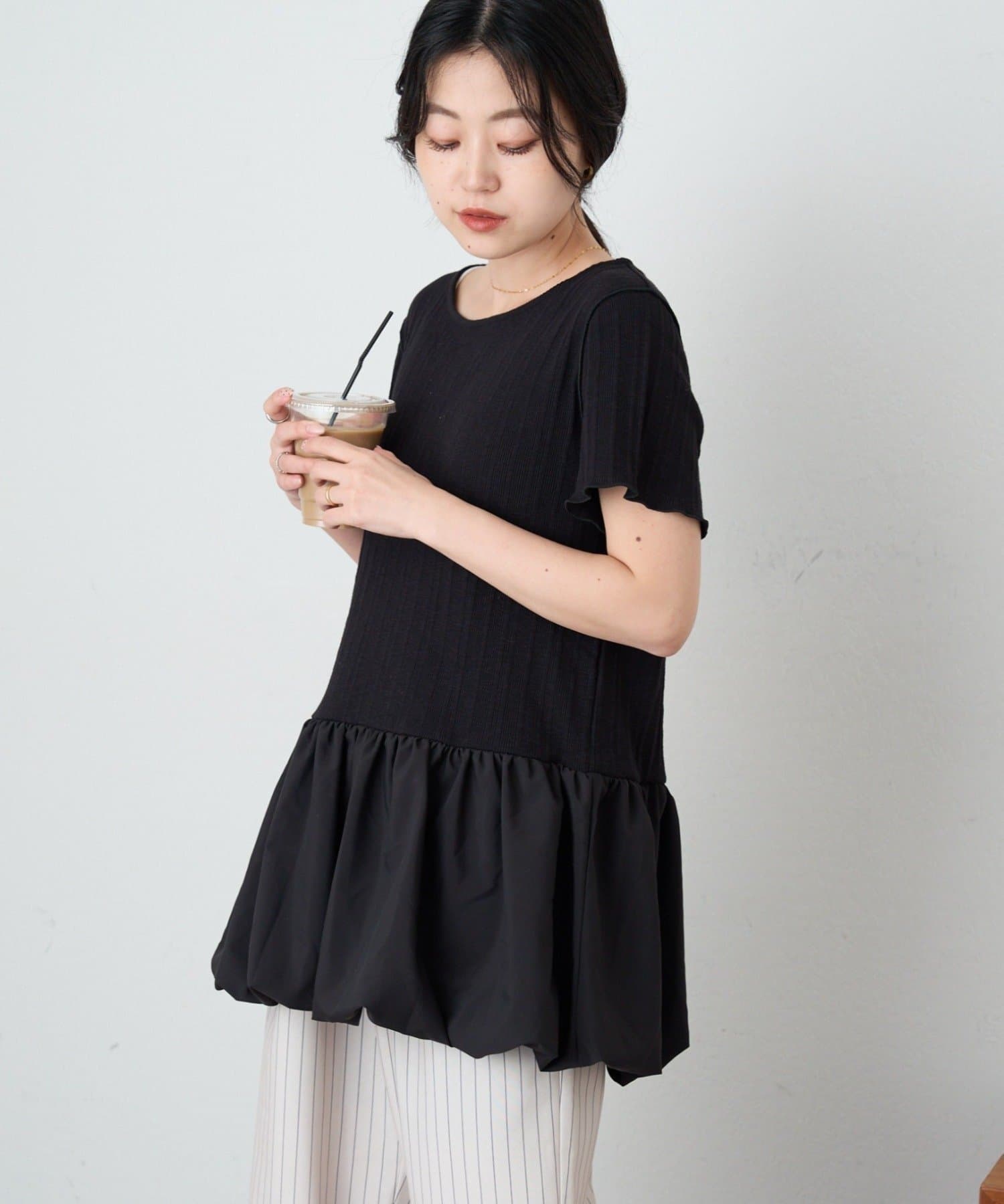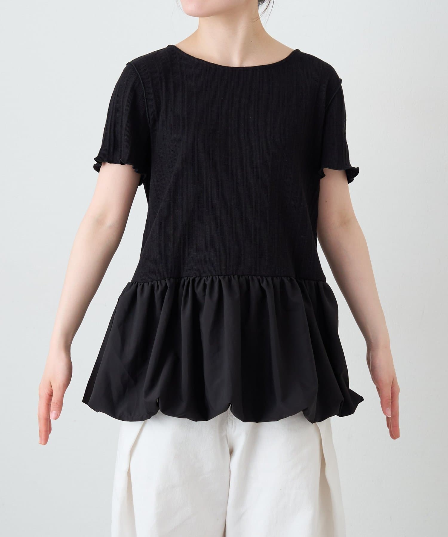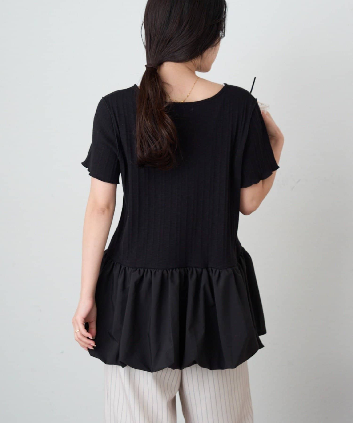 TOP > CIAOPANIC TYPY > レディース > トップス > Tシャツ/カットソー > 裾バルーンランダムリブ半袖トップス