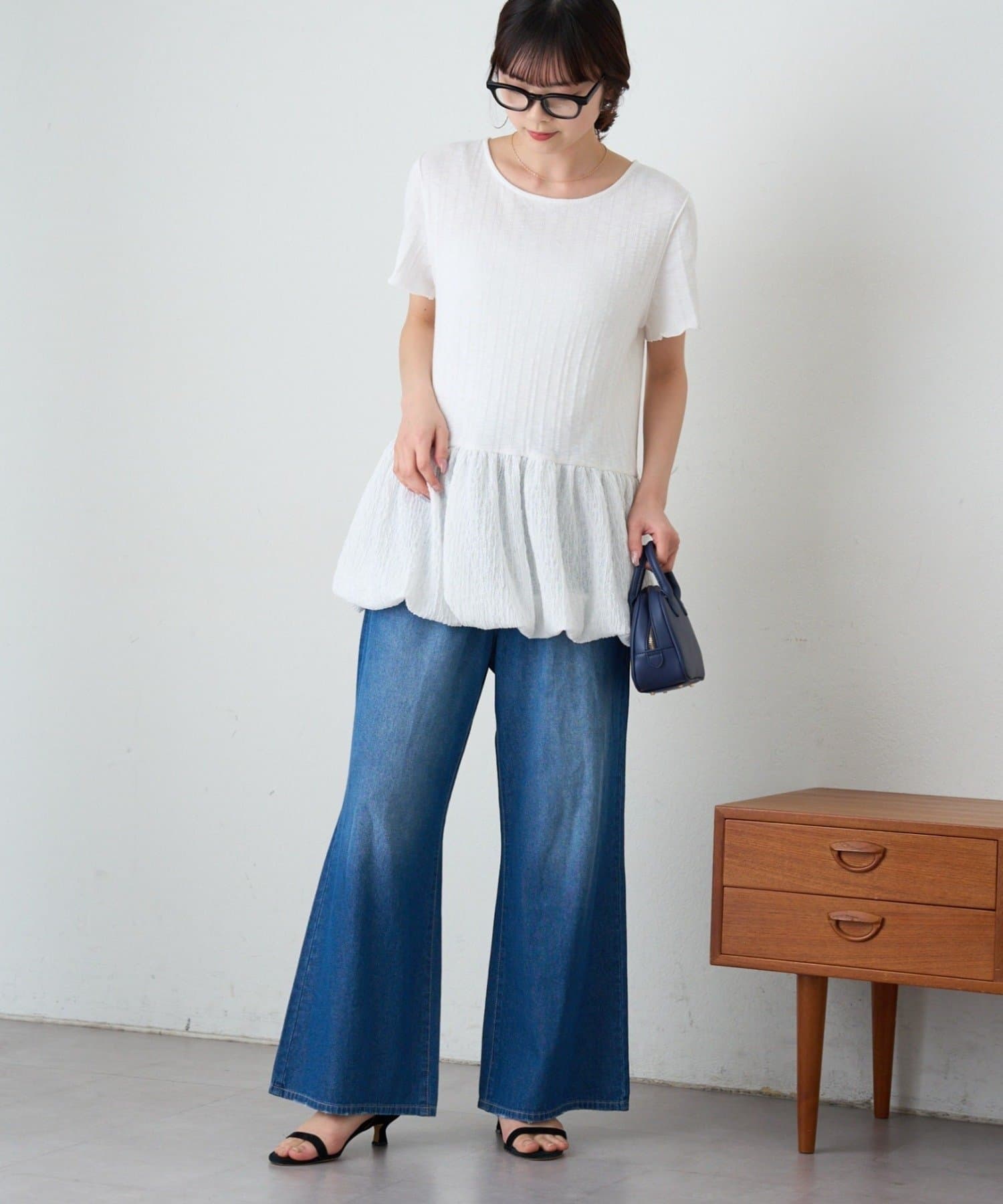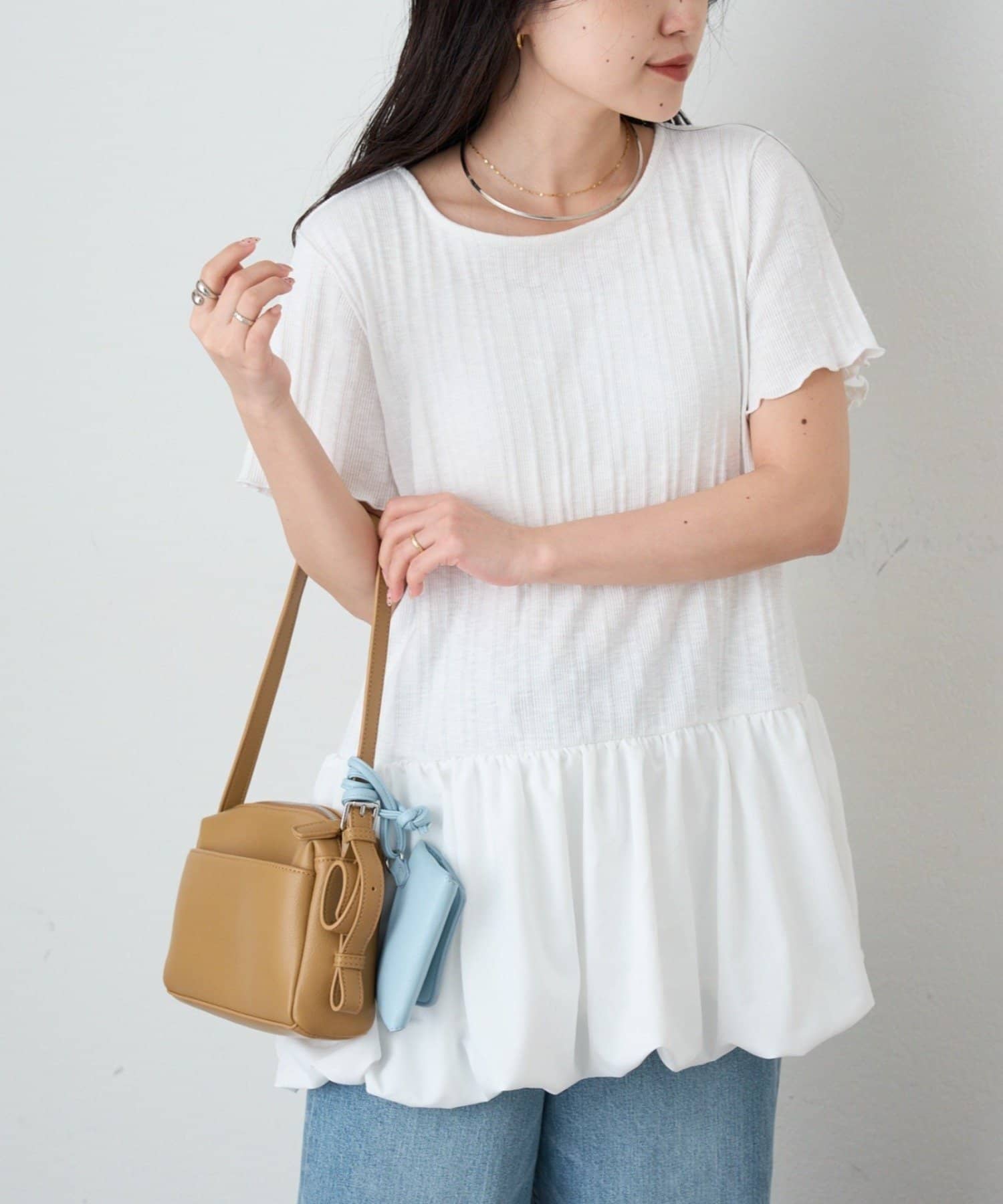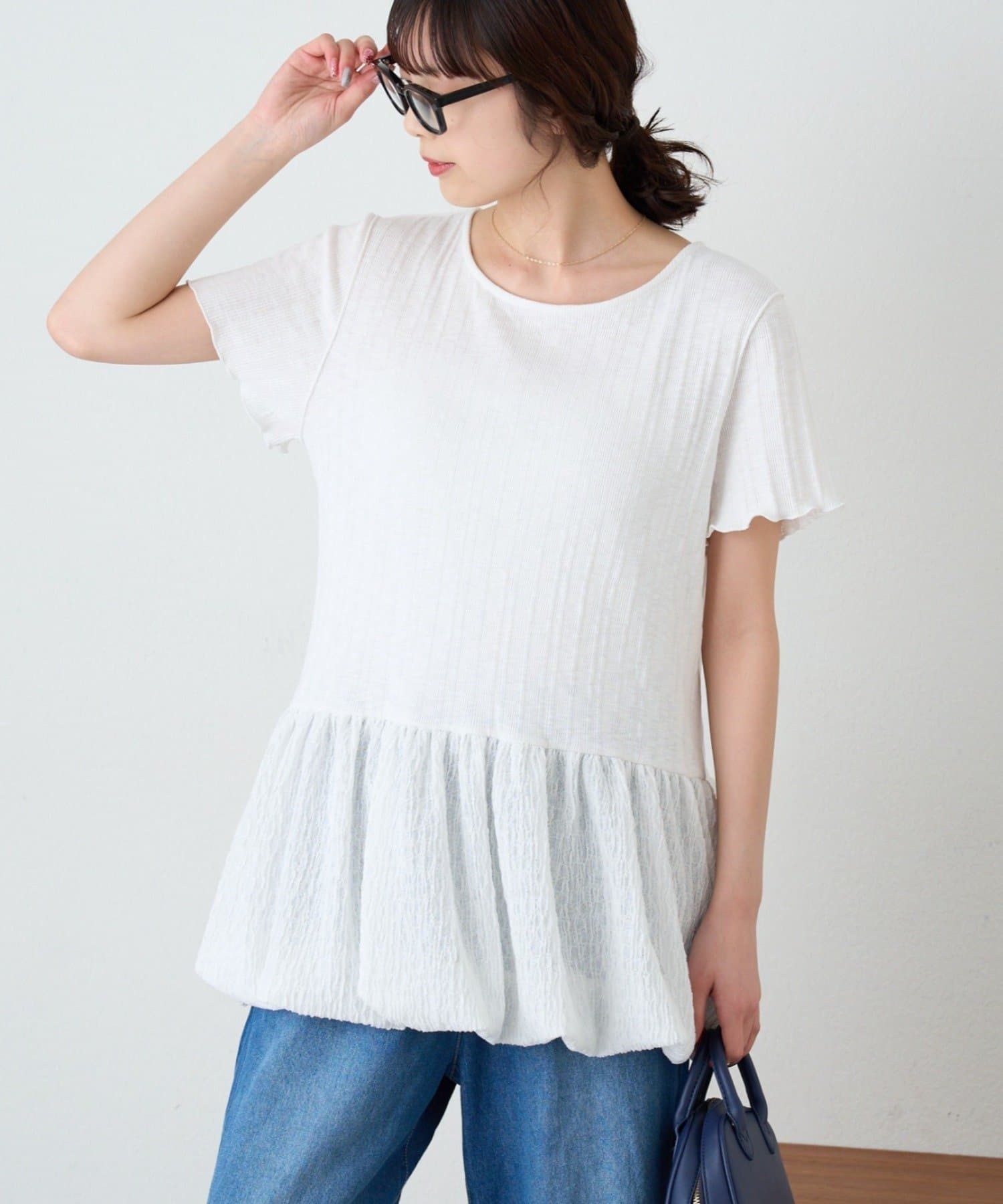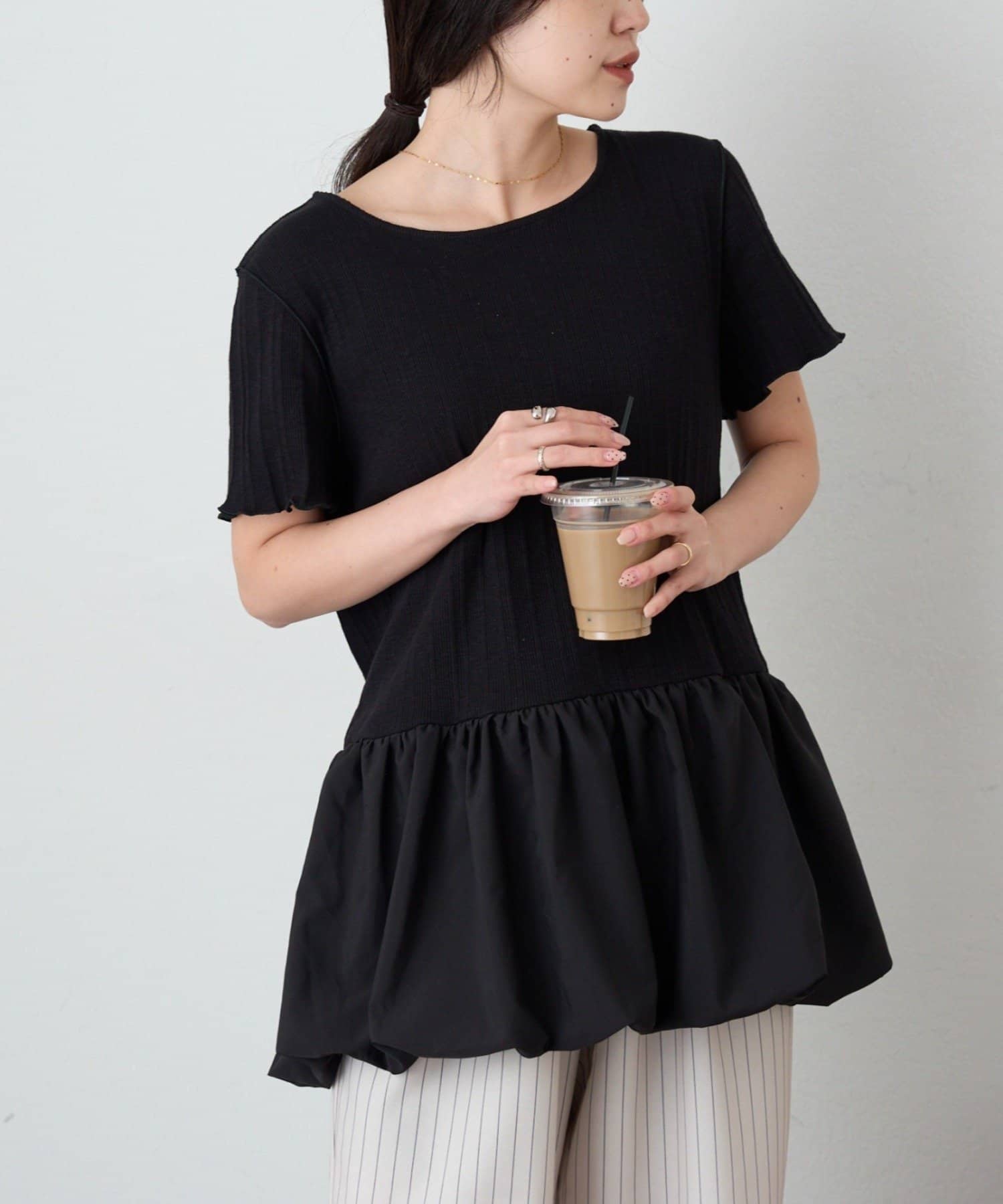 TOP > CIAOPANIC TYPY > レディース > トップス > Tシャツ/カットソー > 裾バルーンランダムリブ半袖トップス