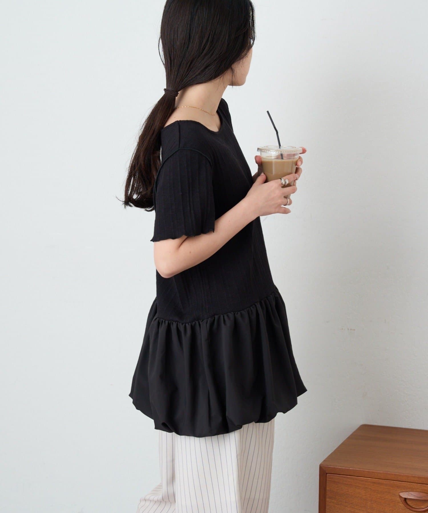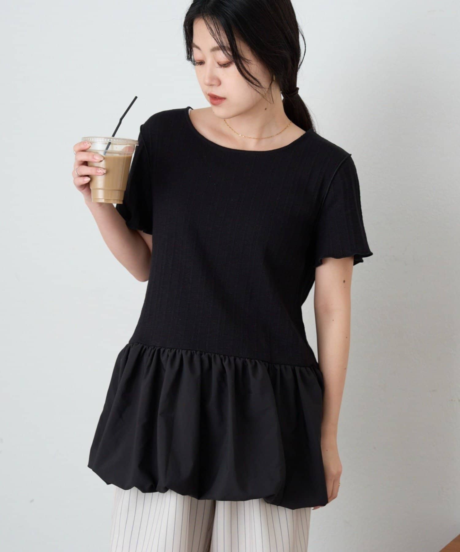 CIAOPANIC TYPY(チャオパニックティピー) 裾バルーンランダムリブ半袖トップス