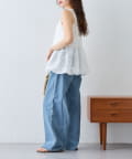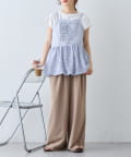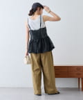バストの後ろはギャザーにしているため、窮屈感なく幅広いトップスとのレイヤードにフィット。