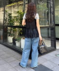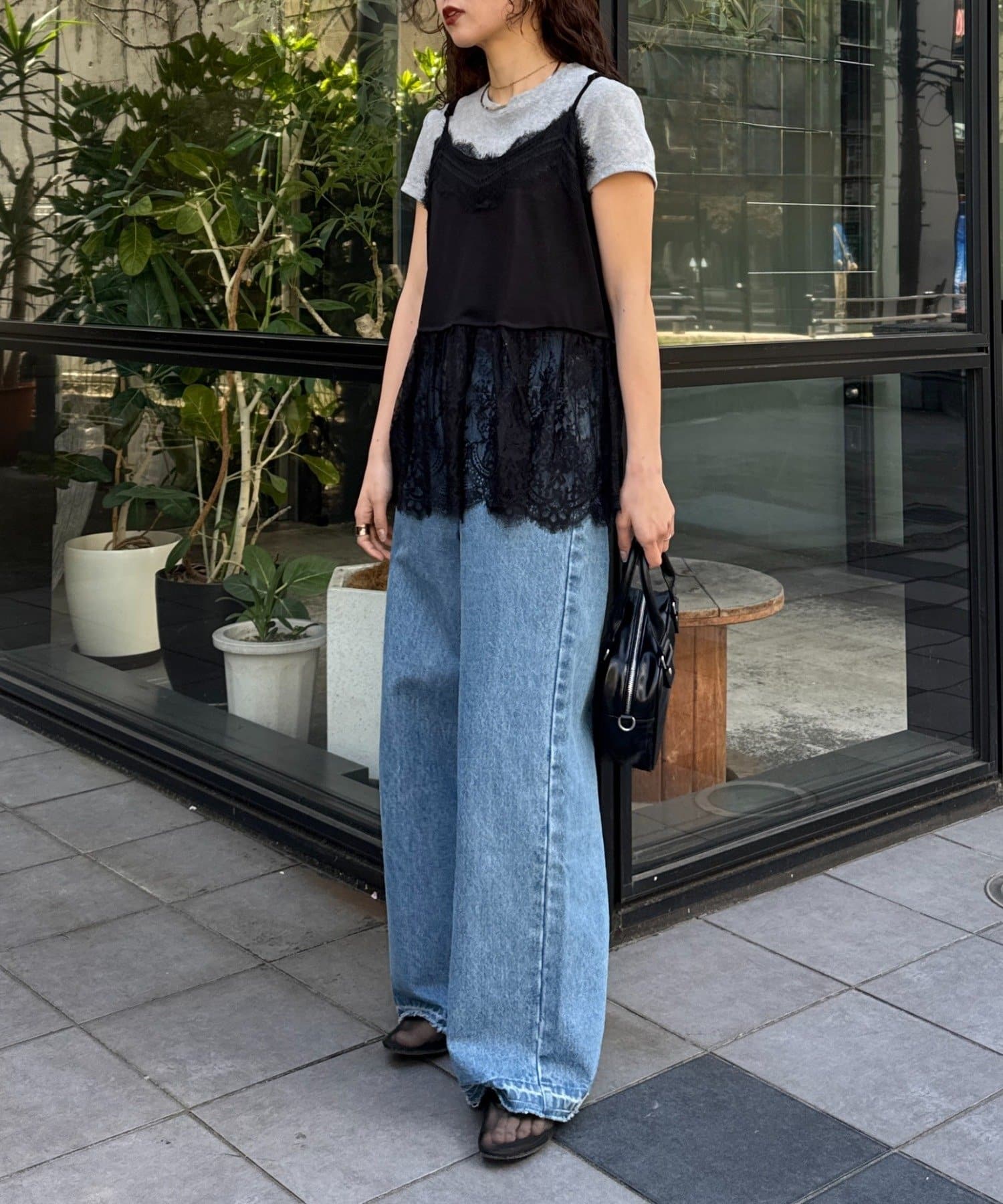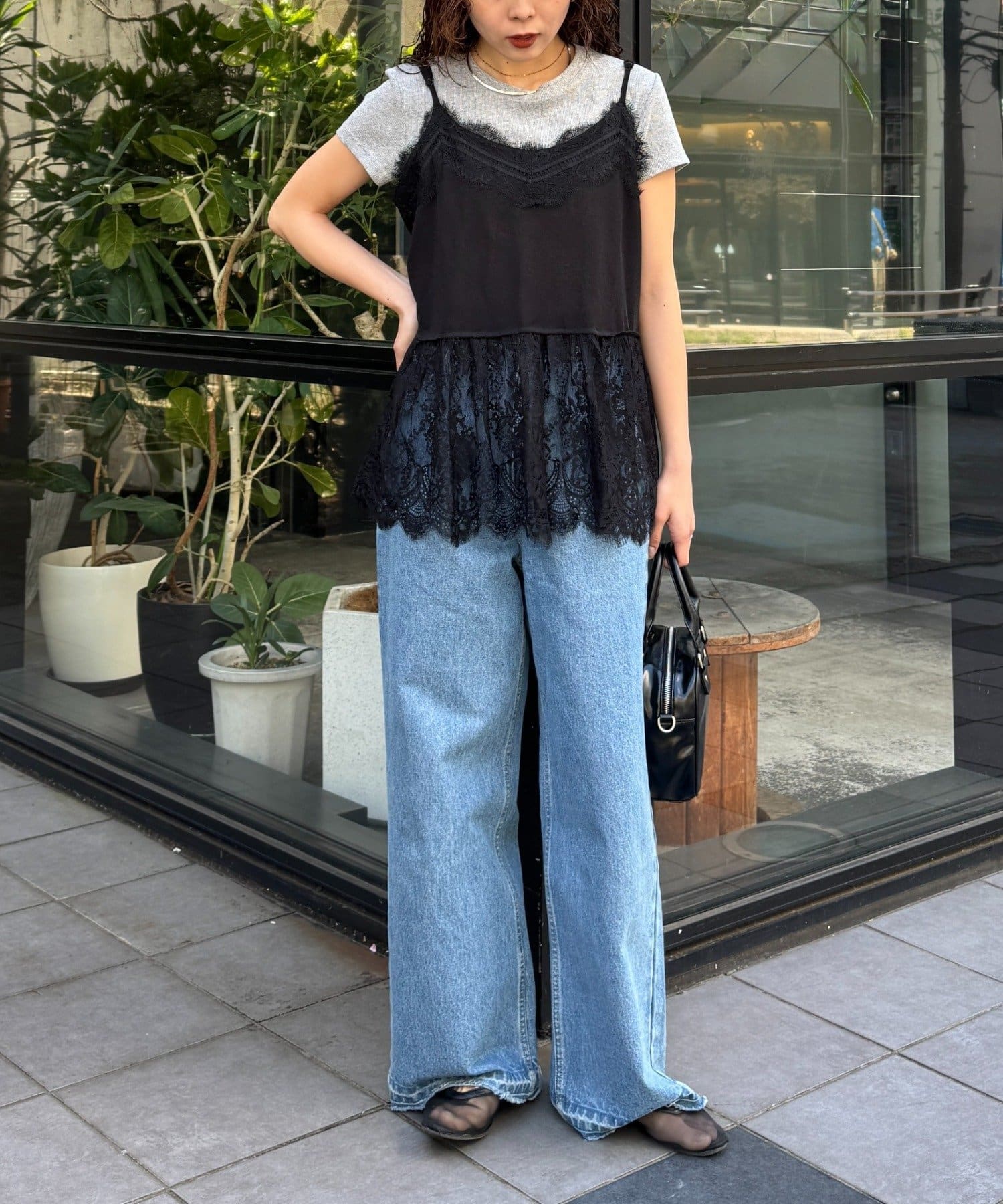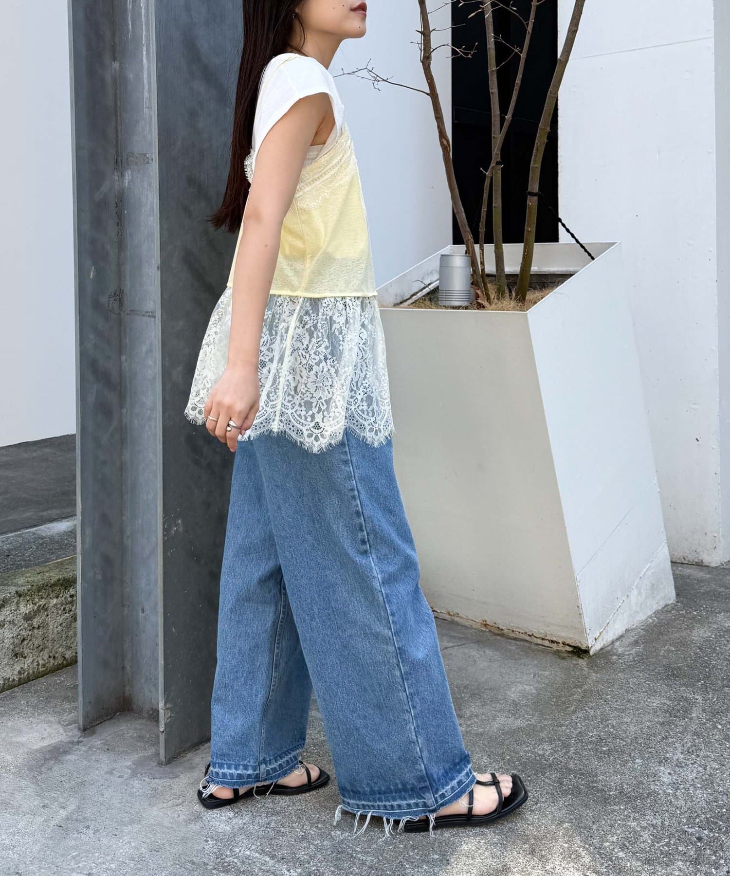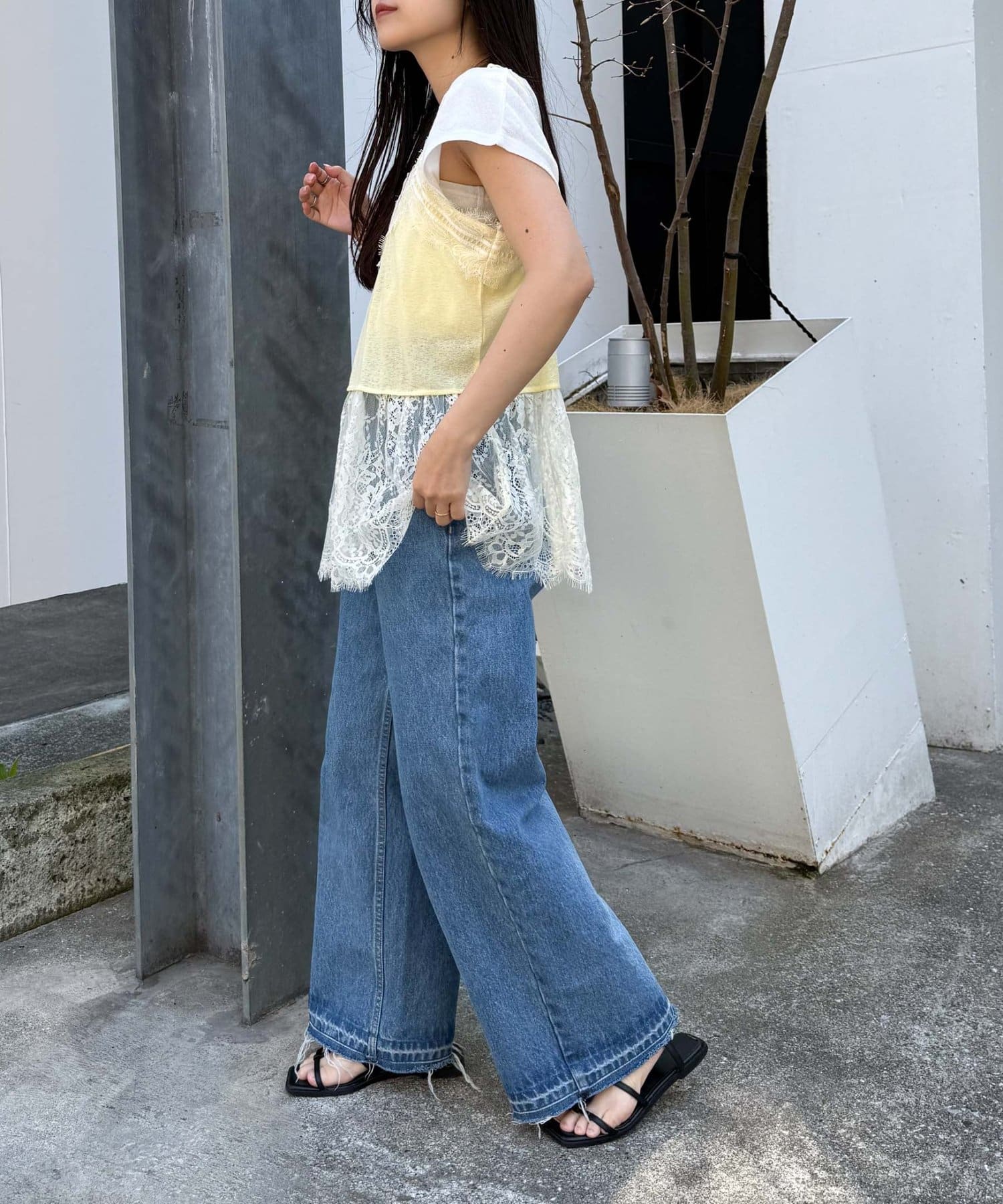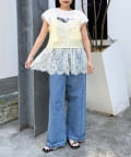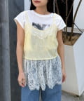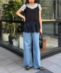 上半身はさらっとした軽やかな素材、下は透け感のあるレースに切り替えたデザイン!