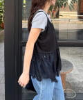 シアーなレース切り替えで、腰回りをカバーしつつウエストラインを主張できます。