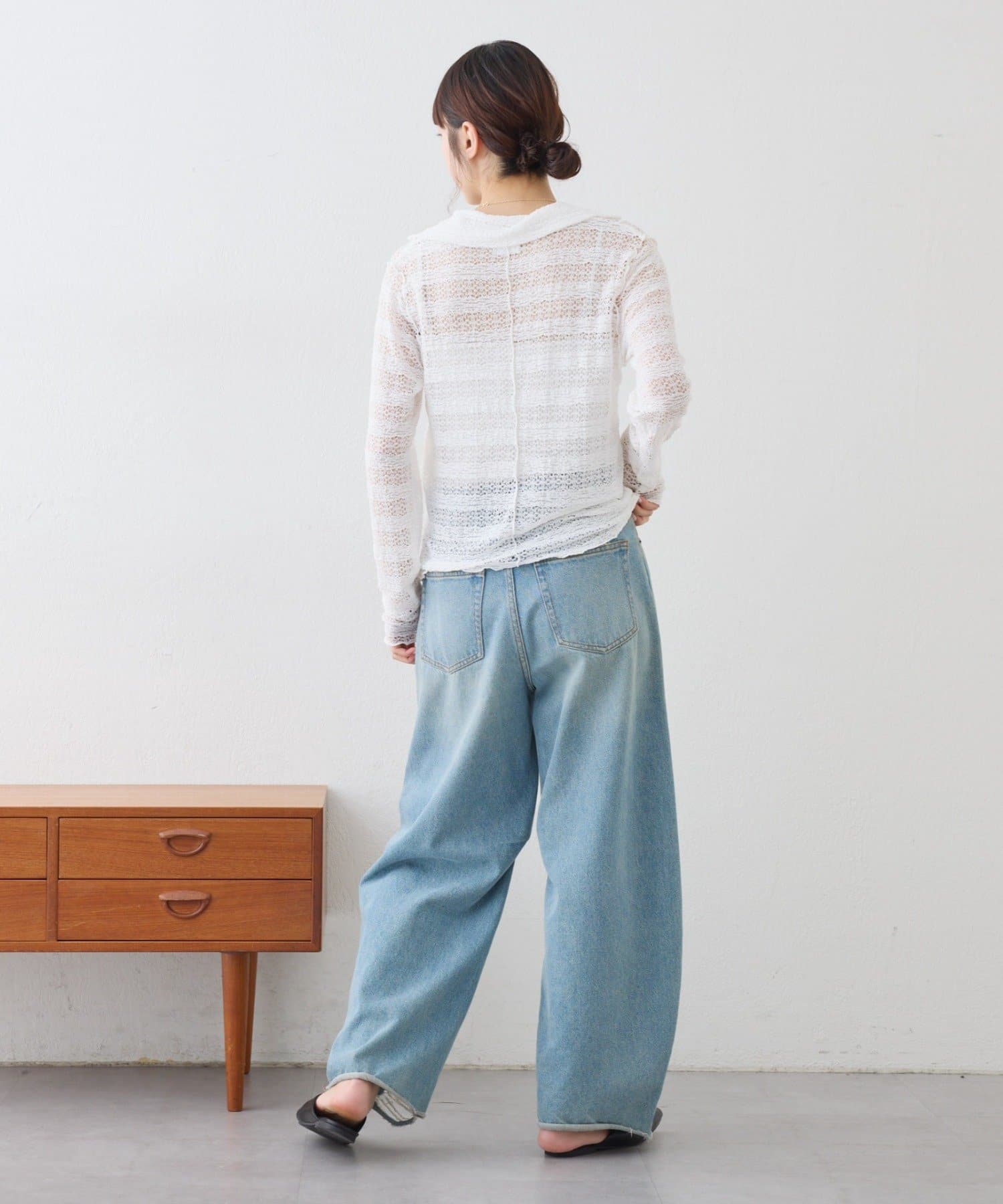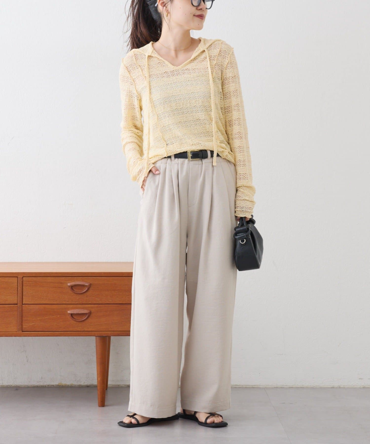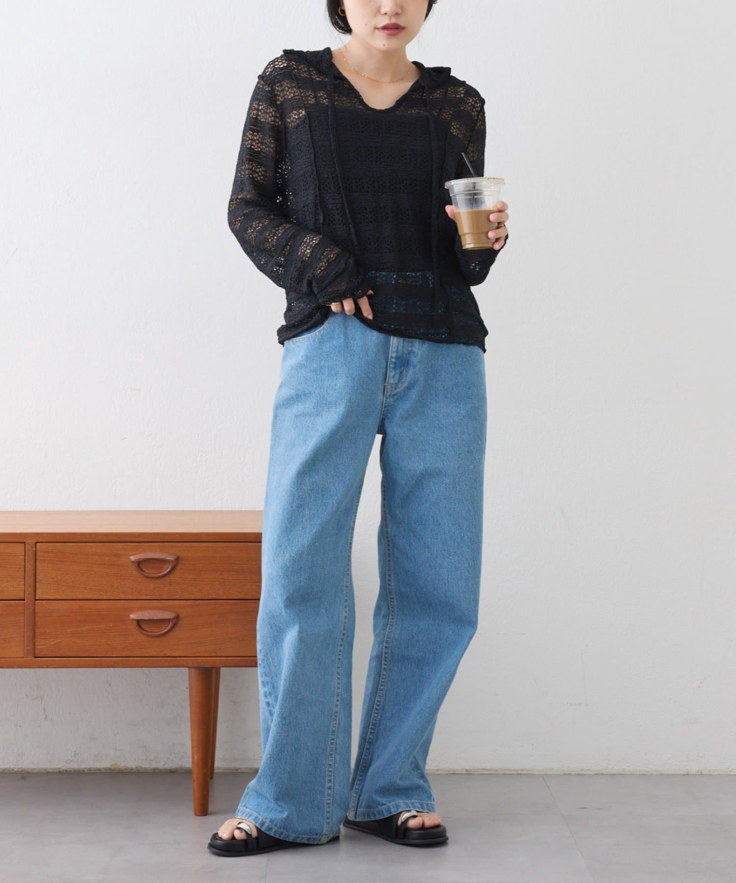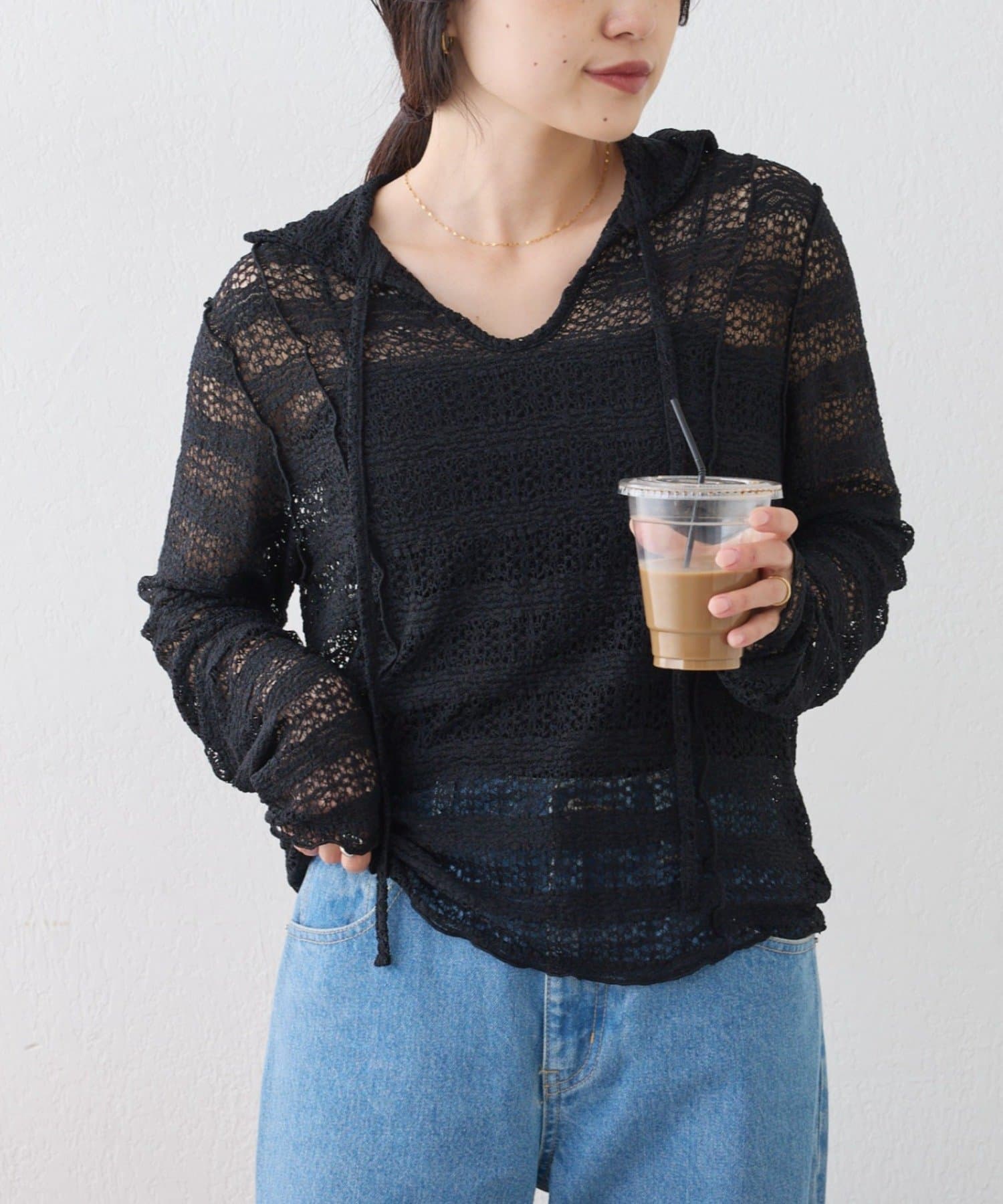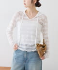 透け感のあるレーストップスは、タンクトップやキャミソールに重ねるだけで軽やかなレイヤードスタイルが完成。