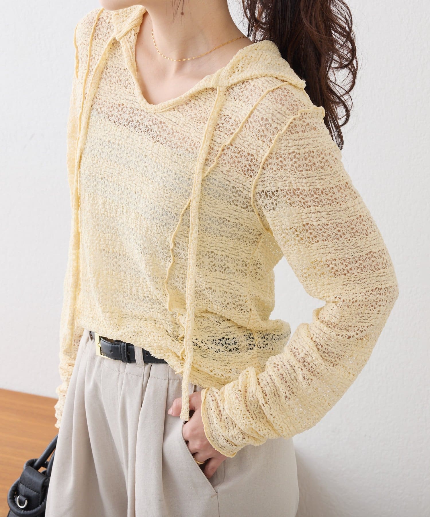 透け感のあるレース素材は軽やかで、インナーとのレイヤードを楽しめるのも魅力。