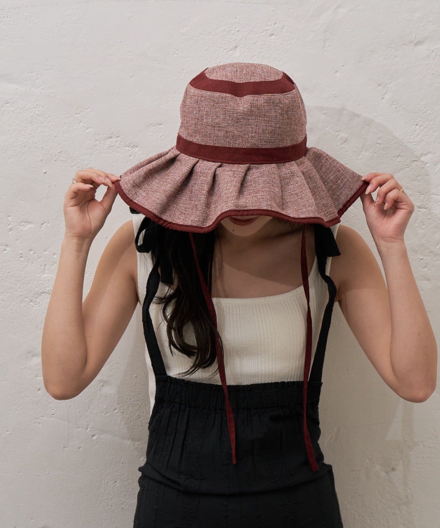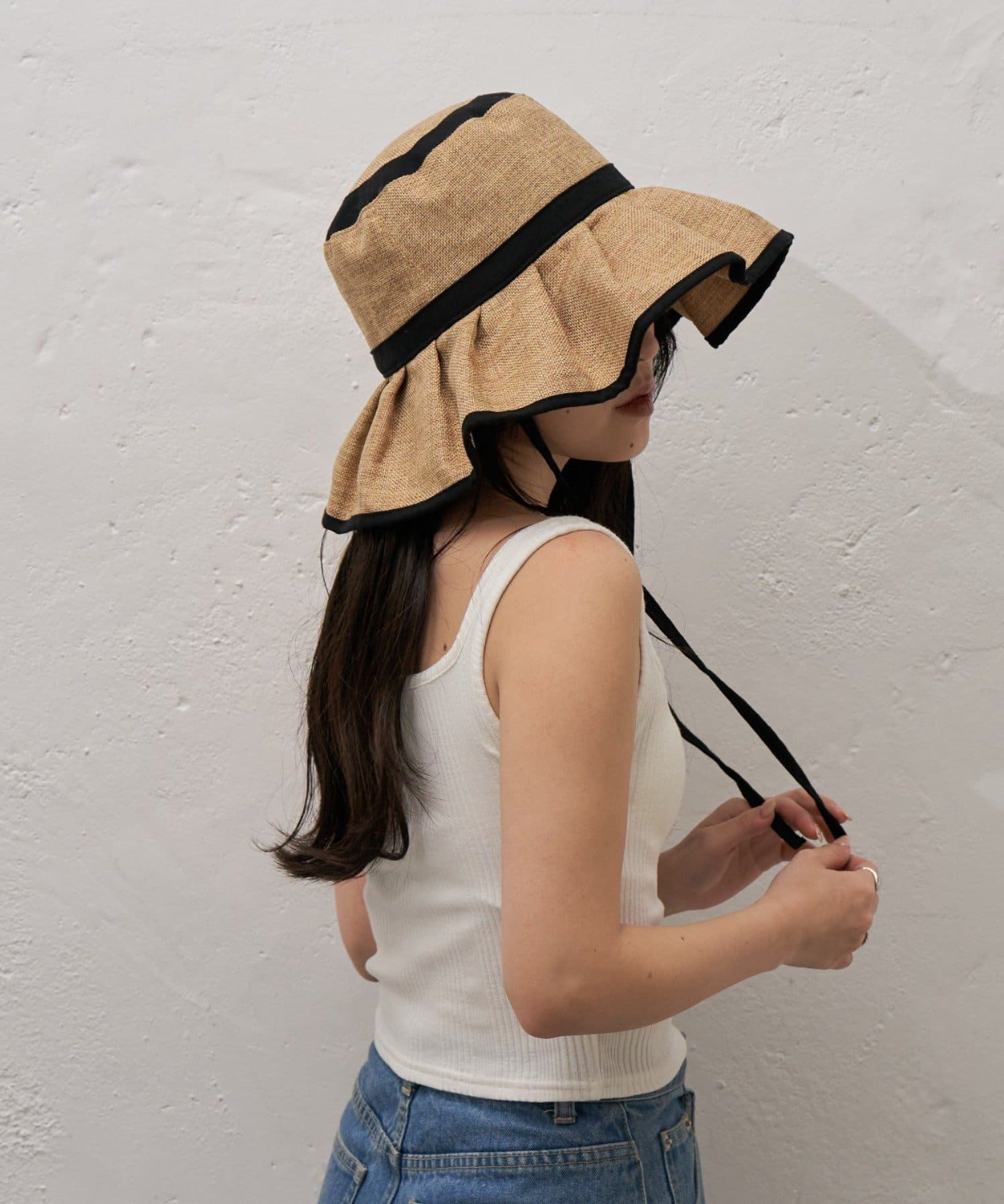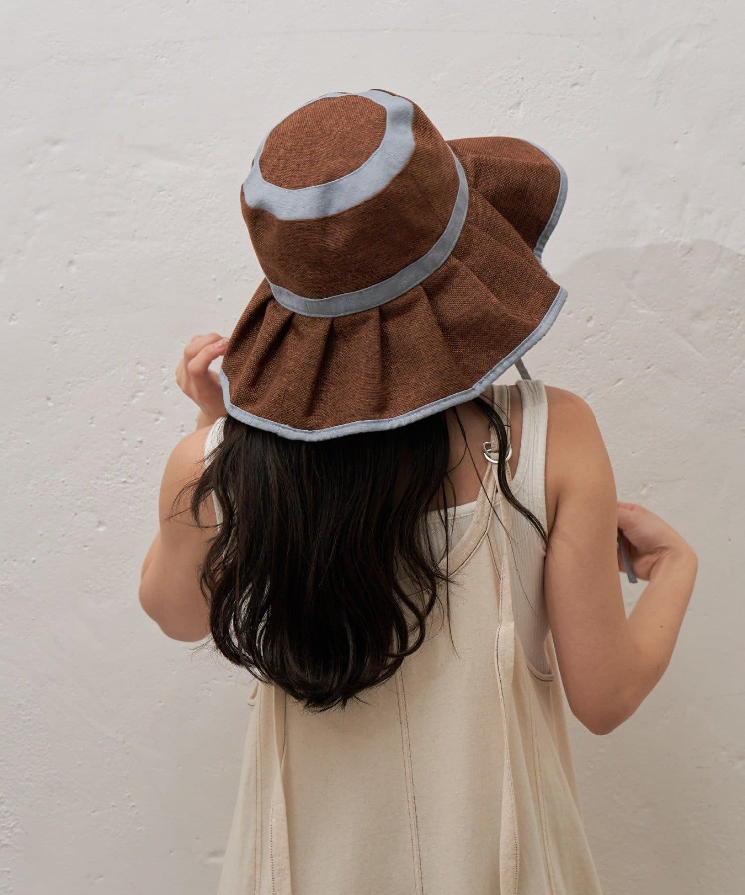 :【UV対応】柔らか配色たためるジュートフリルハット