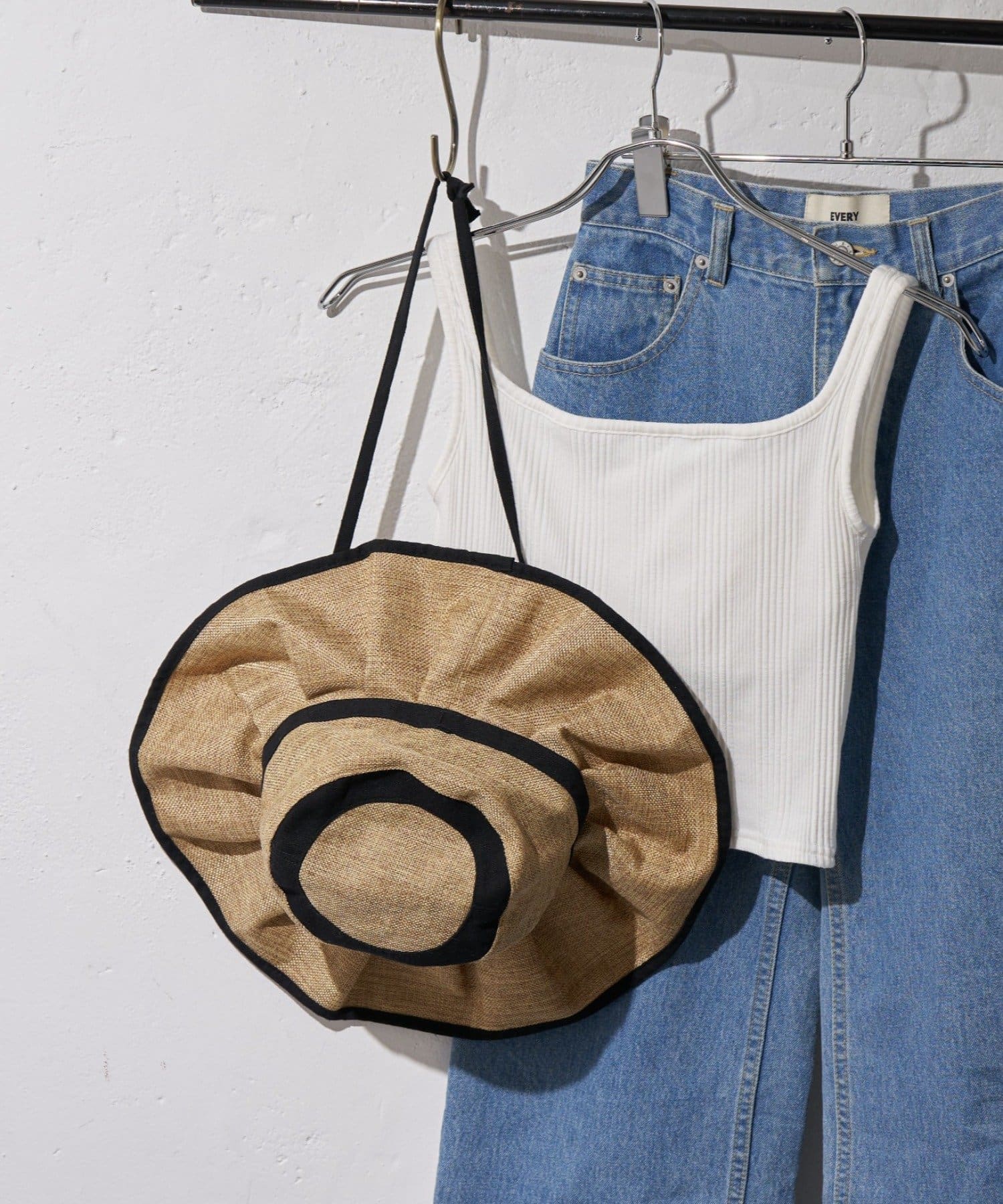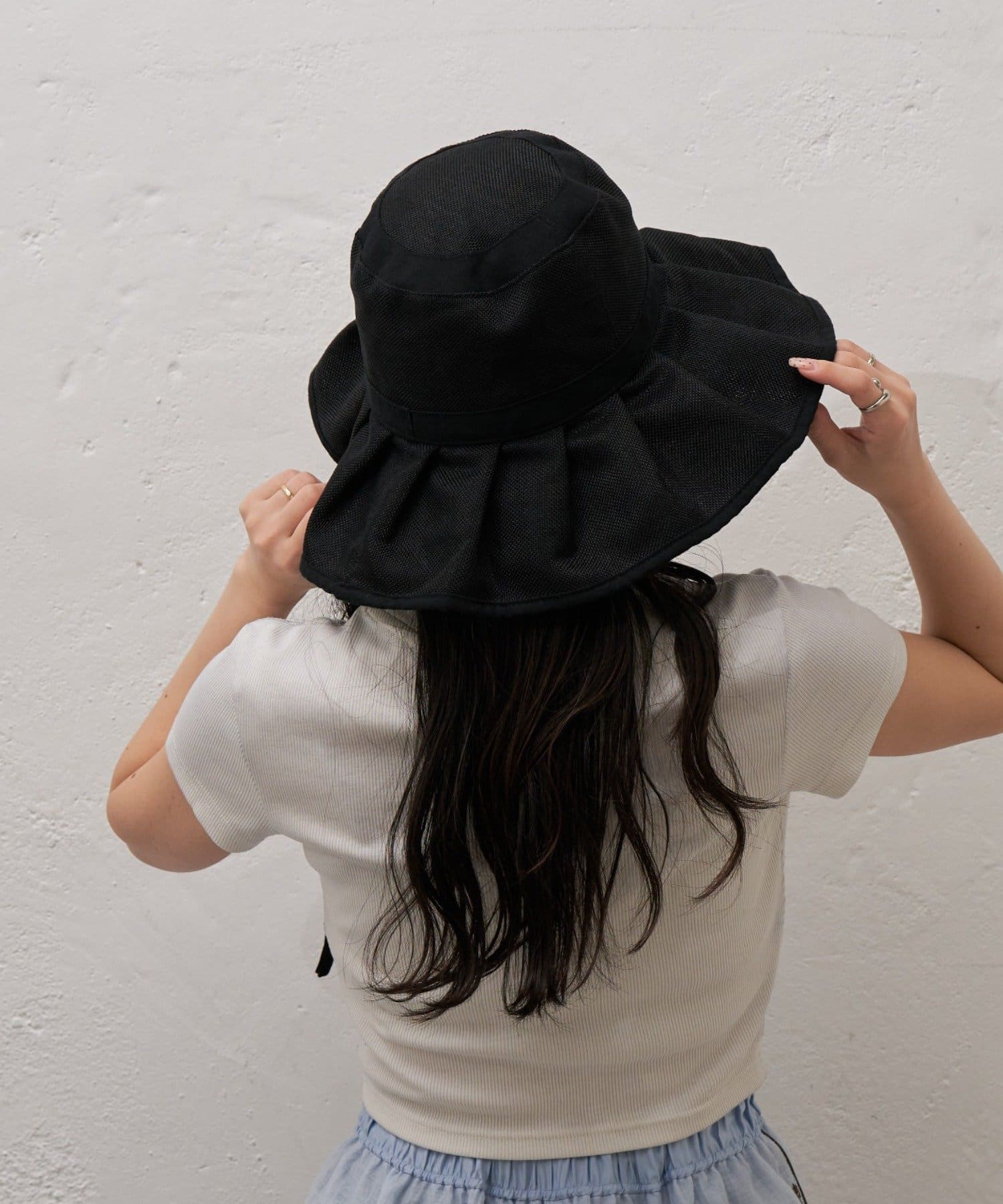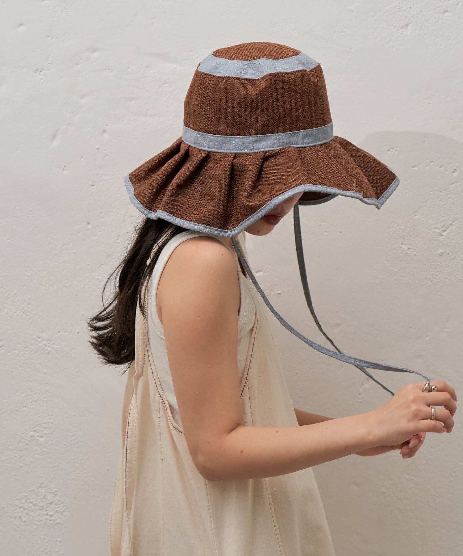 :【UV対応】柔らか配色たためるジュートフリルハット
