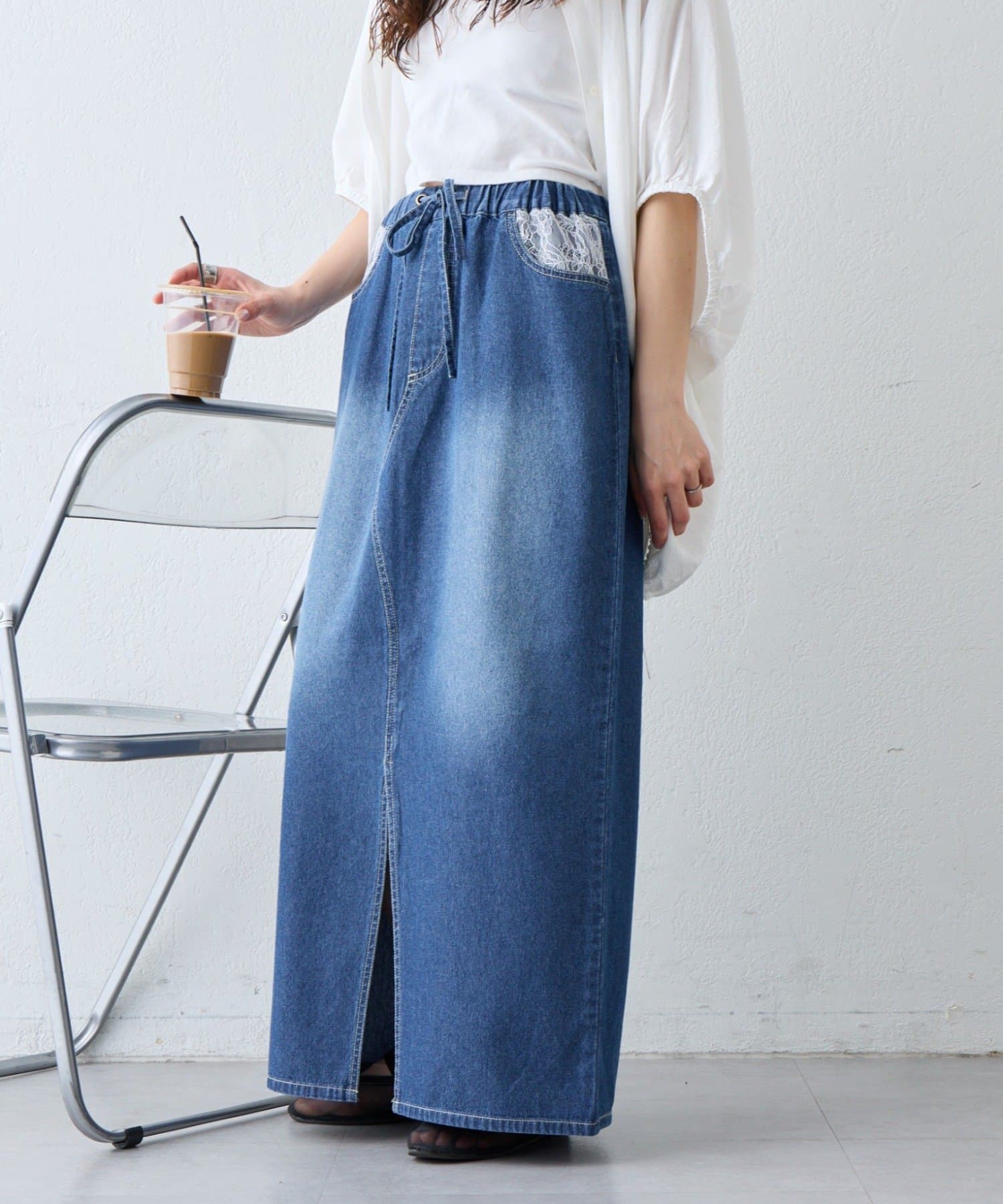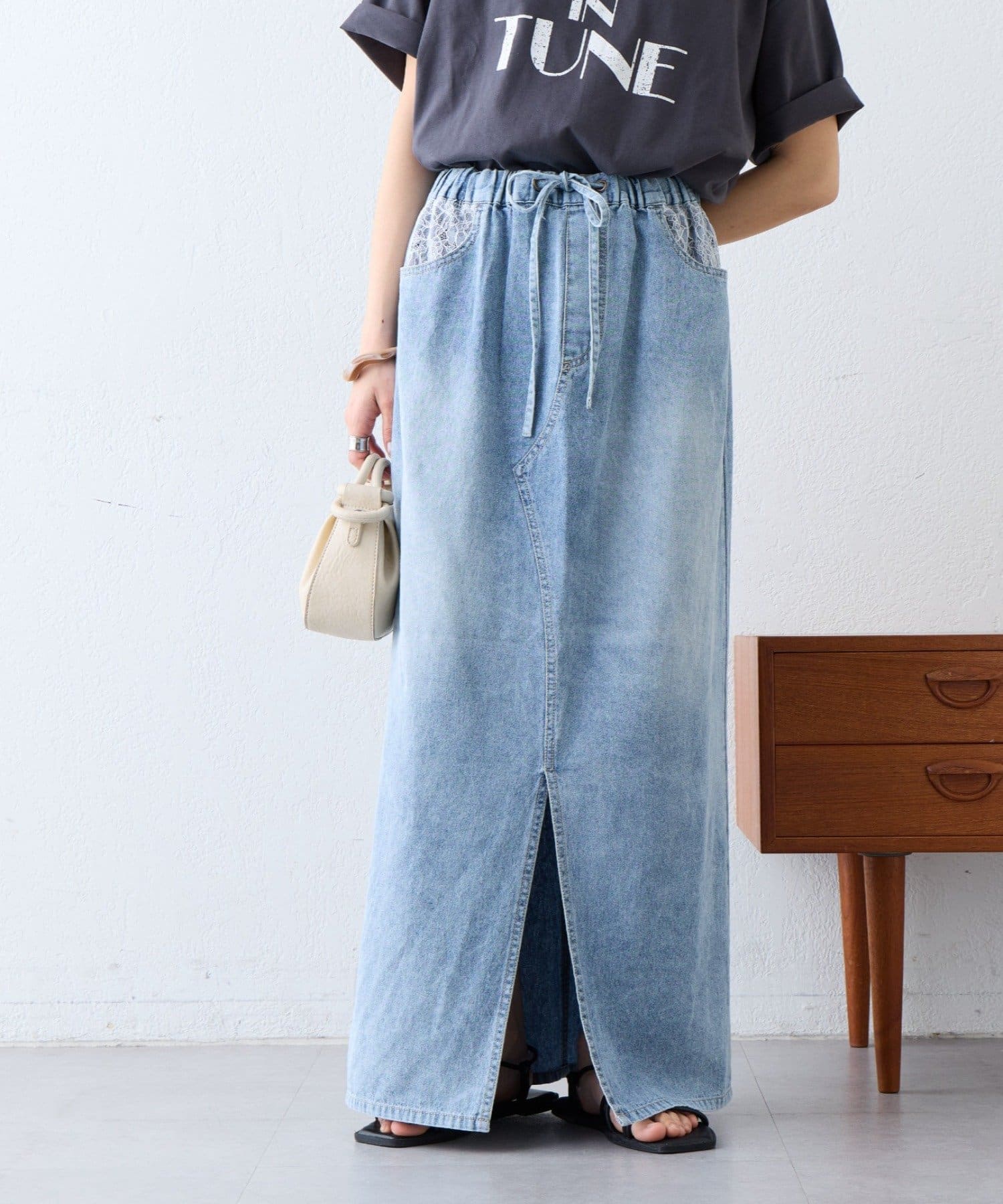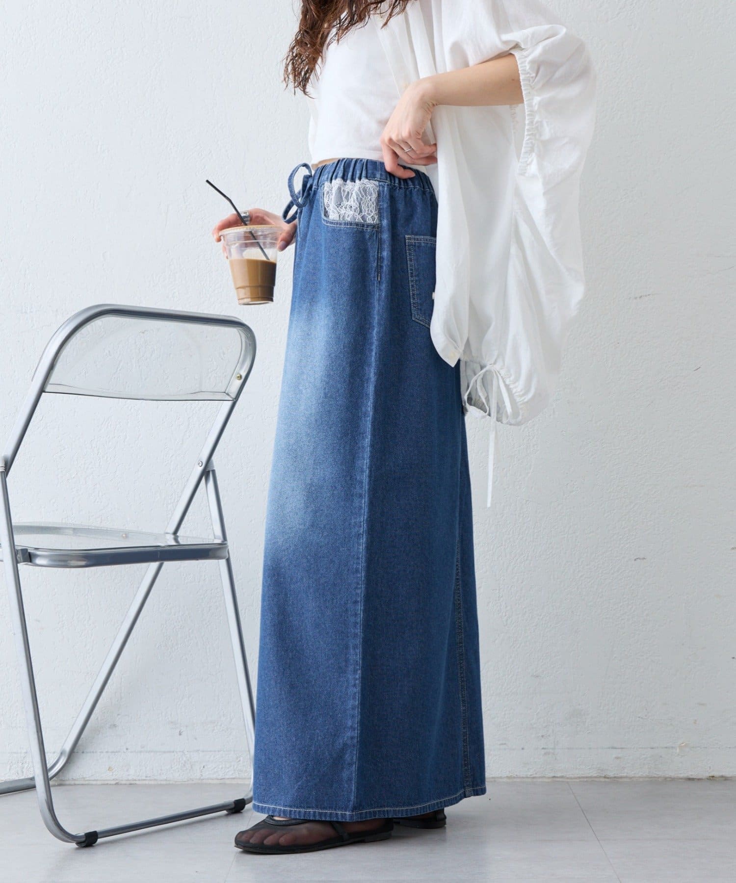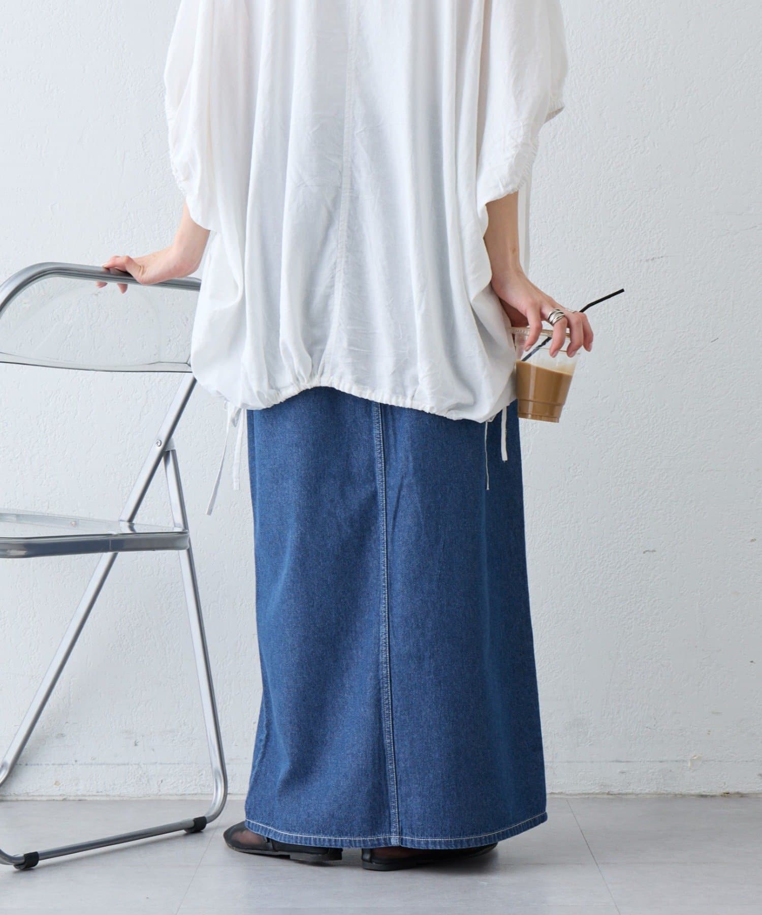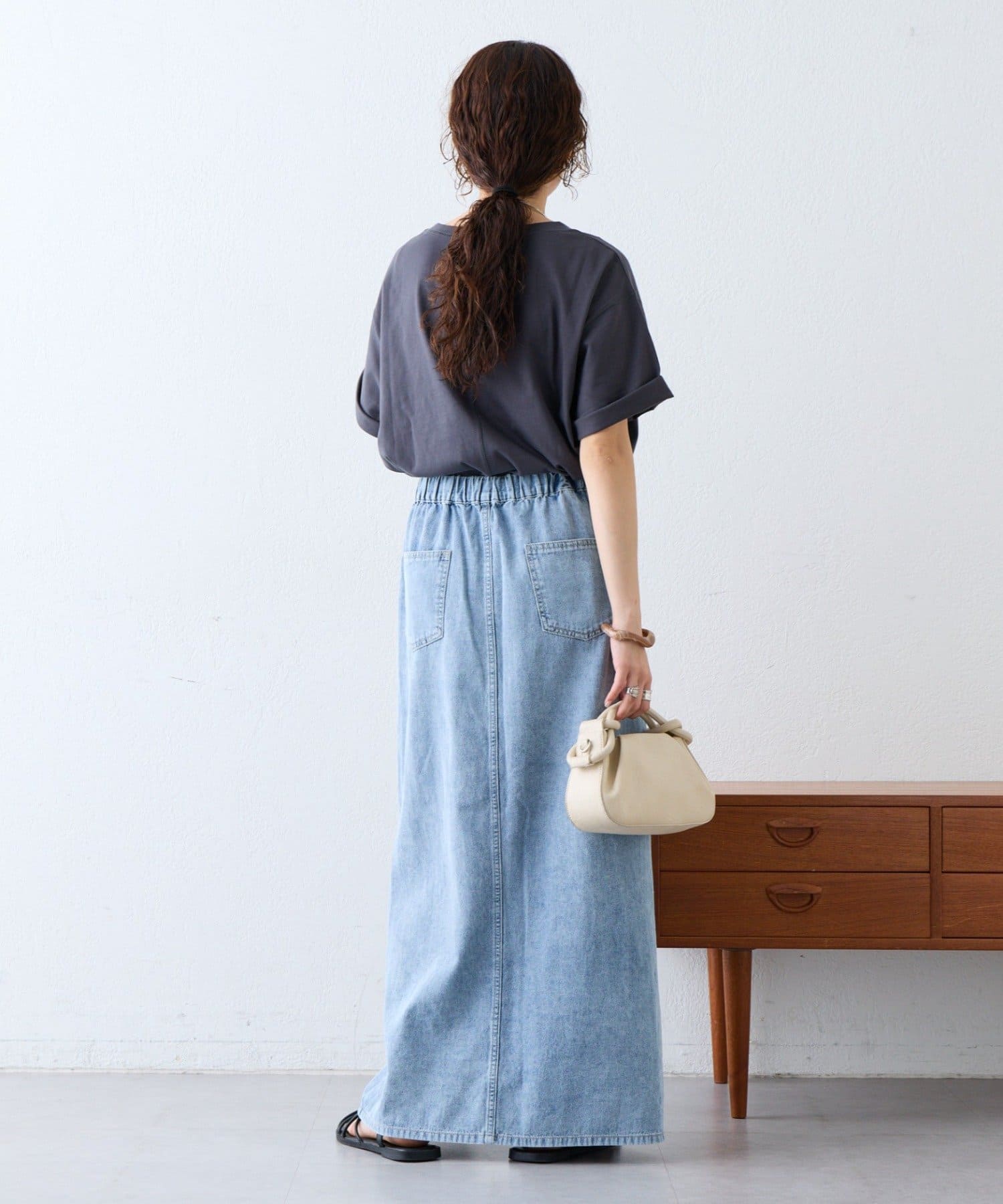 \大好評柔らかデニムにすっきりIラインのスカートが登場/