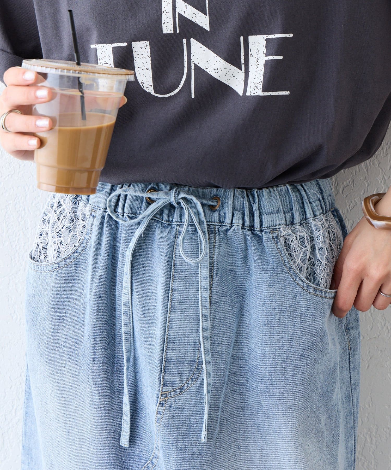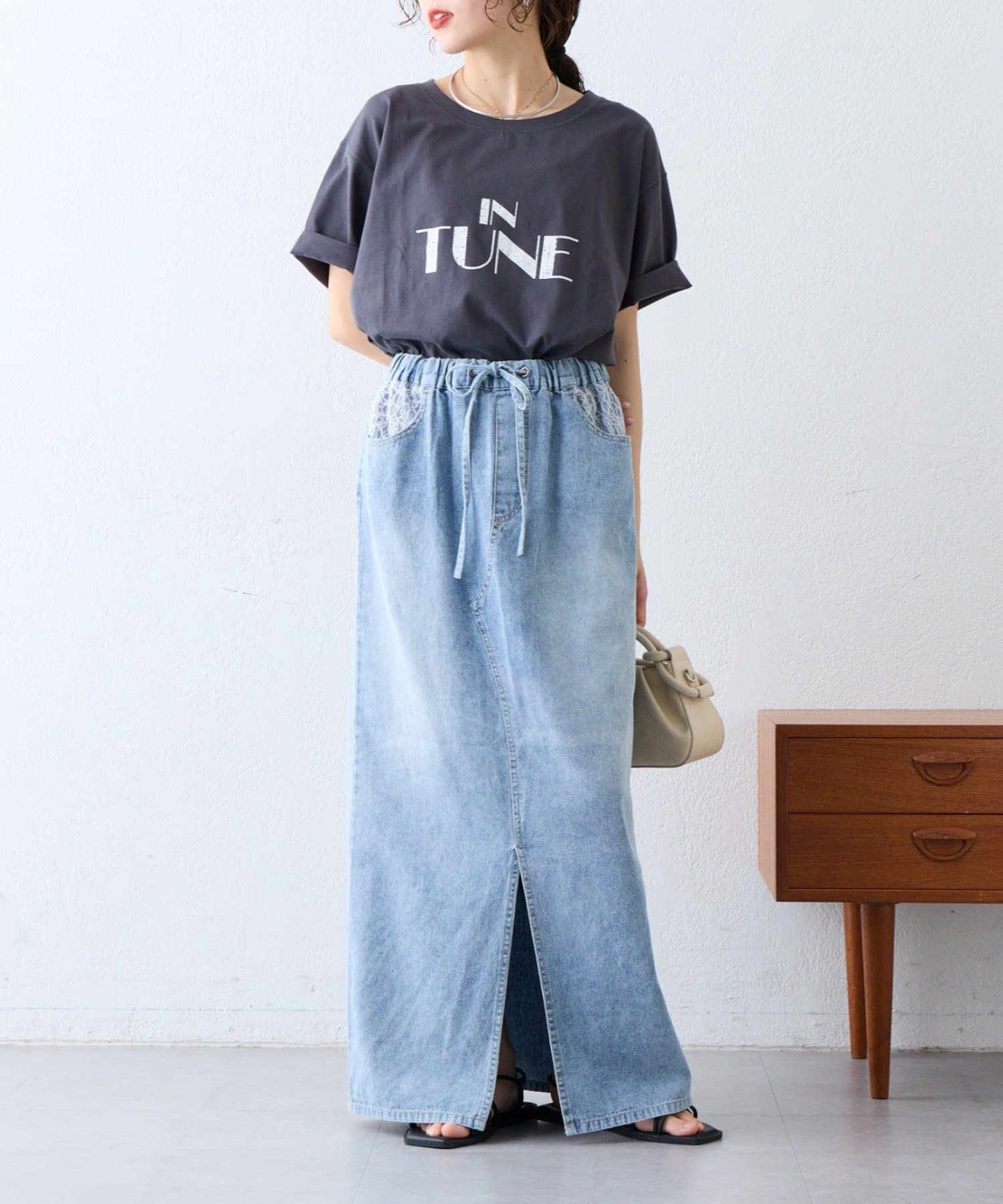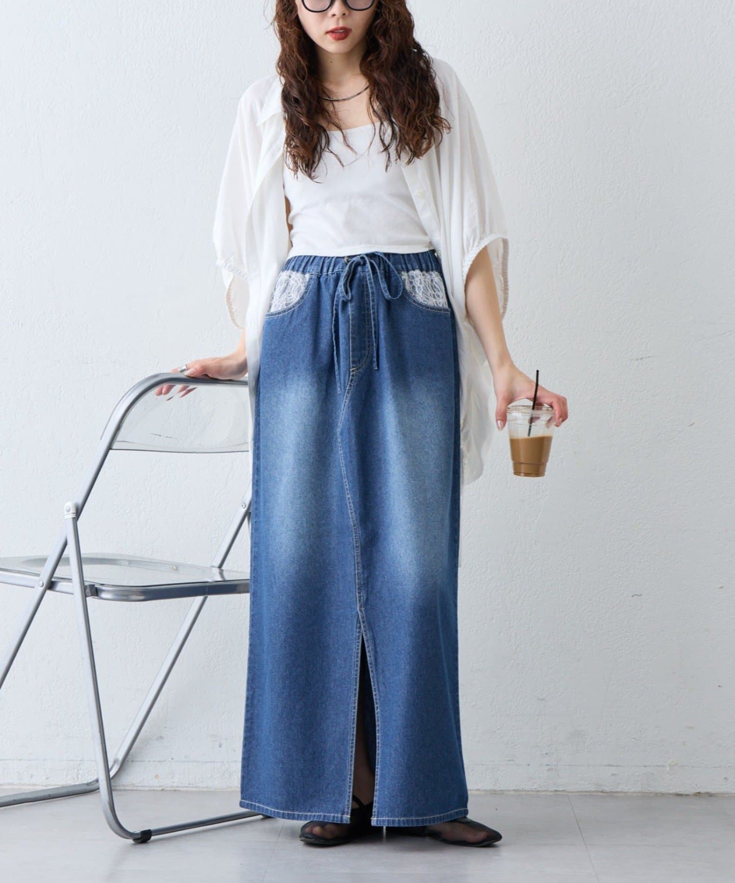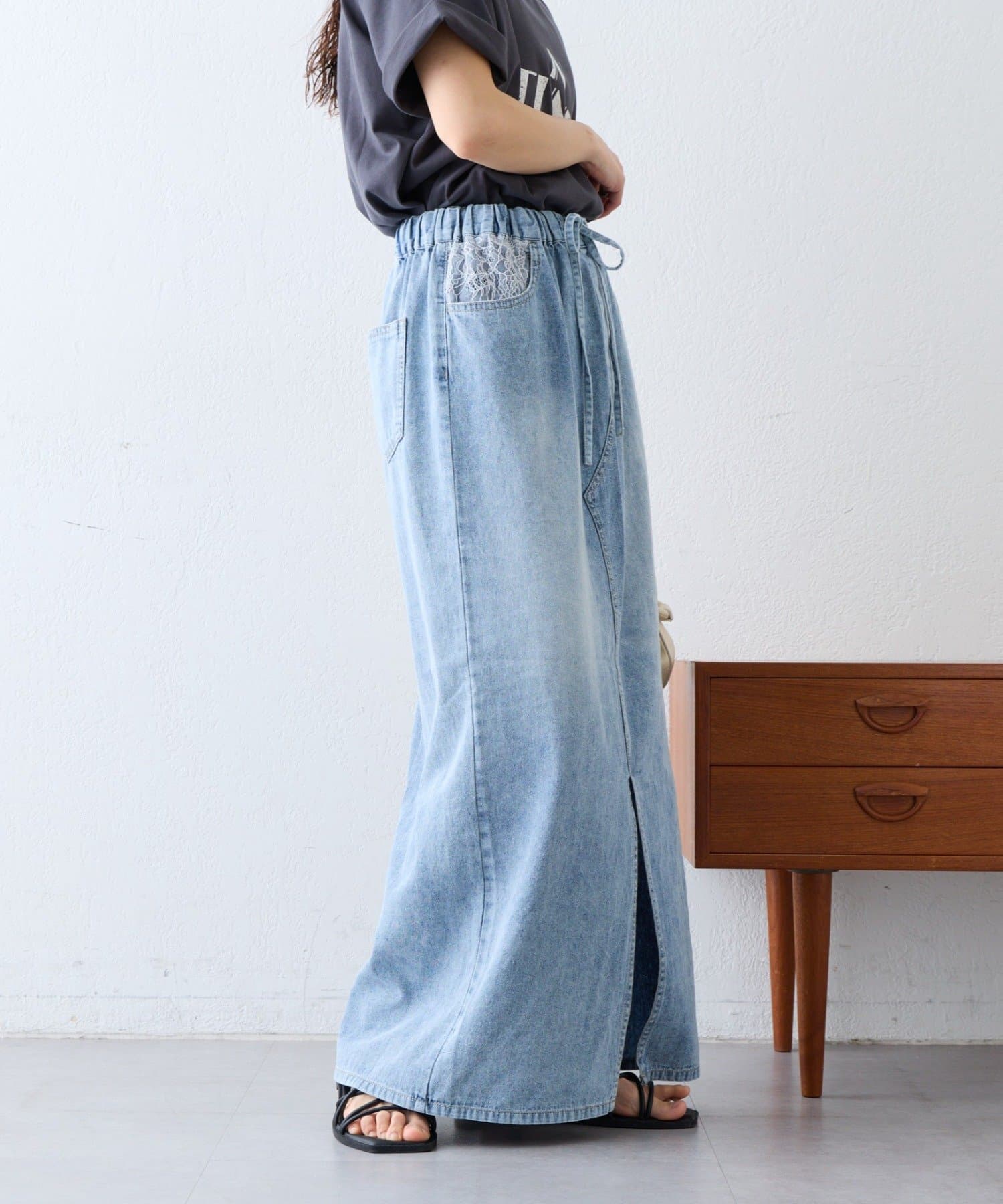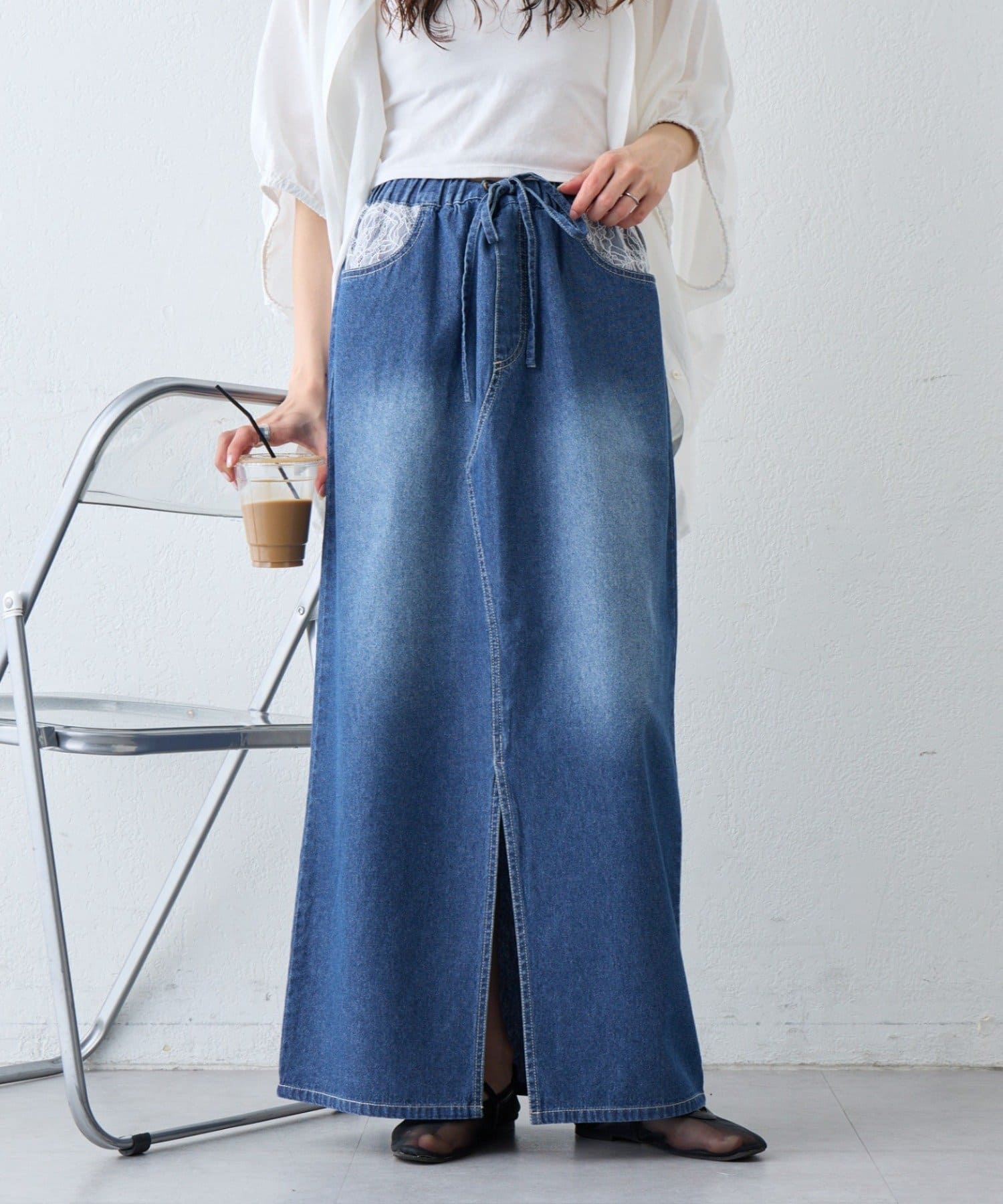 \大好評柔らかデニムにすっきりIラインのスカートが登場/